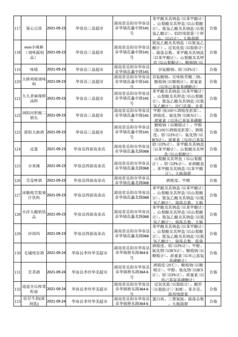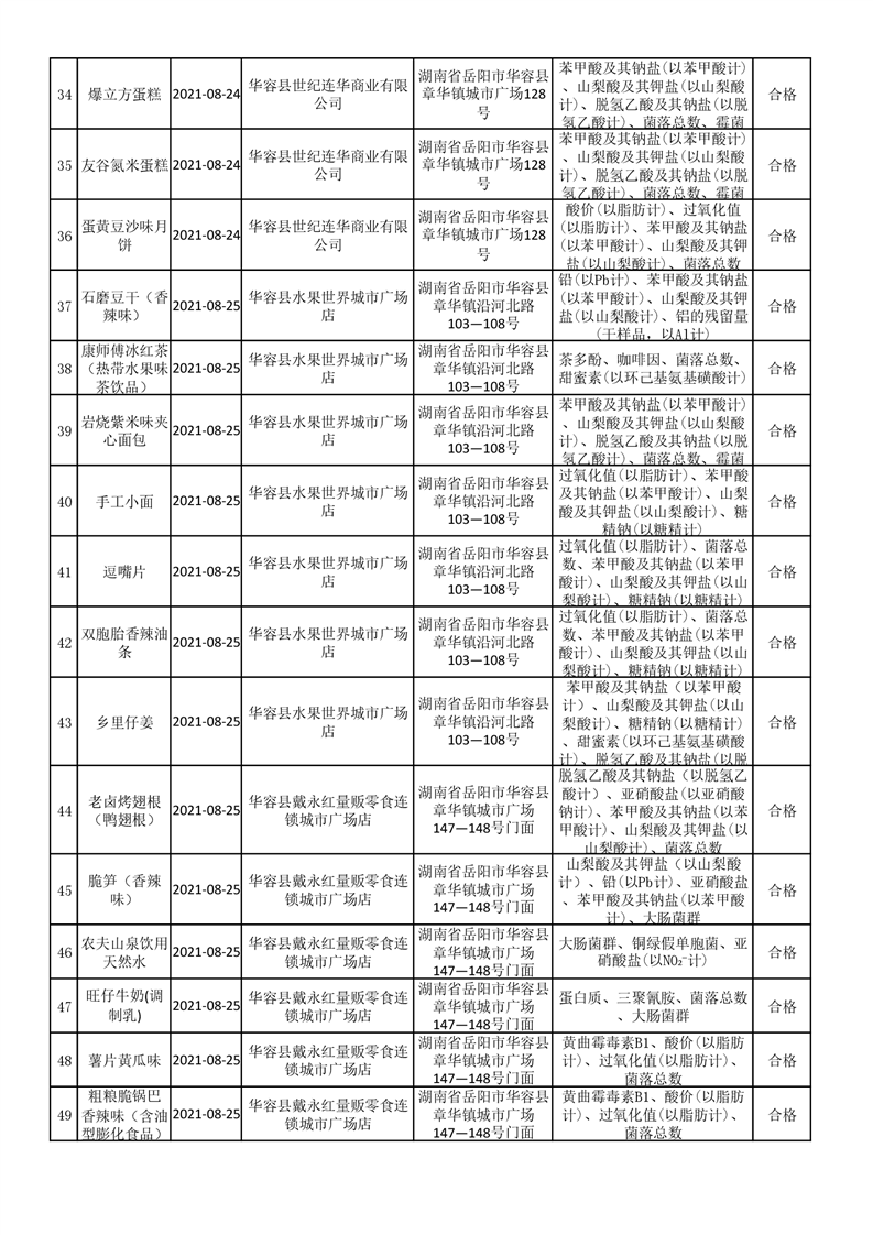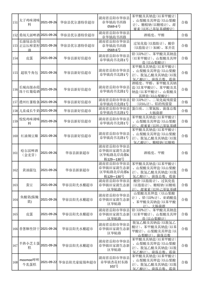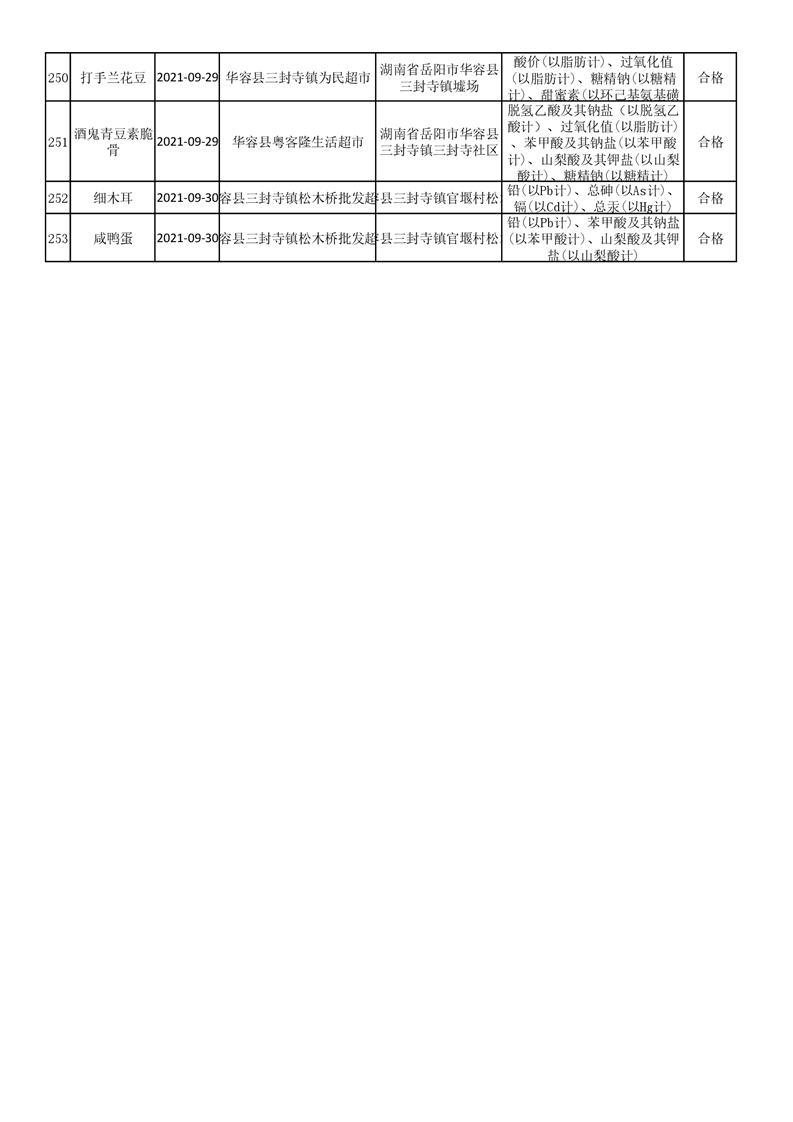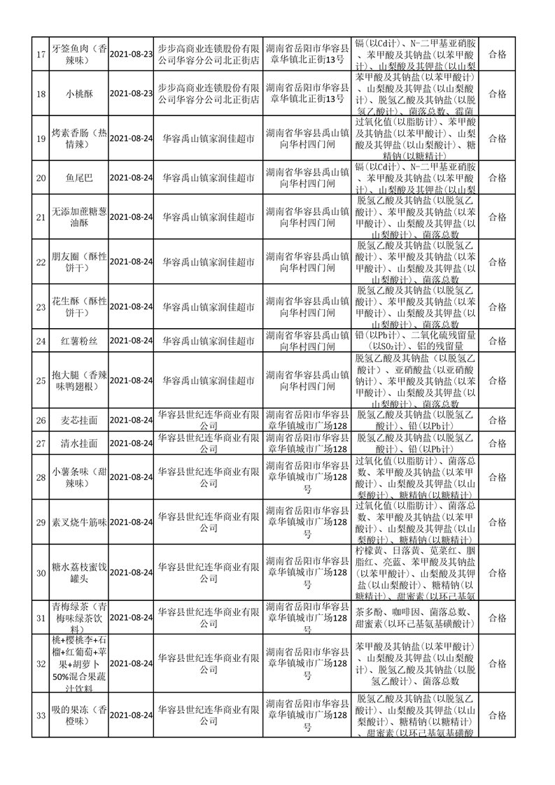 华容县市场监督管理局检验结果汇总表(九)