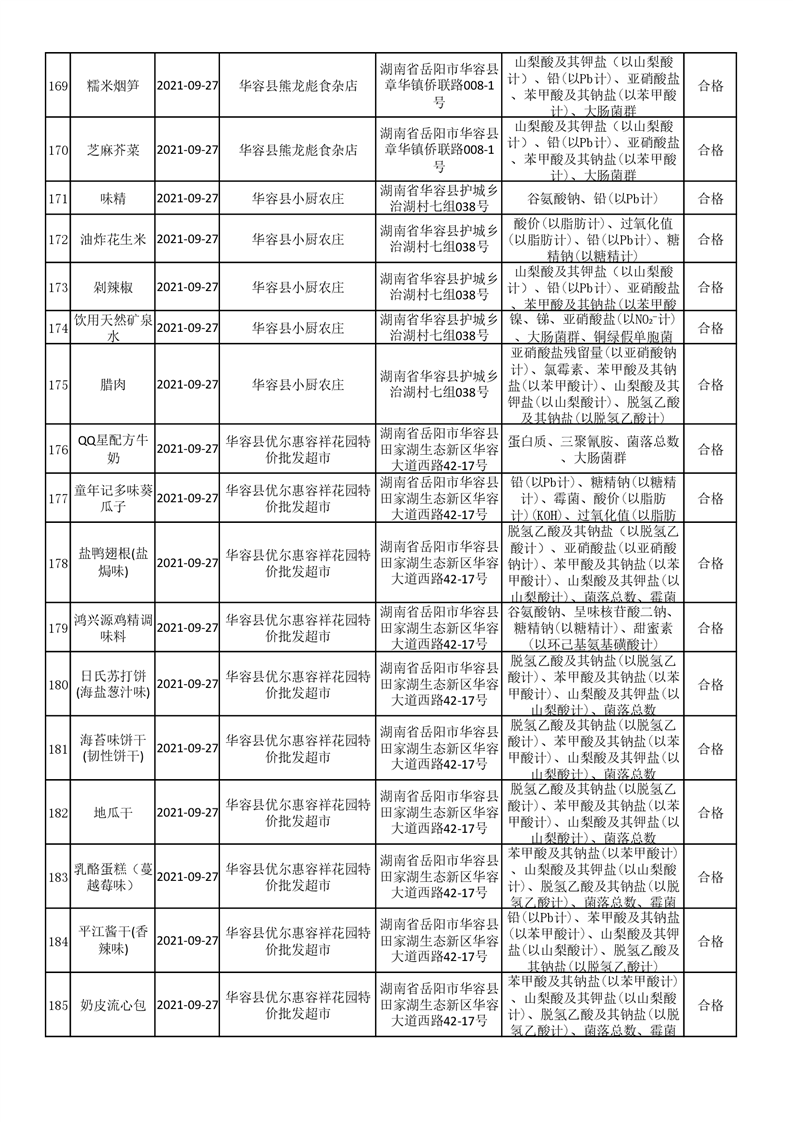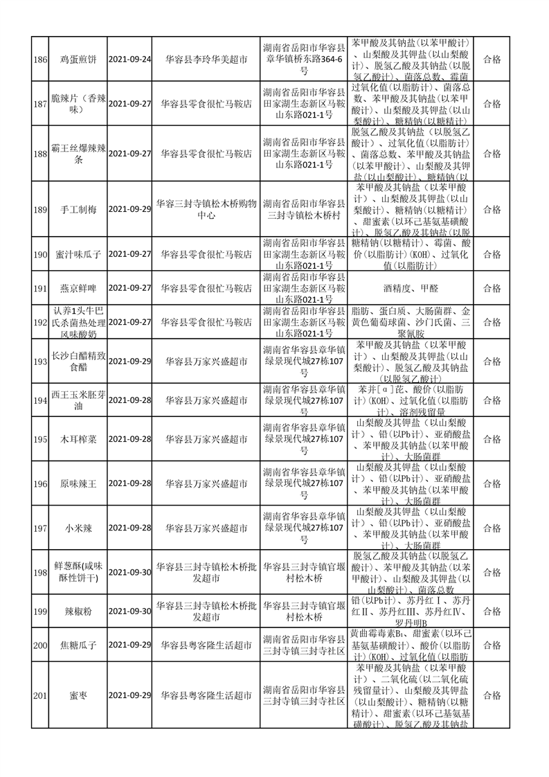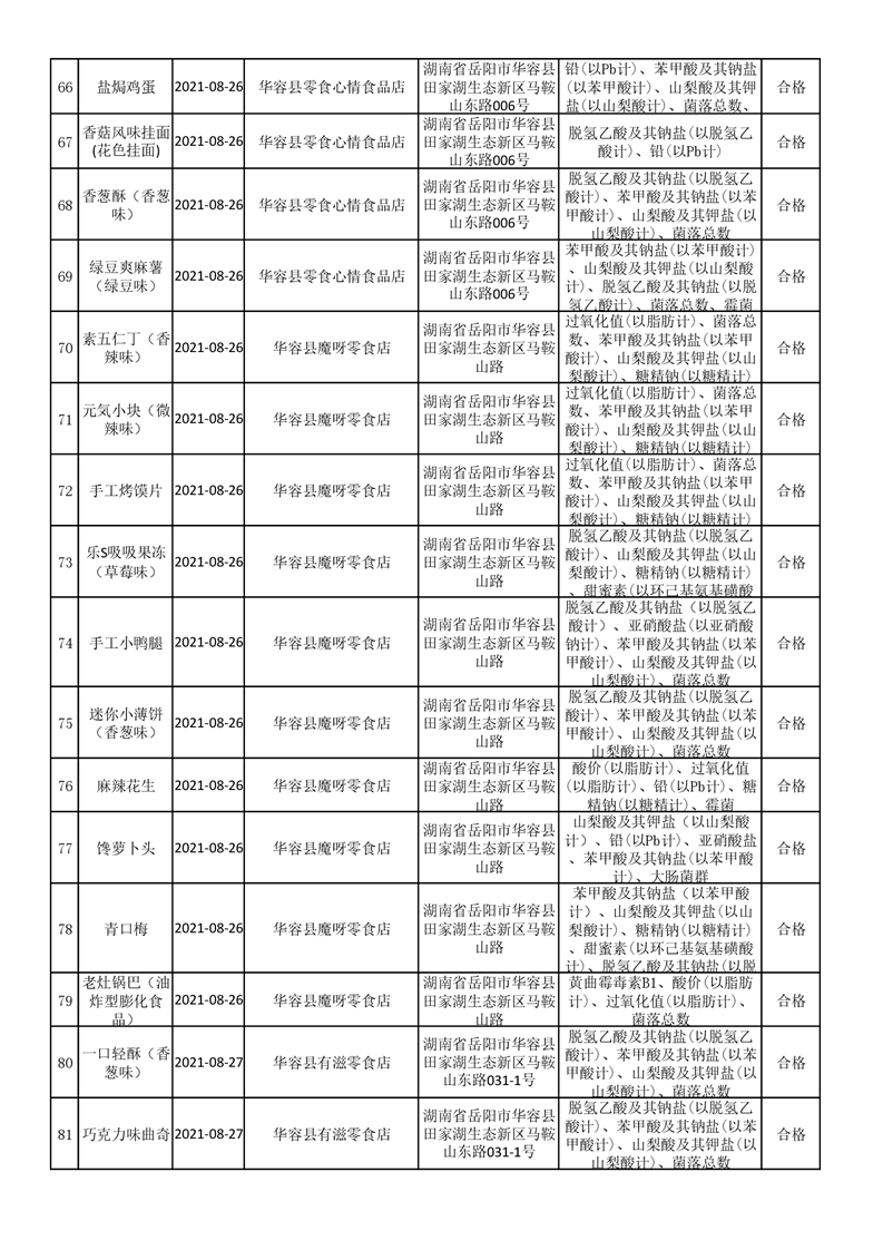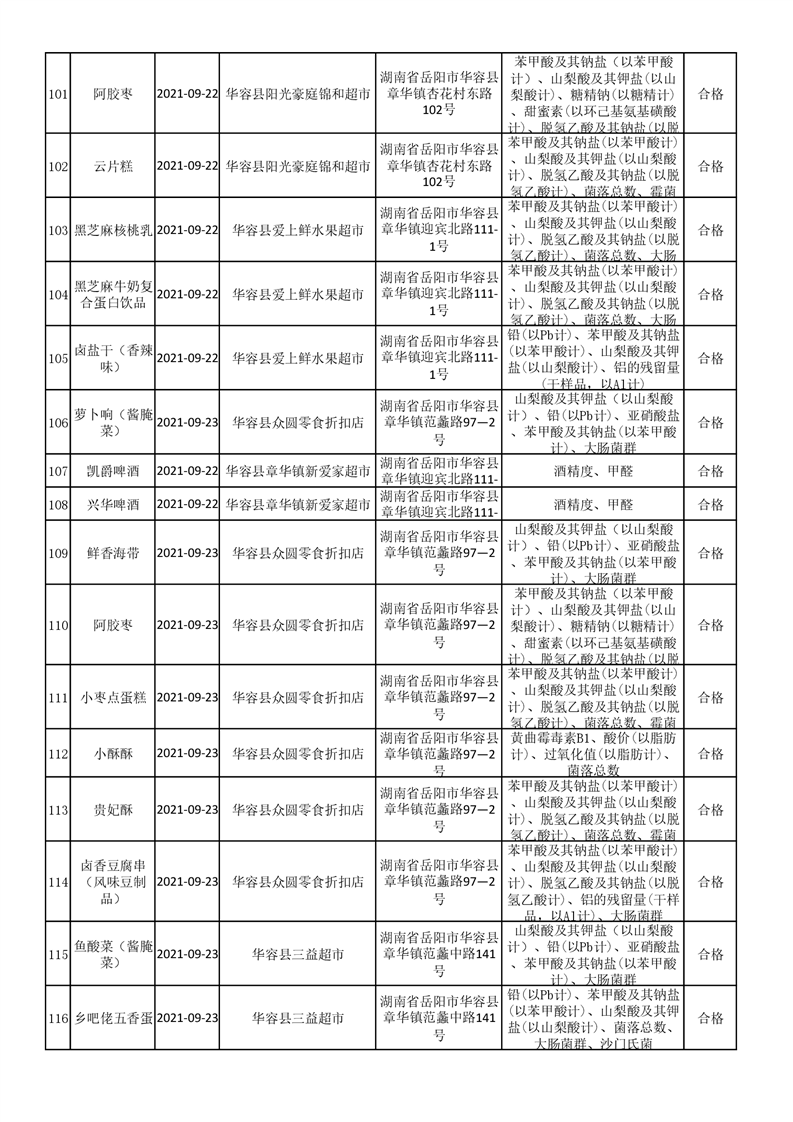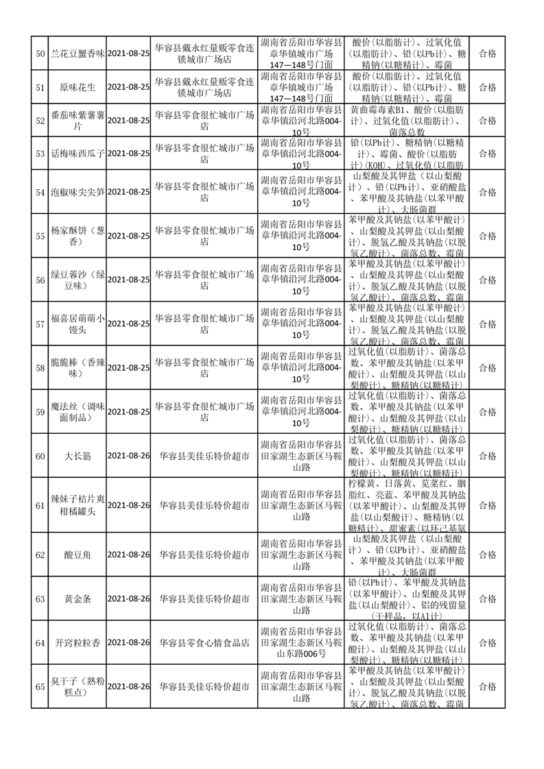 华容县市场监督管理局检验结果汇总表(九)