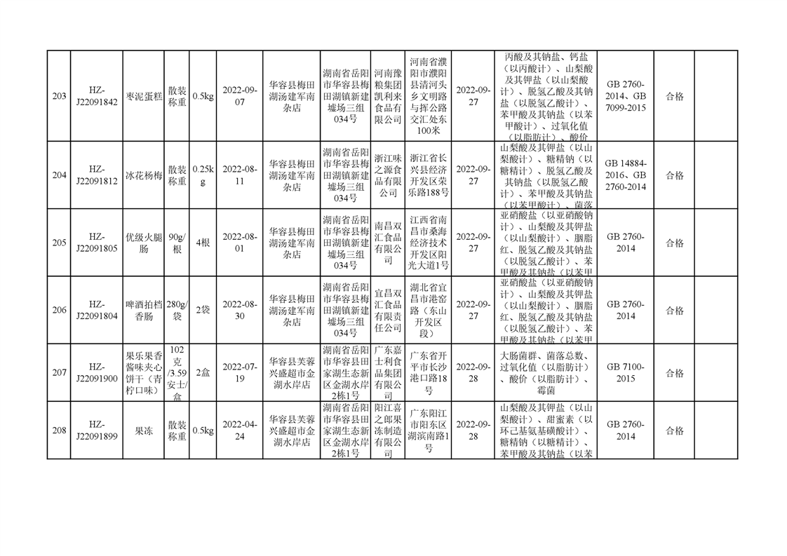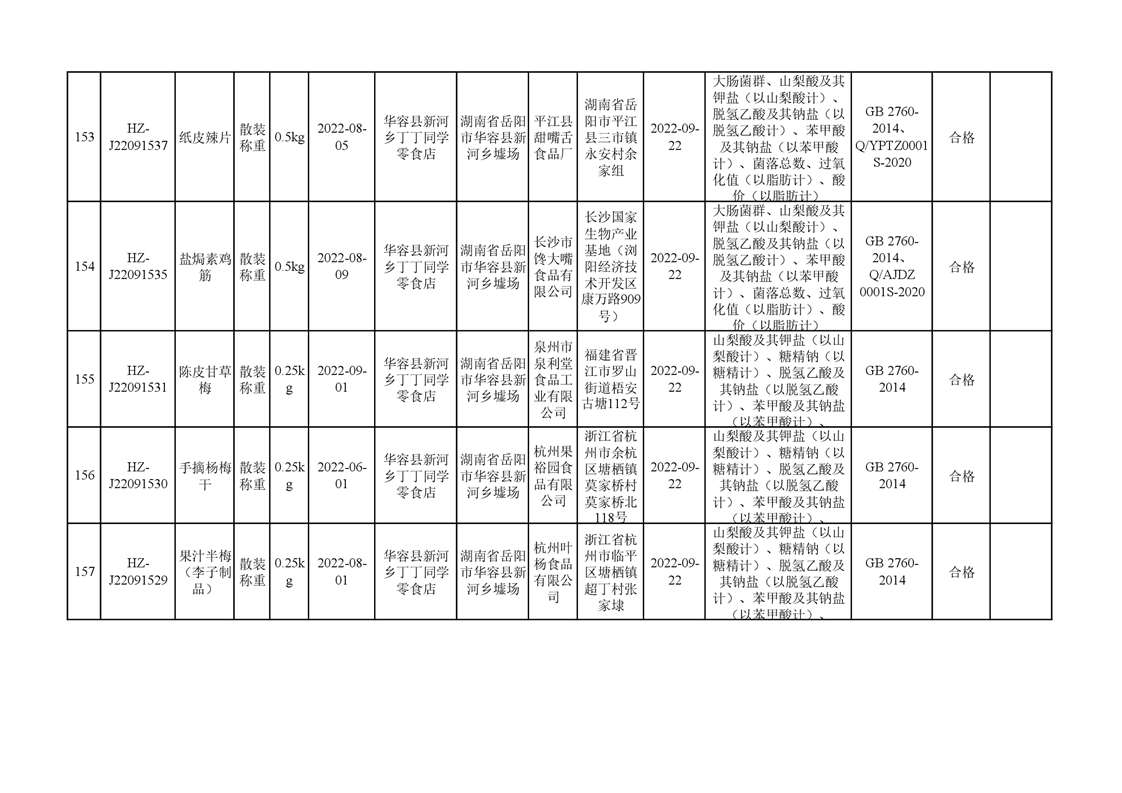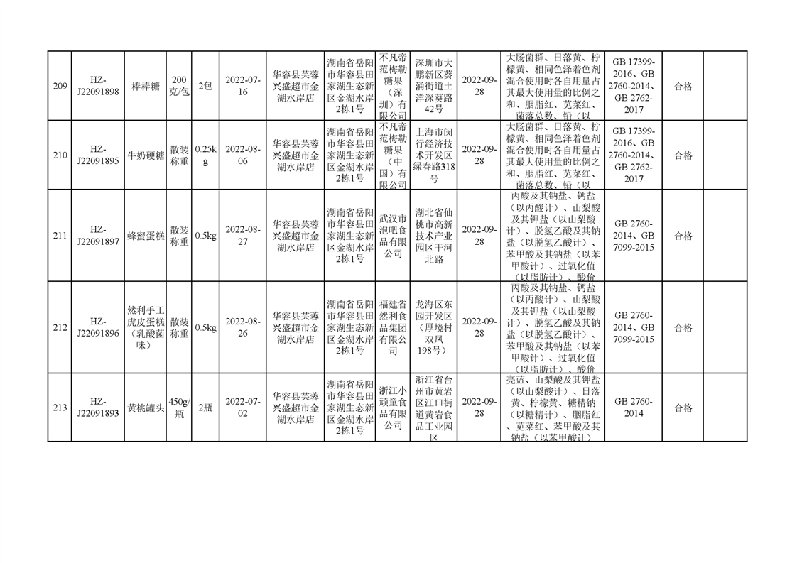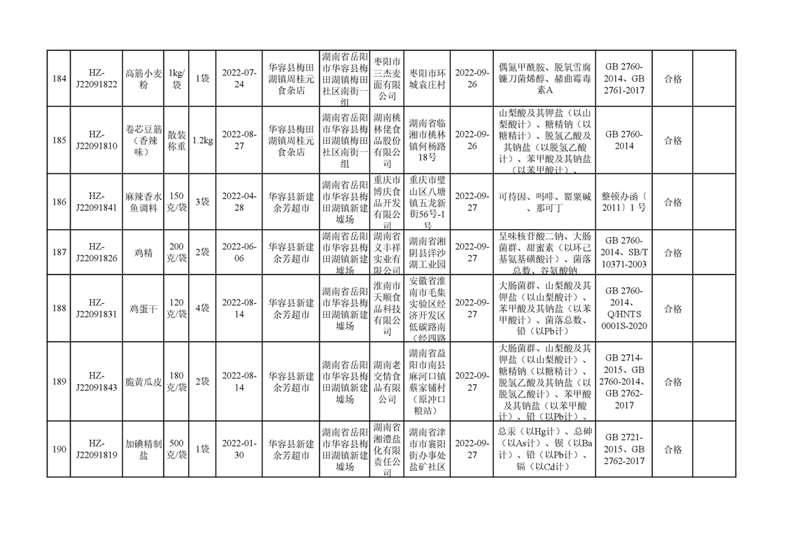 华容县市场监督管理局9月份241批次食品抽检结果汇总表(六)