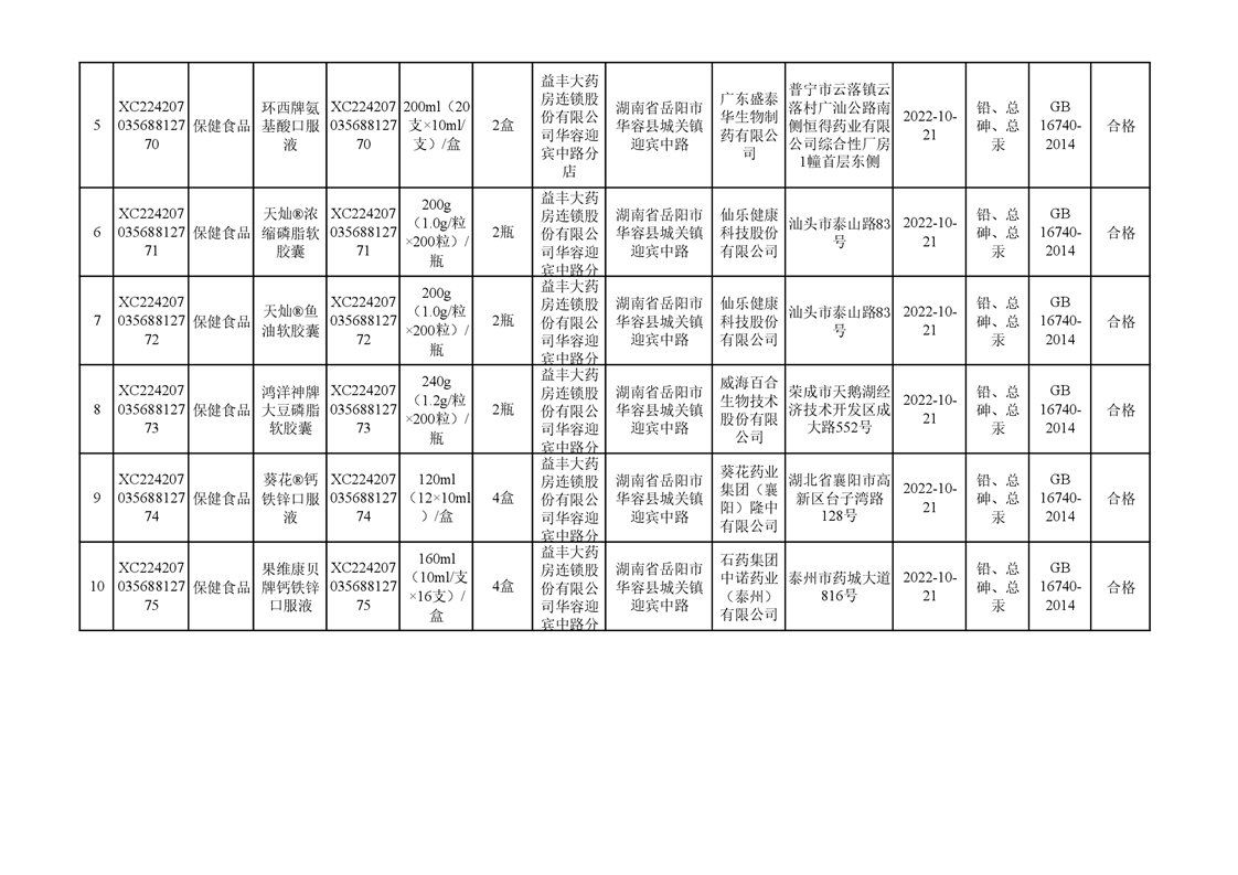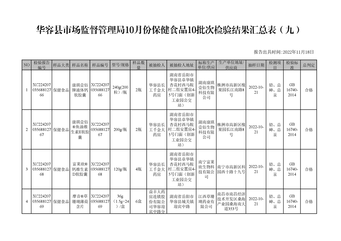 华容县市场监督管理局10月份食品检验结果汇总表(九)