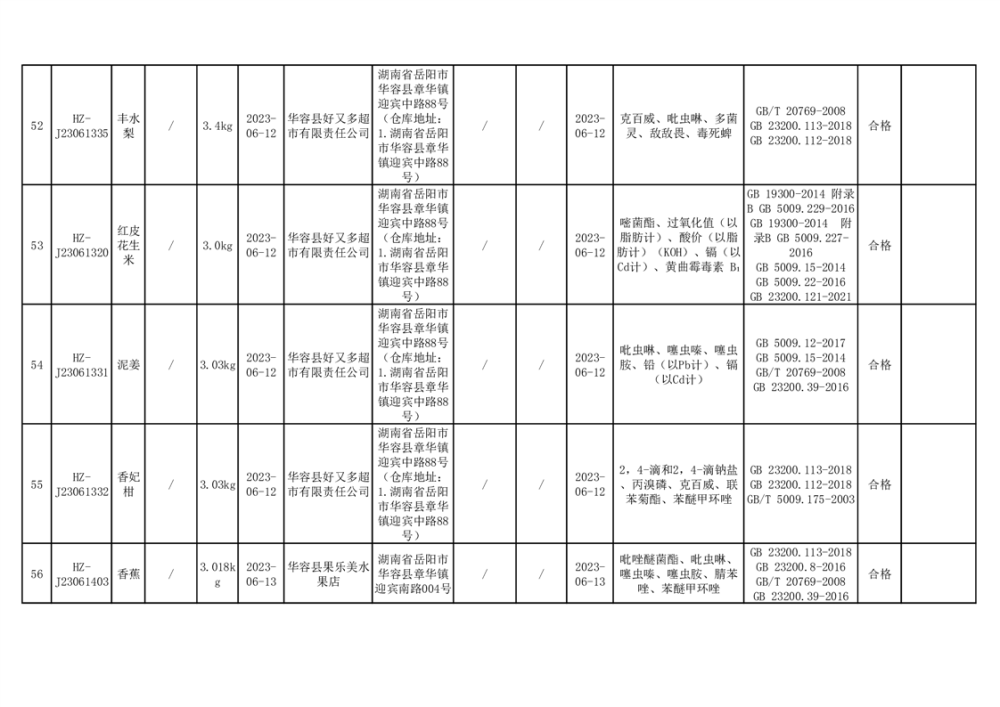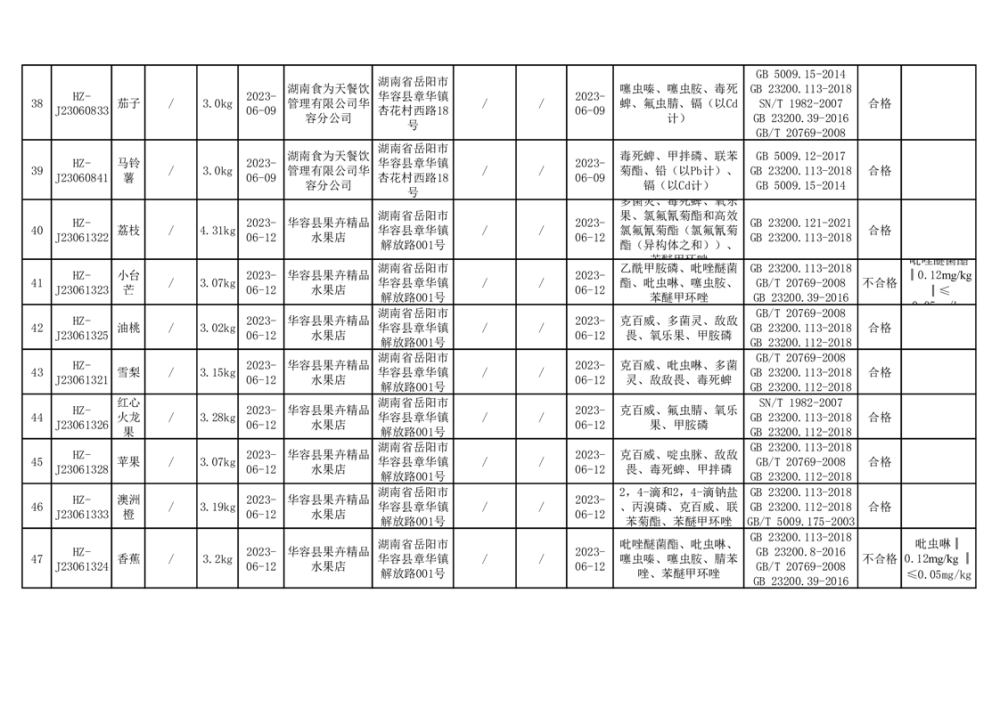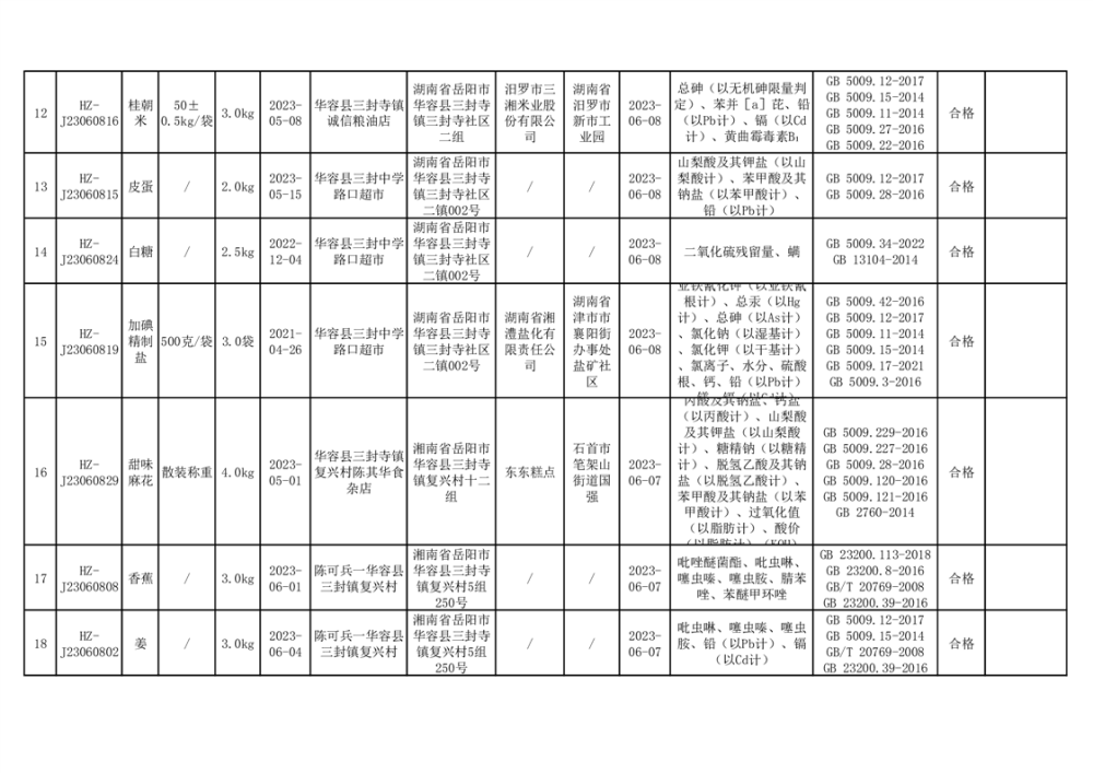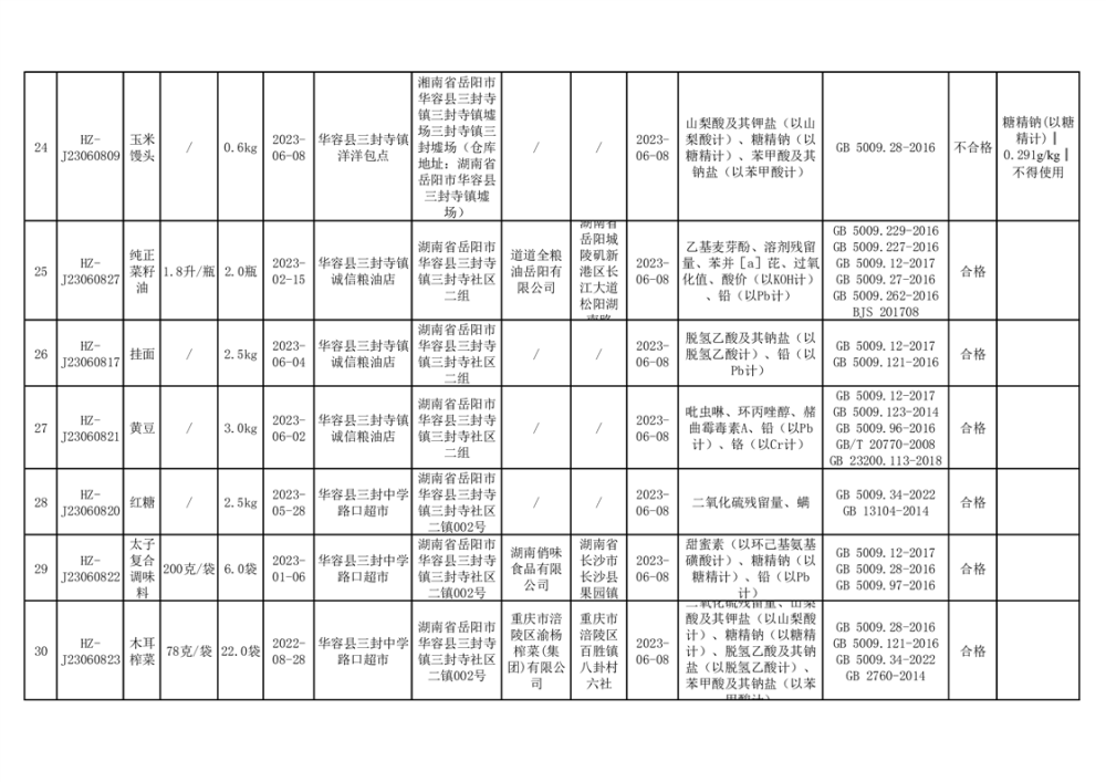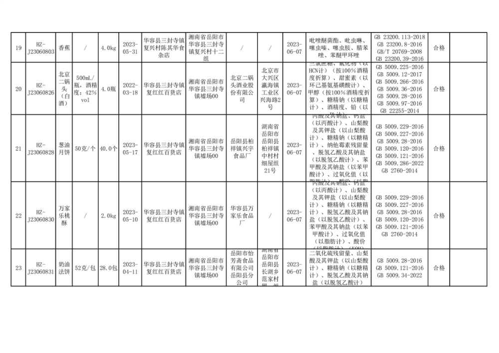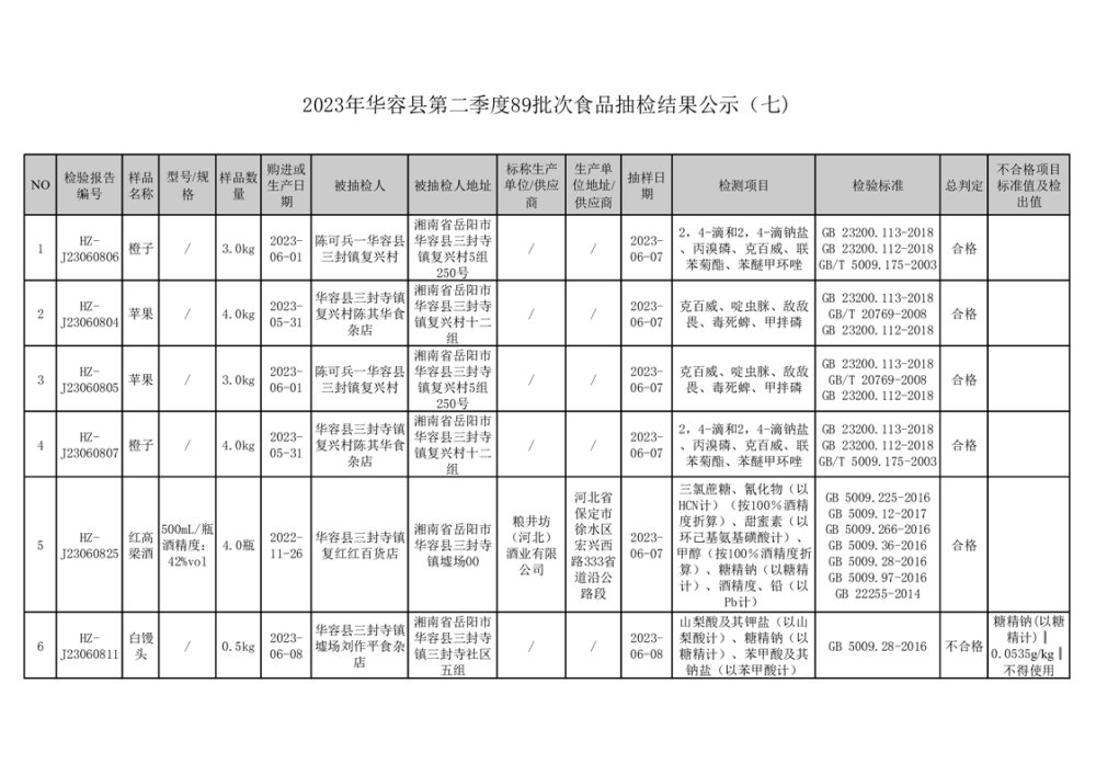 2023年华容县第二季度89批次食品抽检结果公示(七)