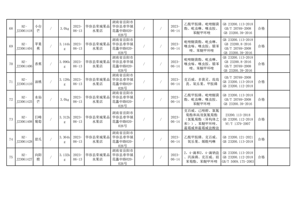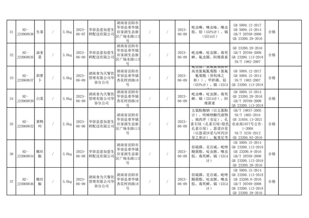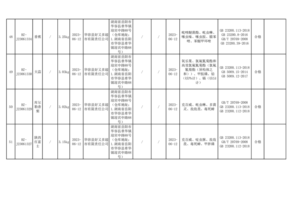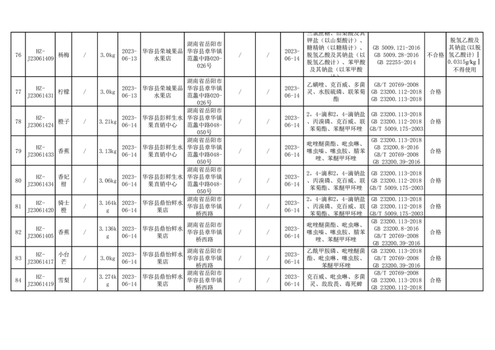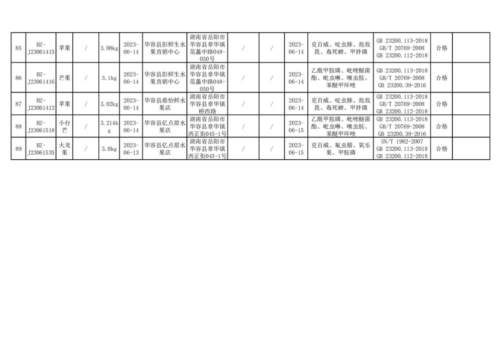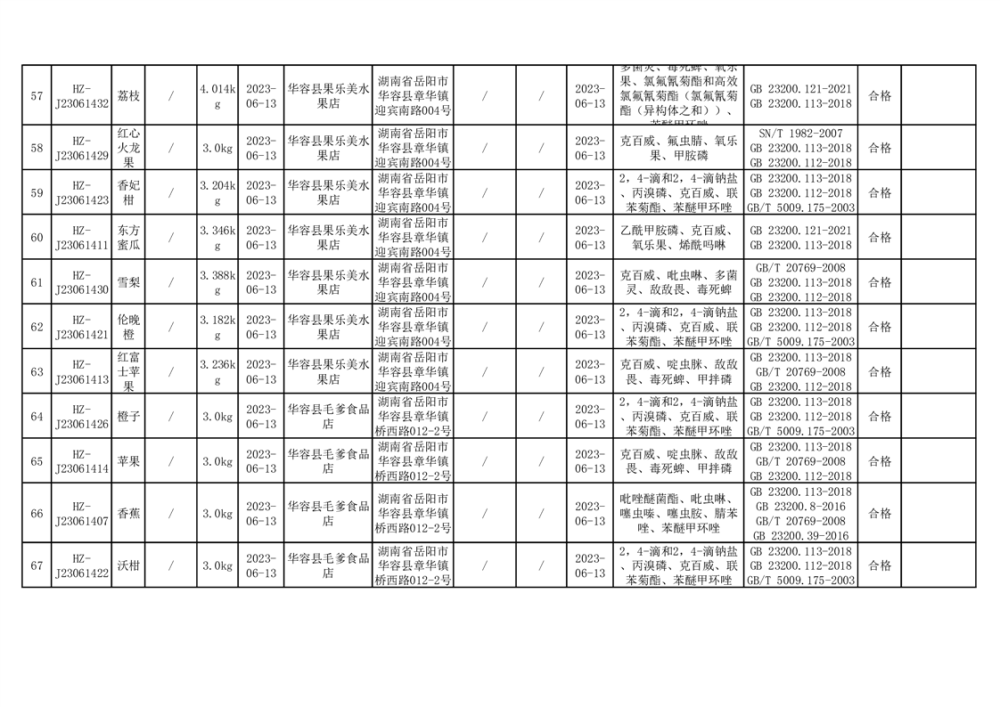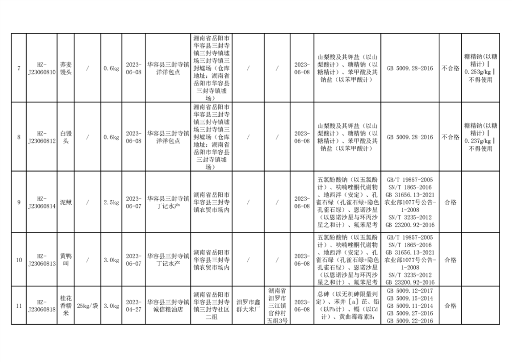 2023年华容县第二季度89批次食品抽检结果公示(七)
