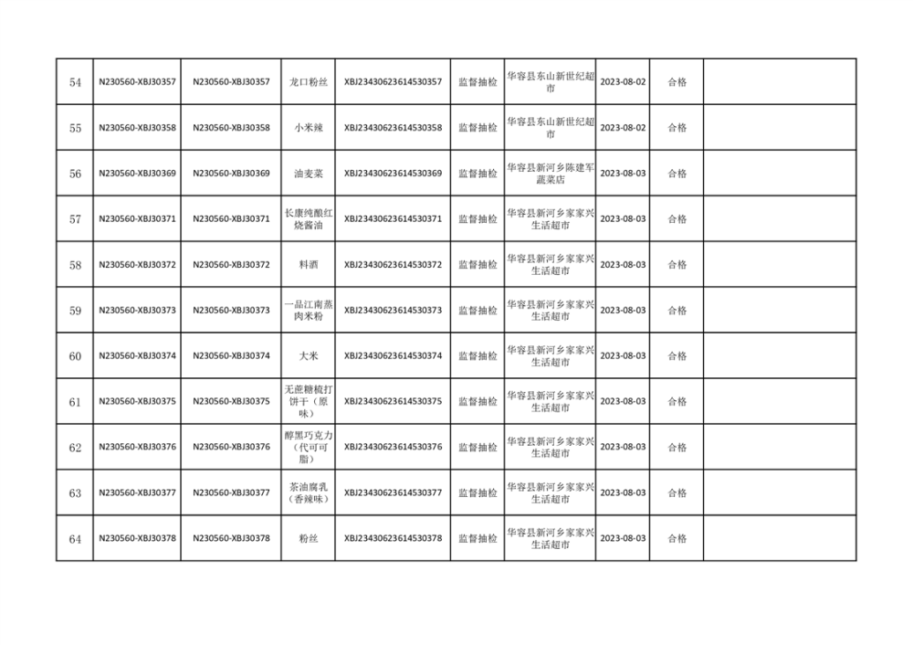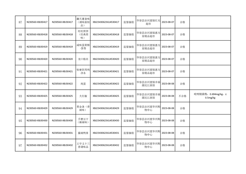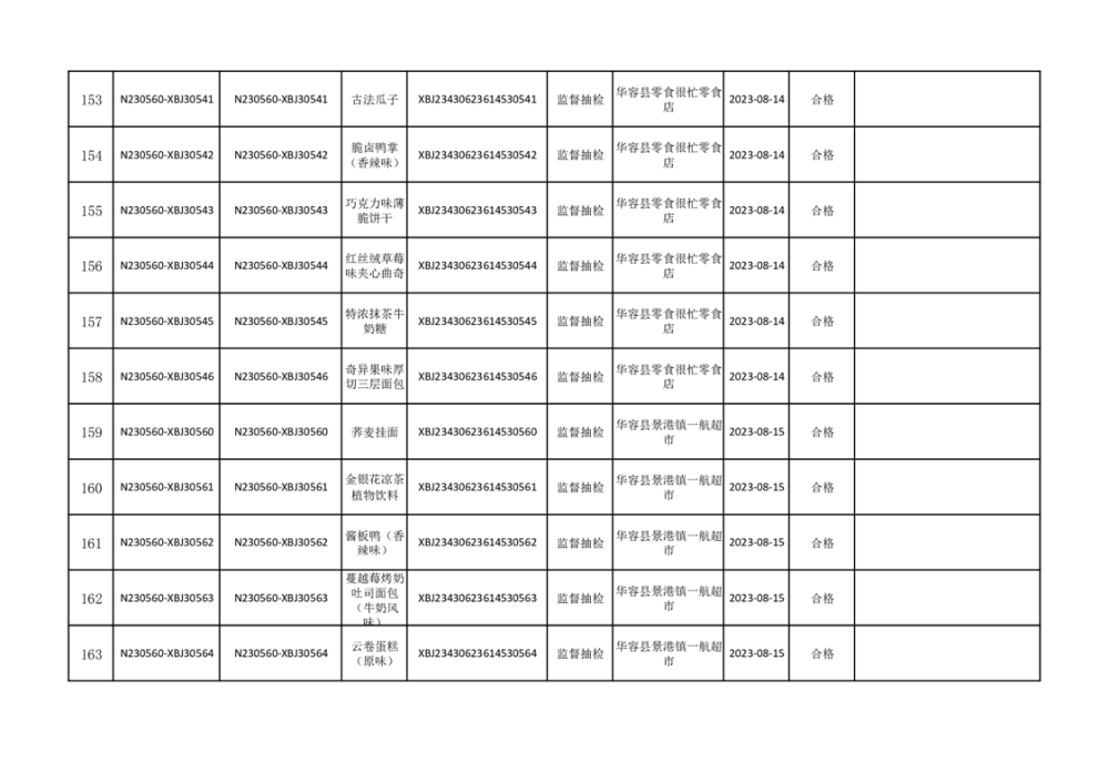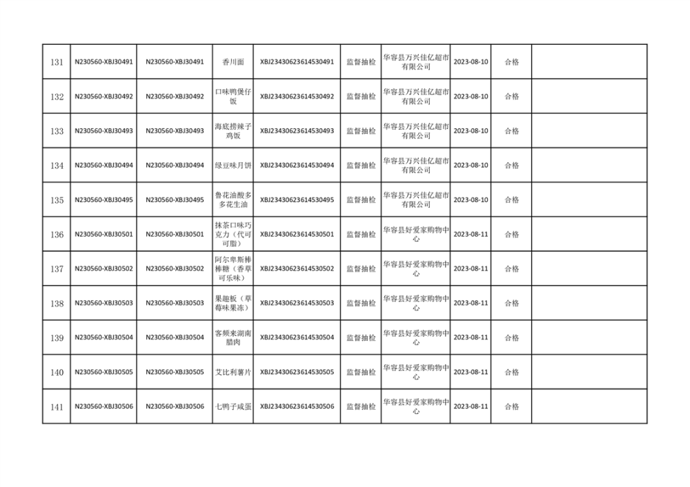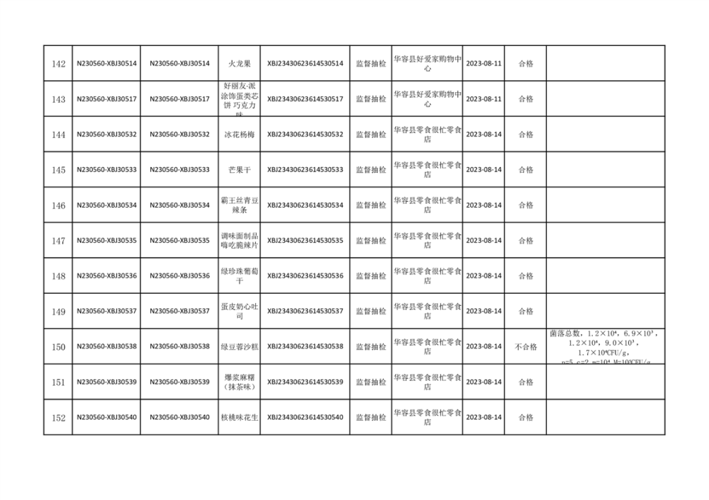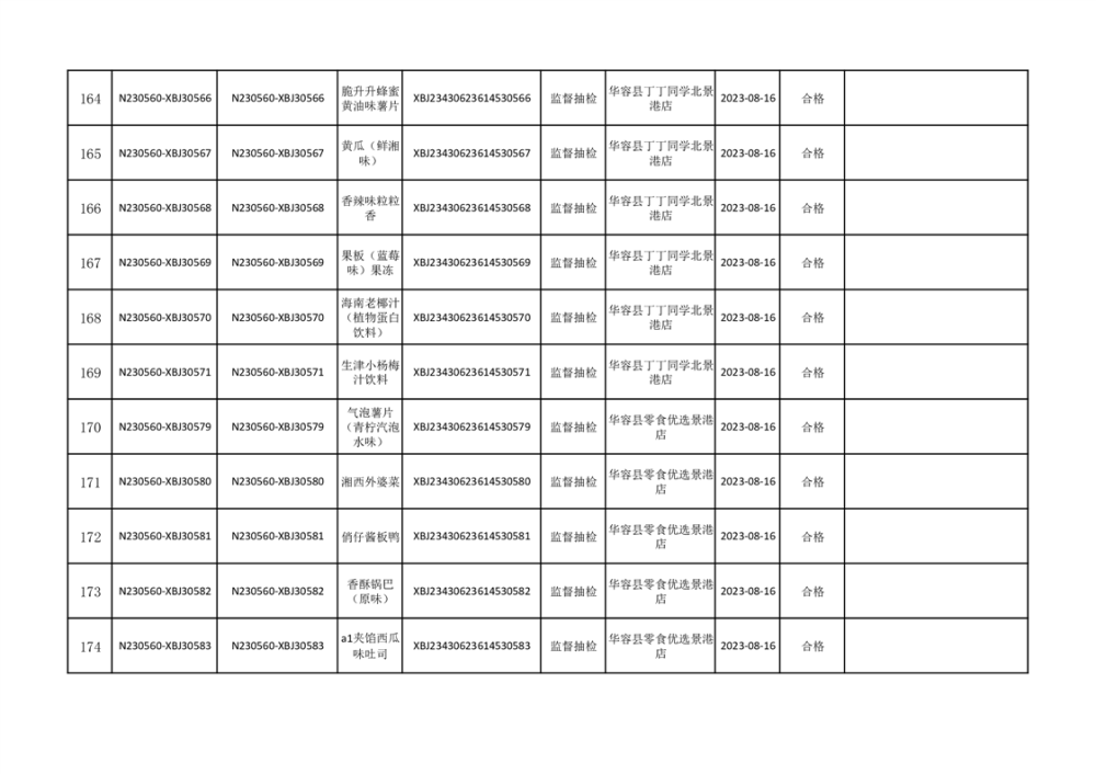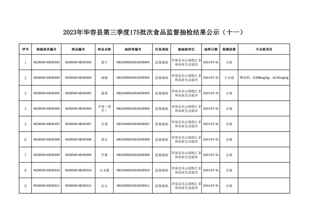2023年华容县第三季度175批次食品监督抽检结果公示(十一)