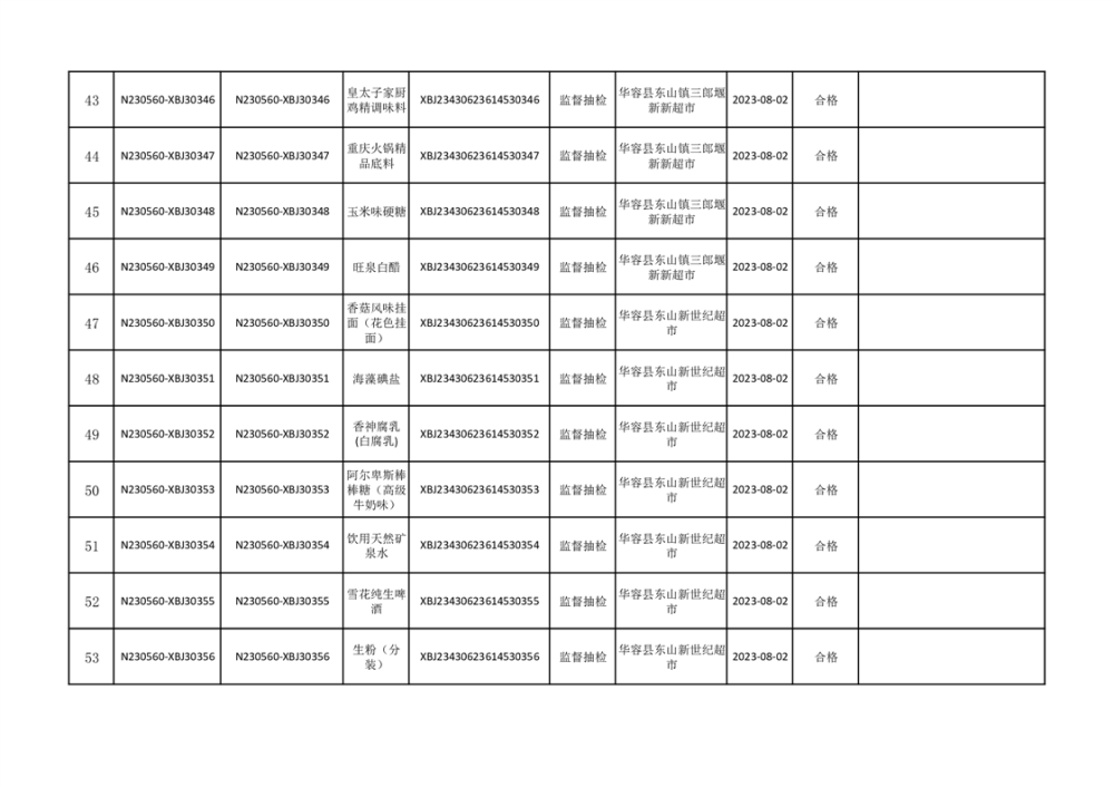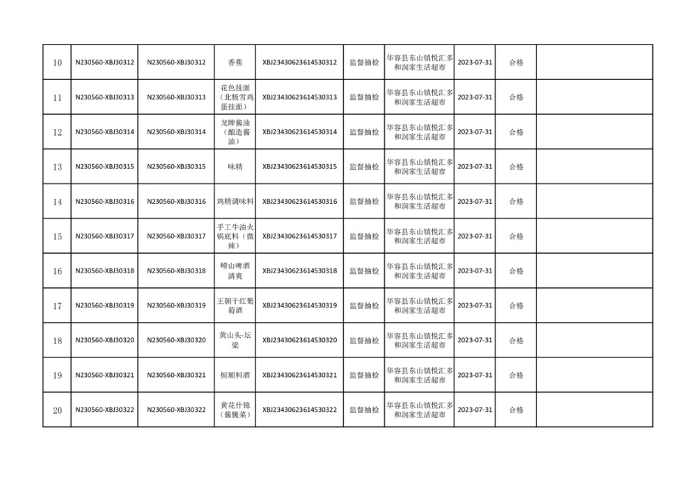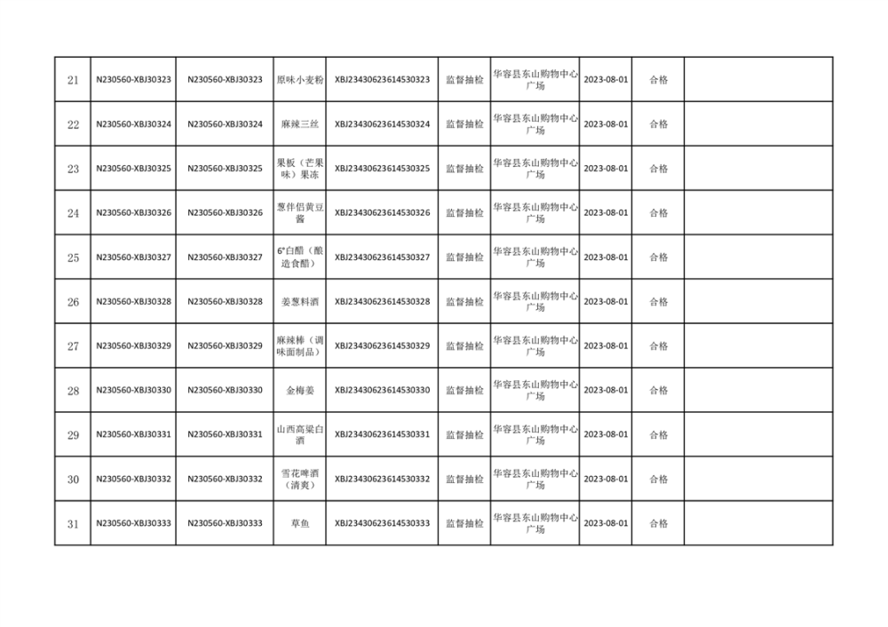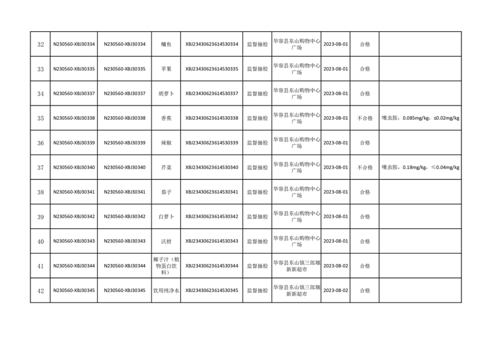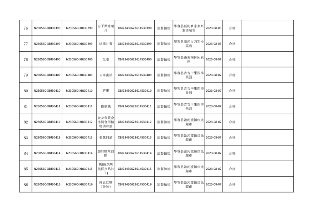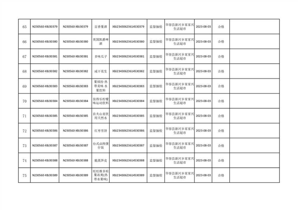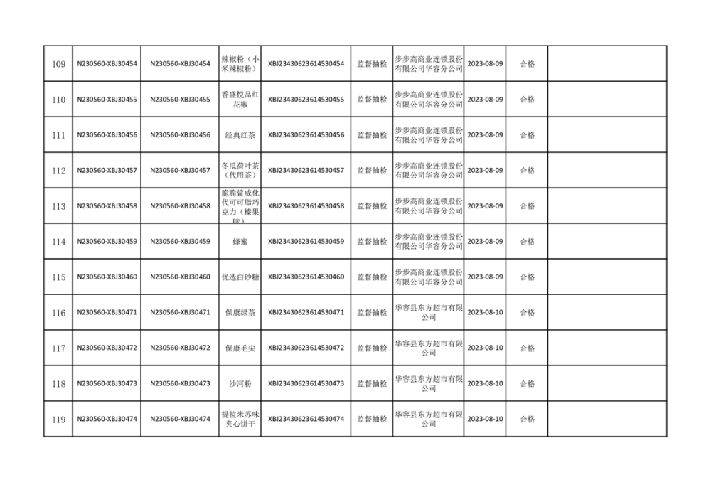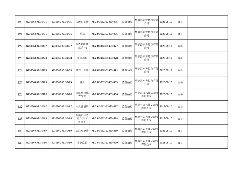 2023年华容县第三季度175批次食品监督抽检结果公示(十一)