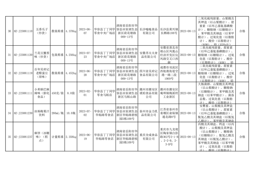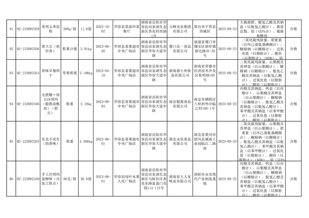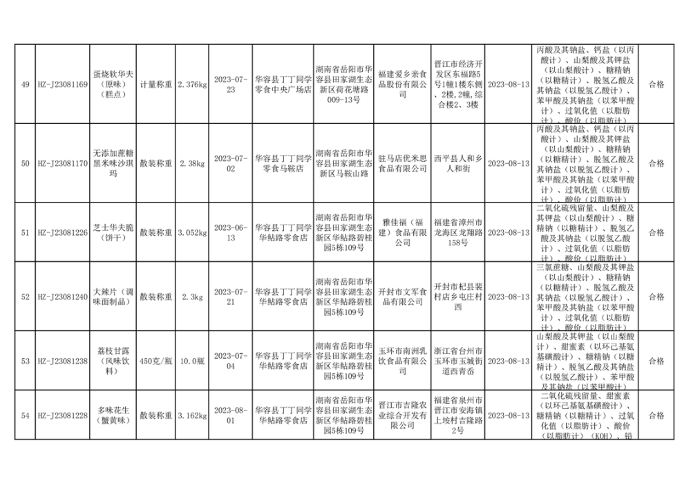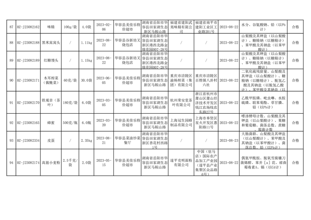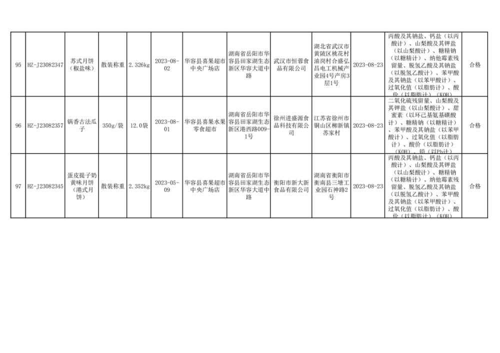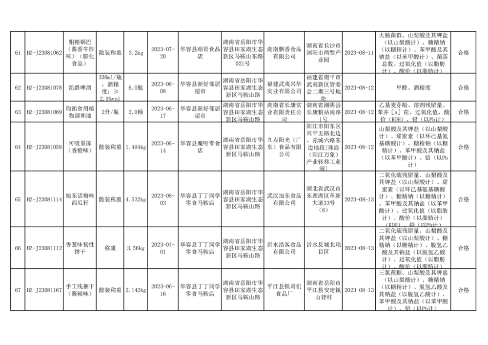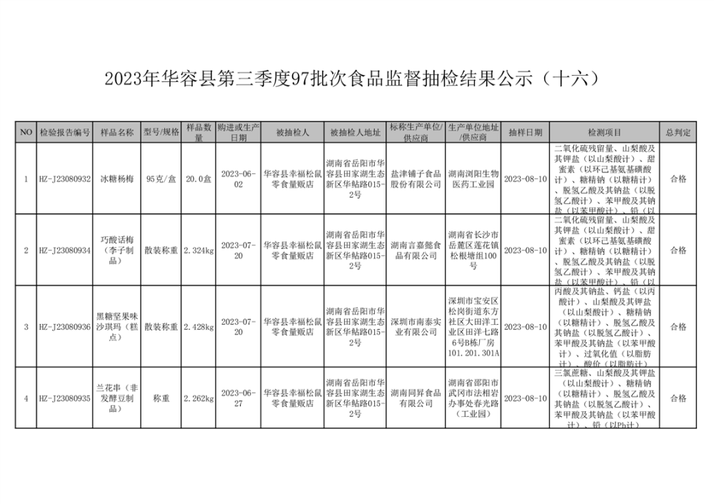 2023年华容县第三季度97批次食品监督抽检结果公示(十六)