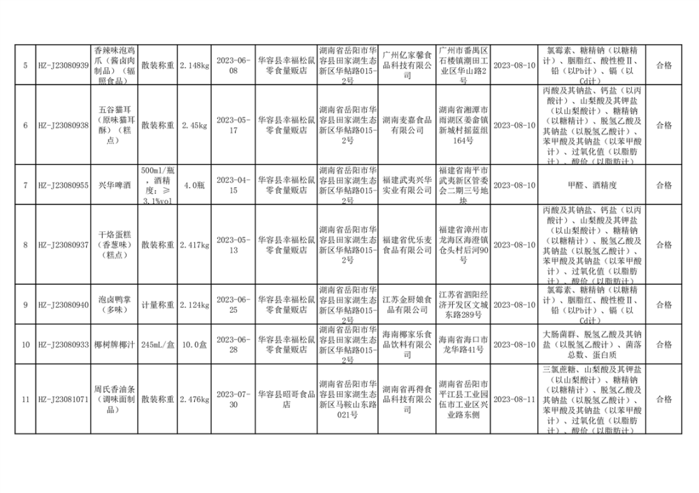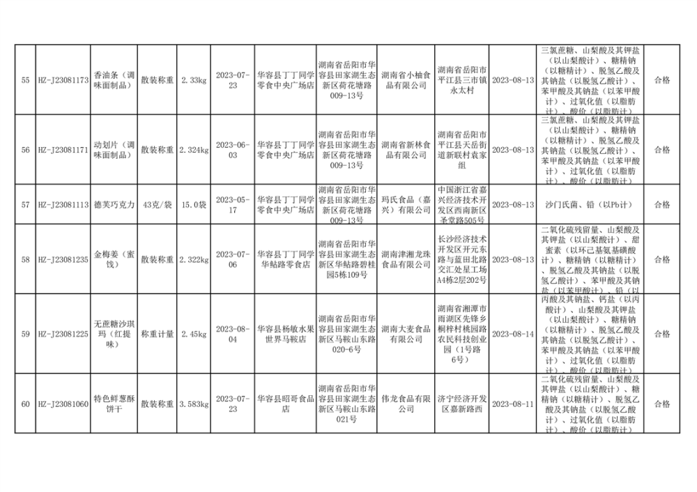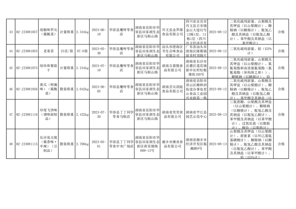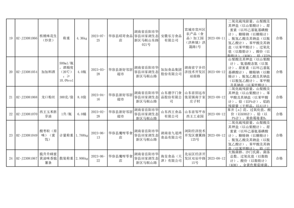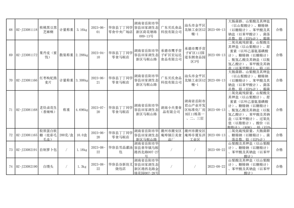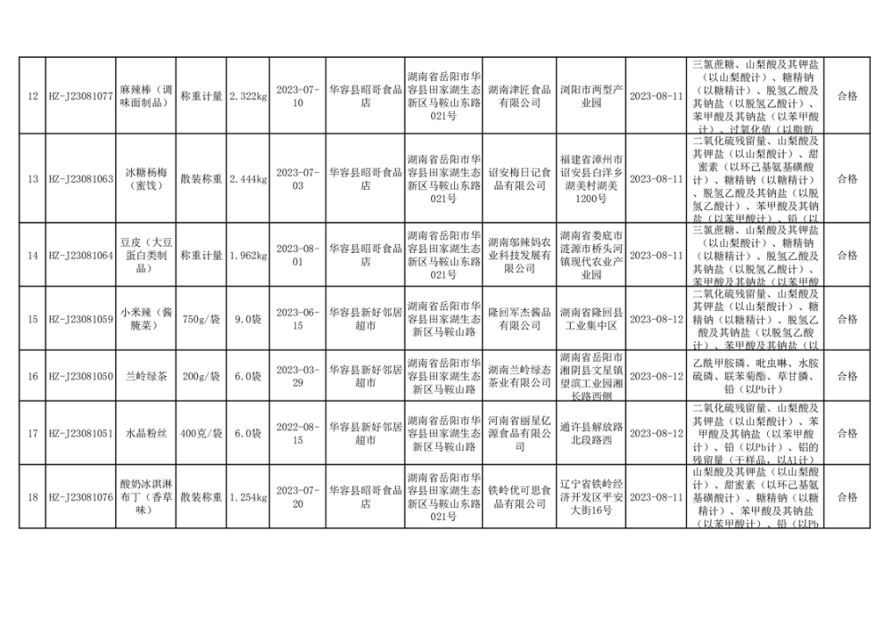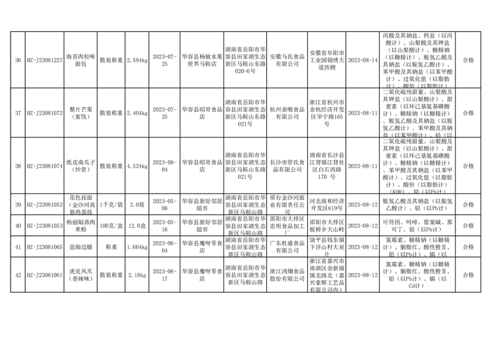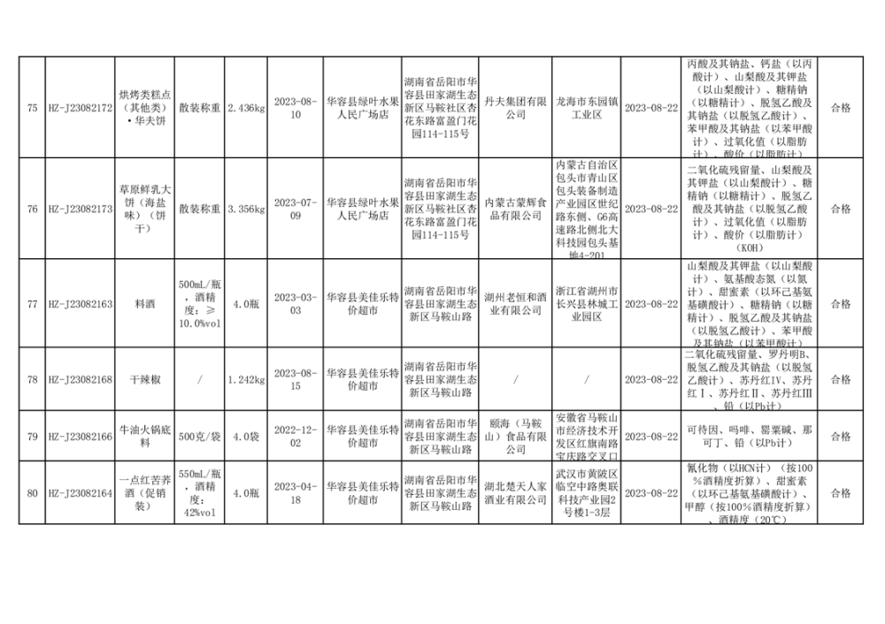 2023年华容县第三季度97批次食品监督抽检结果公示(十六)