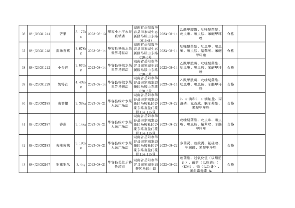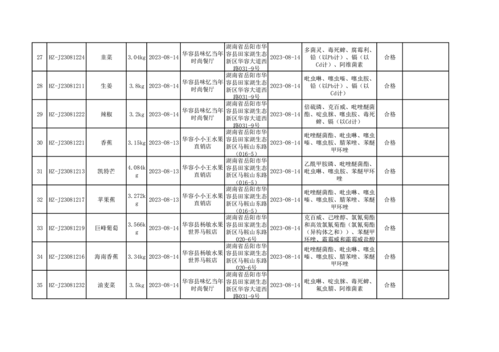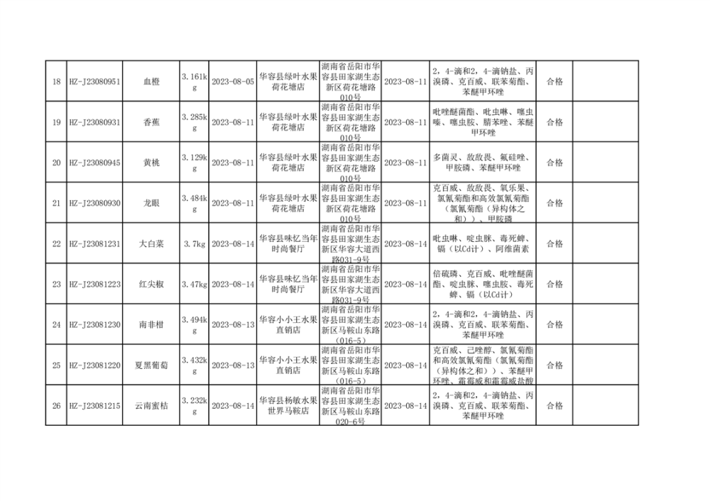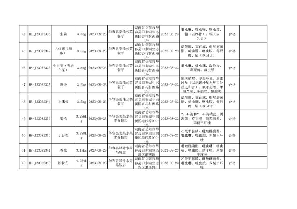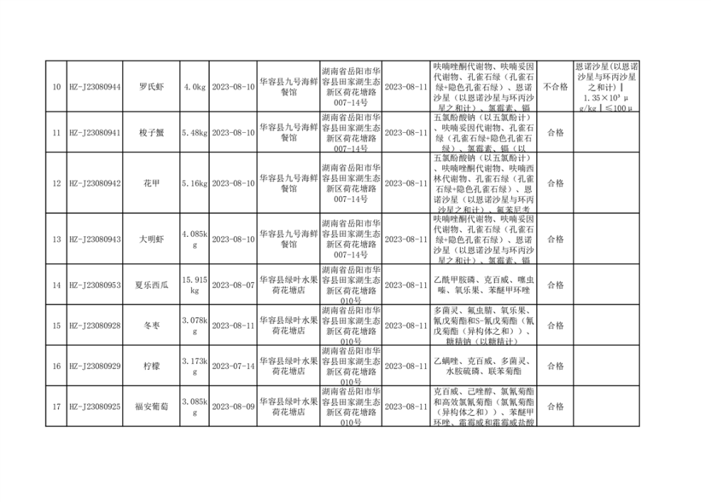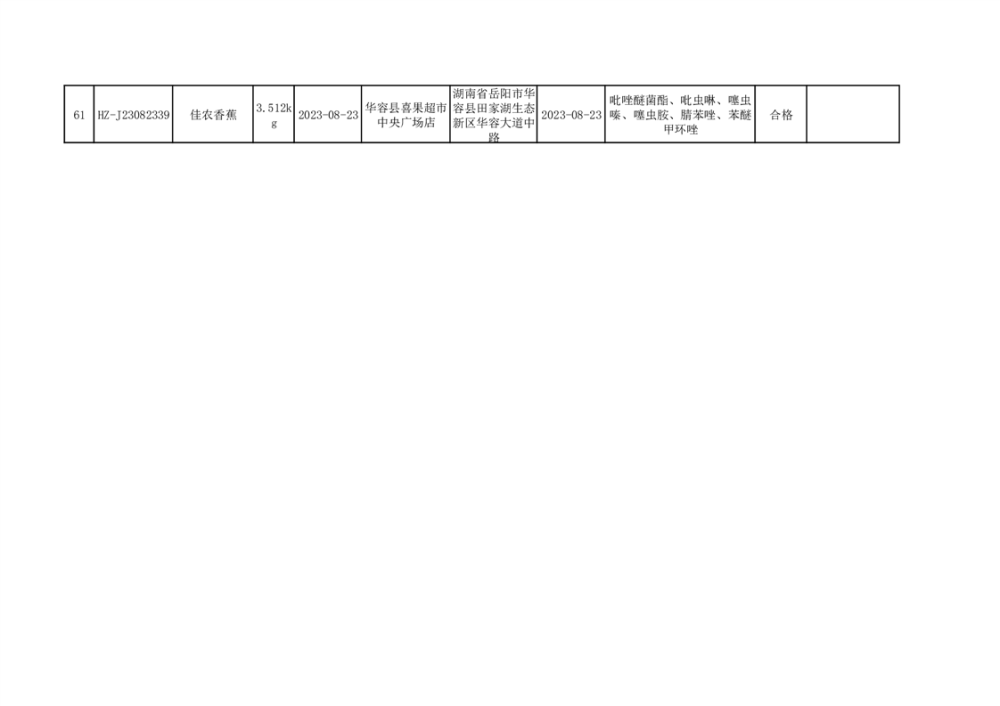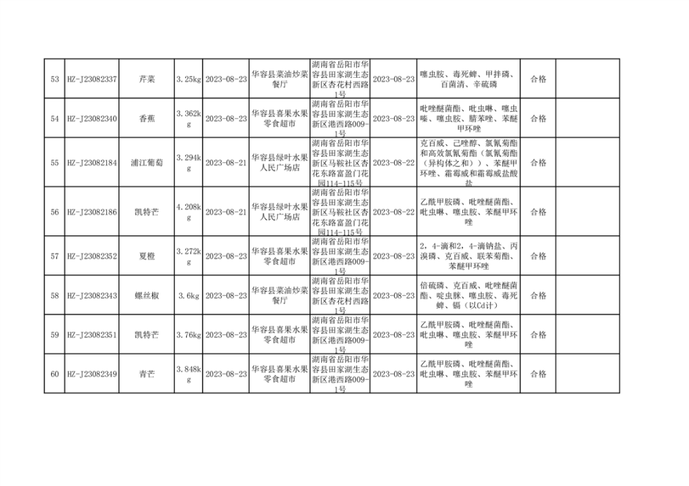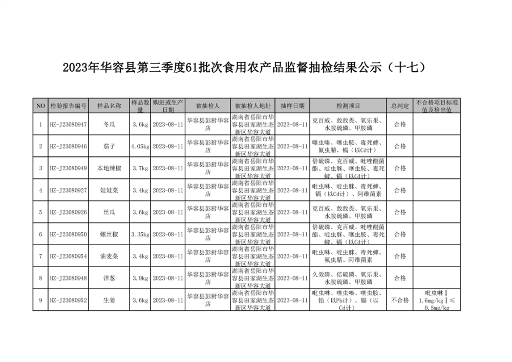 2023年华容县第三季度61批次食用农产品监督抽检结果公示(十七)