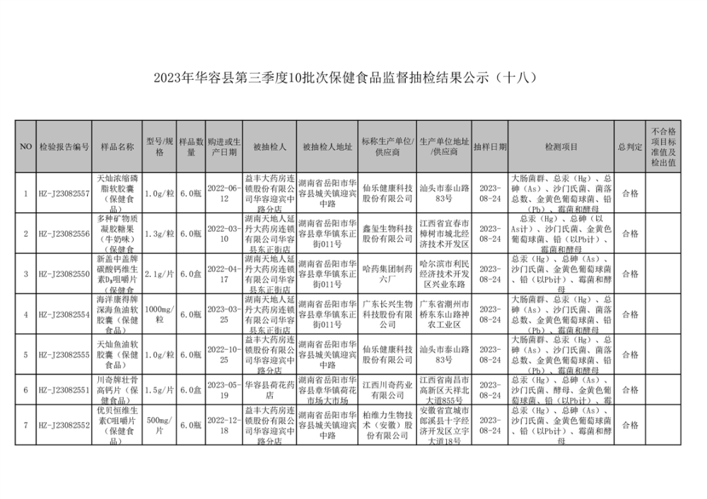 2023年华容县第三季度10批次保健食品监督抽检结果公示(十八)