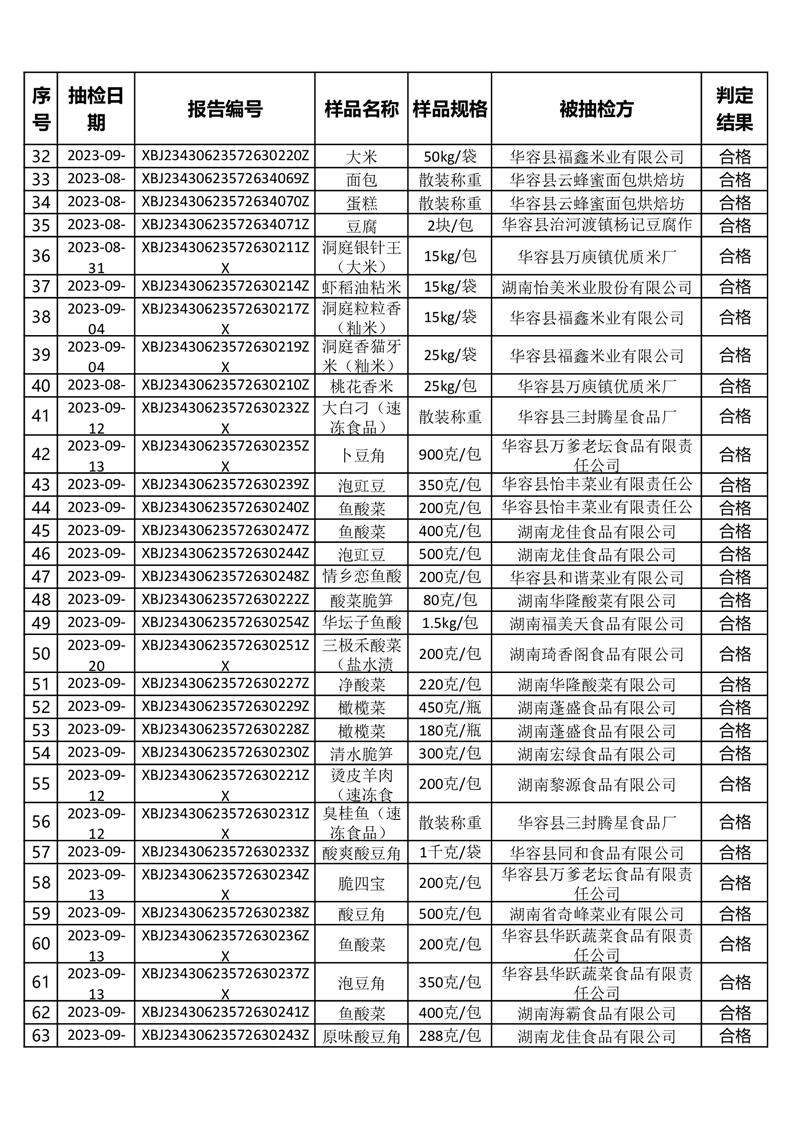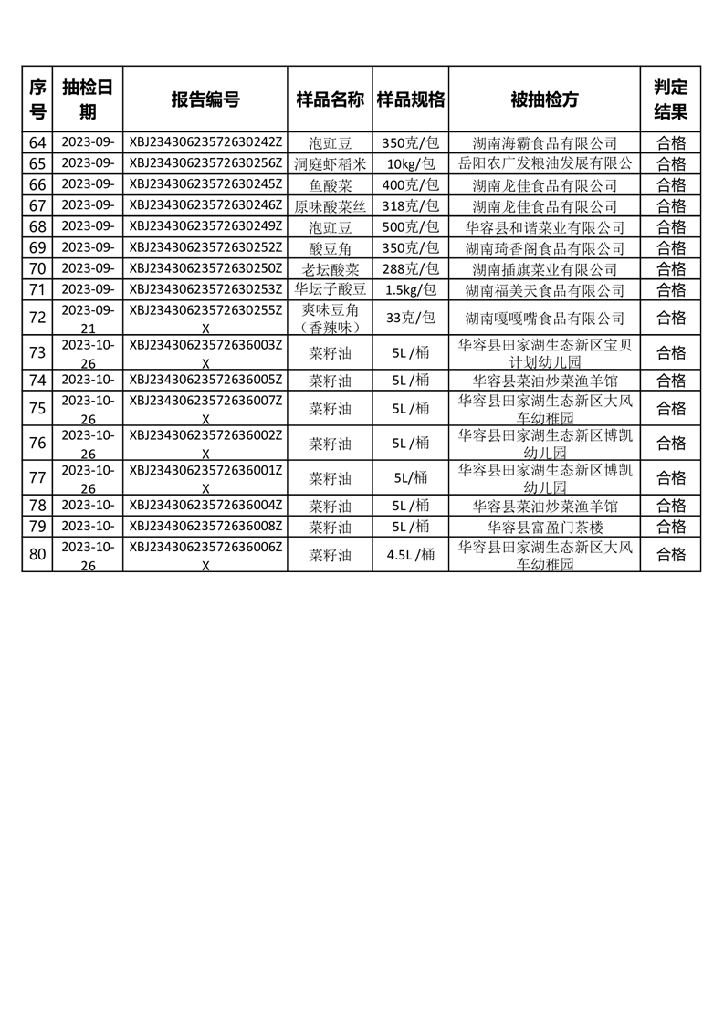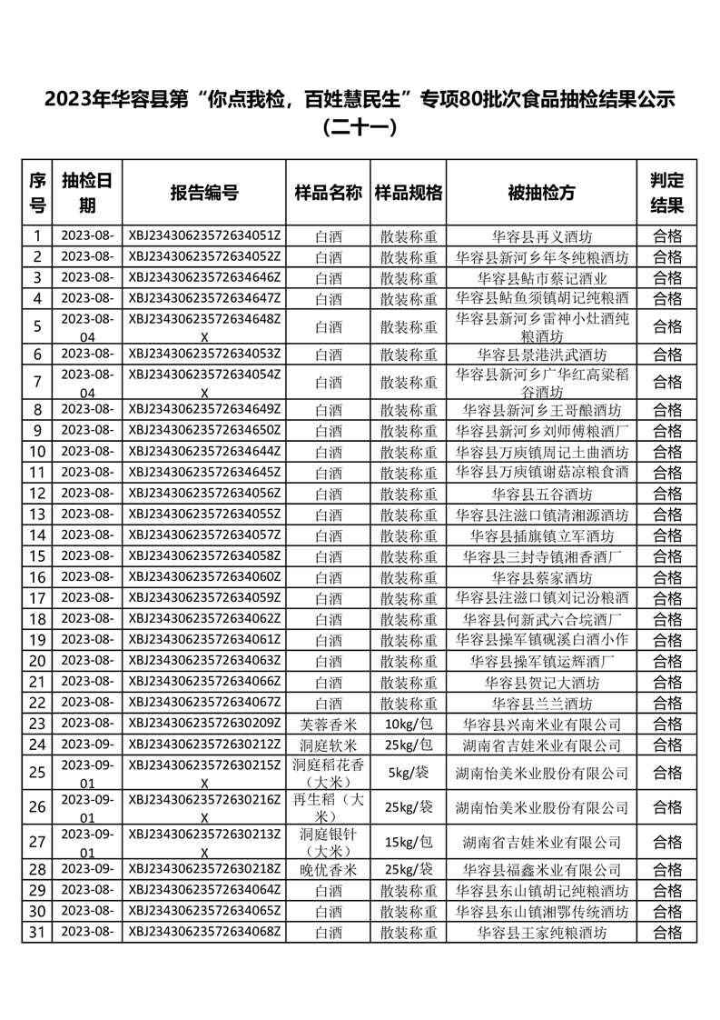 2023年华容县第“你点我检,百姓慧民生”专项80批次食品抽检结果公示(二十一)
