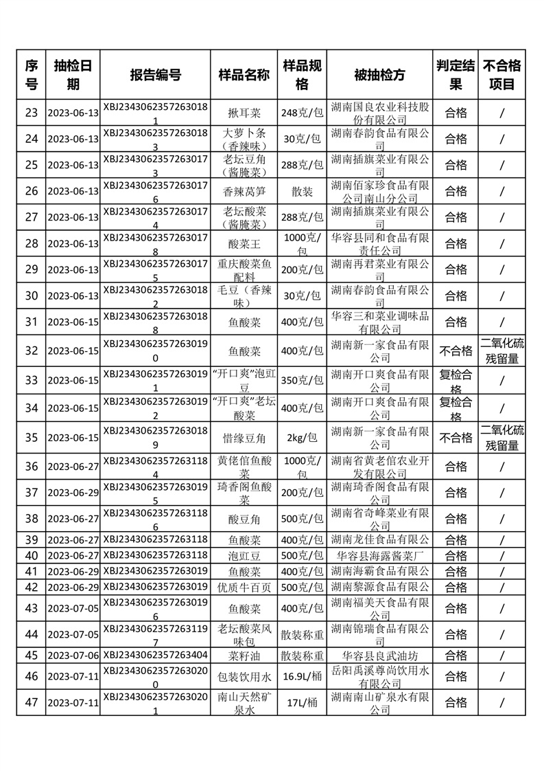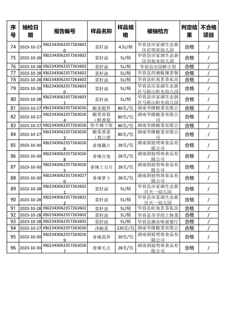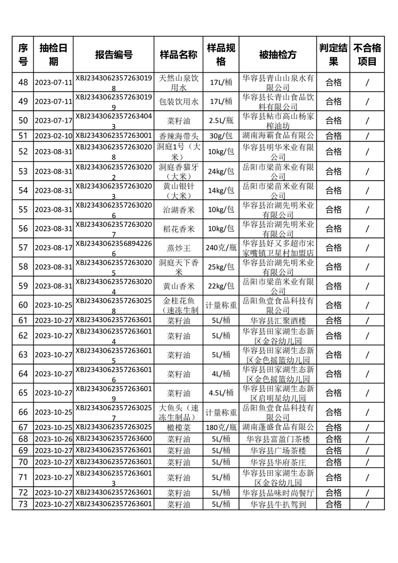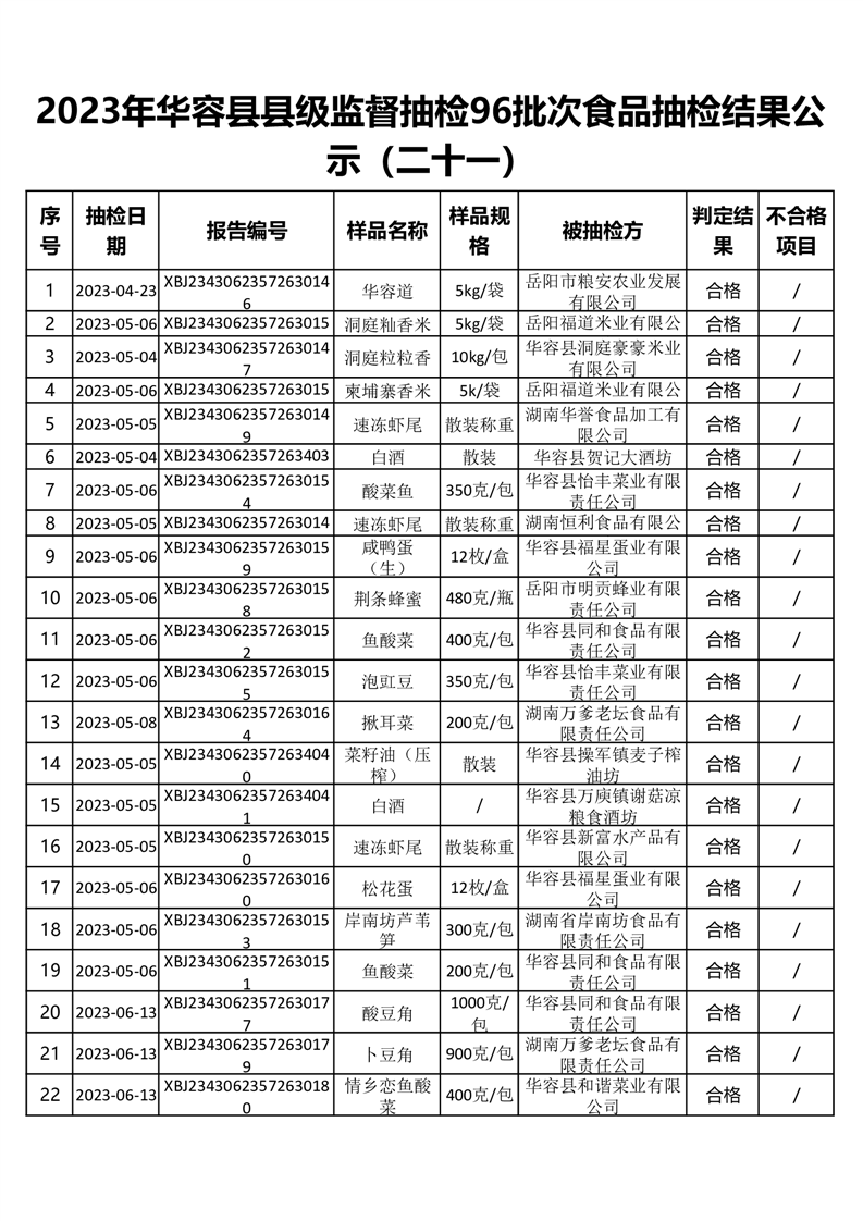 2023年华容县第三季度96批次食品抽检结果公示(二十二)