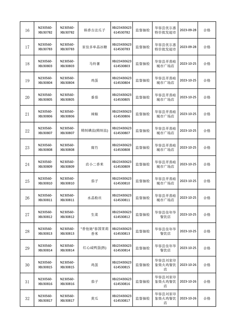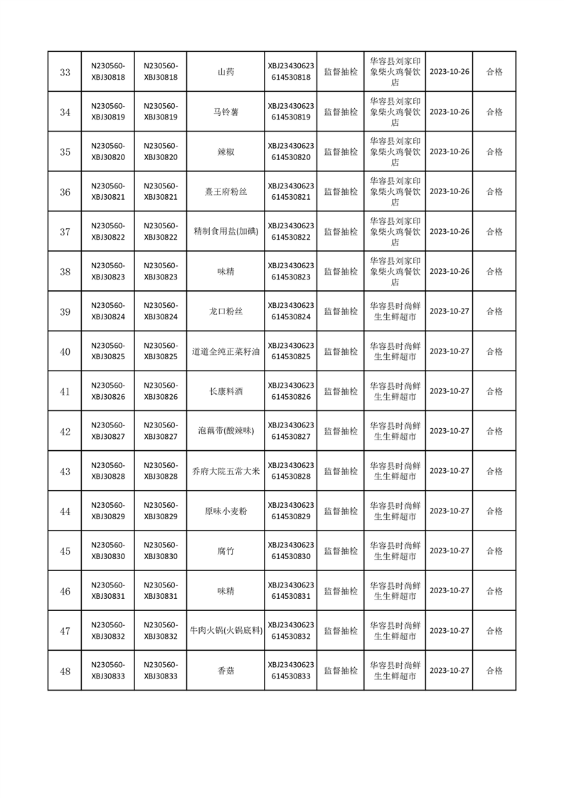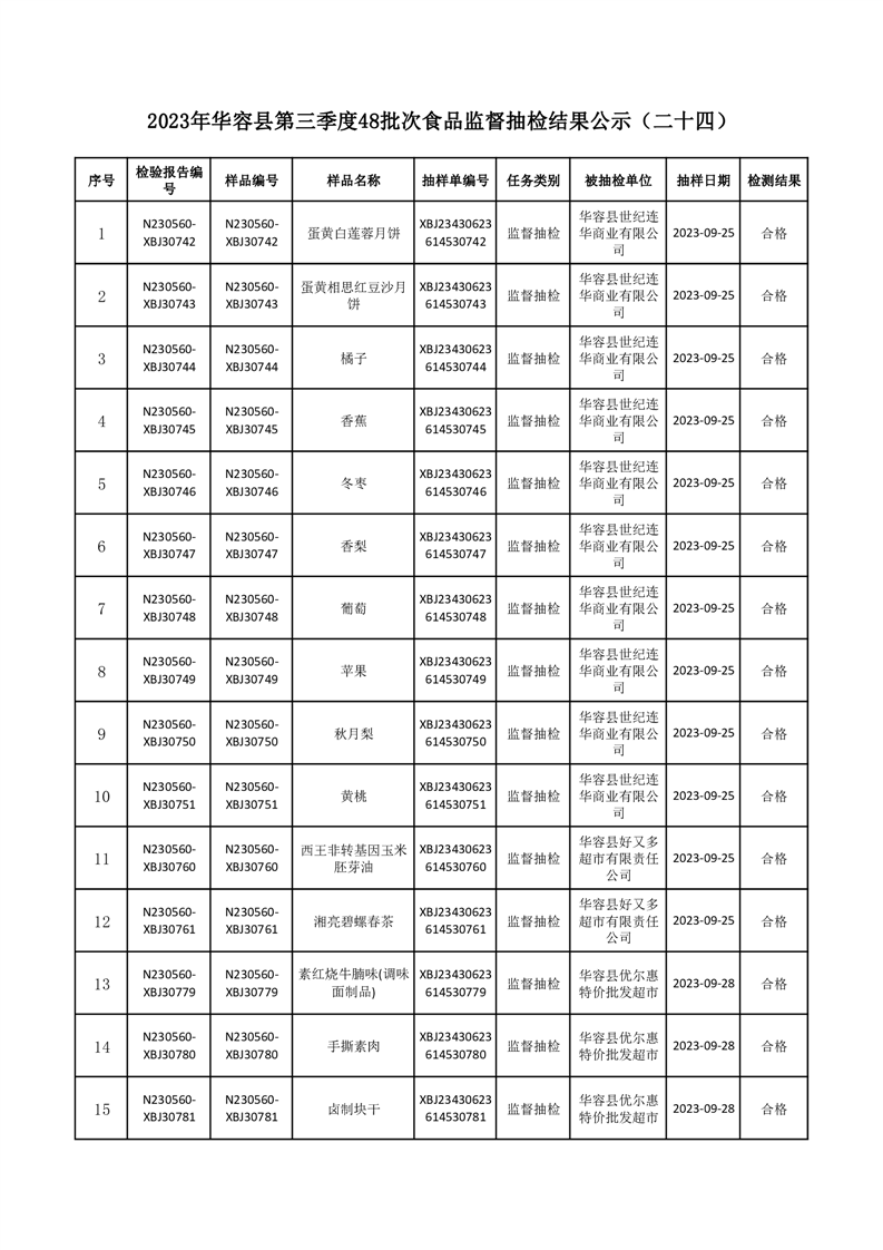 2023年华容县第三季度48批次食品监督抽检结果公示(二十四)