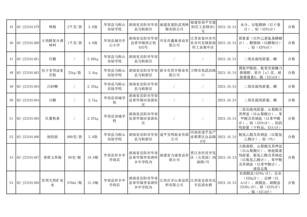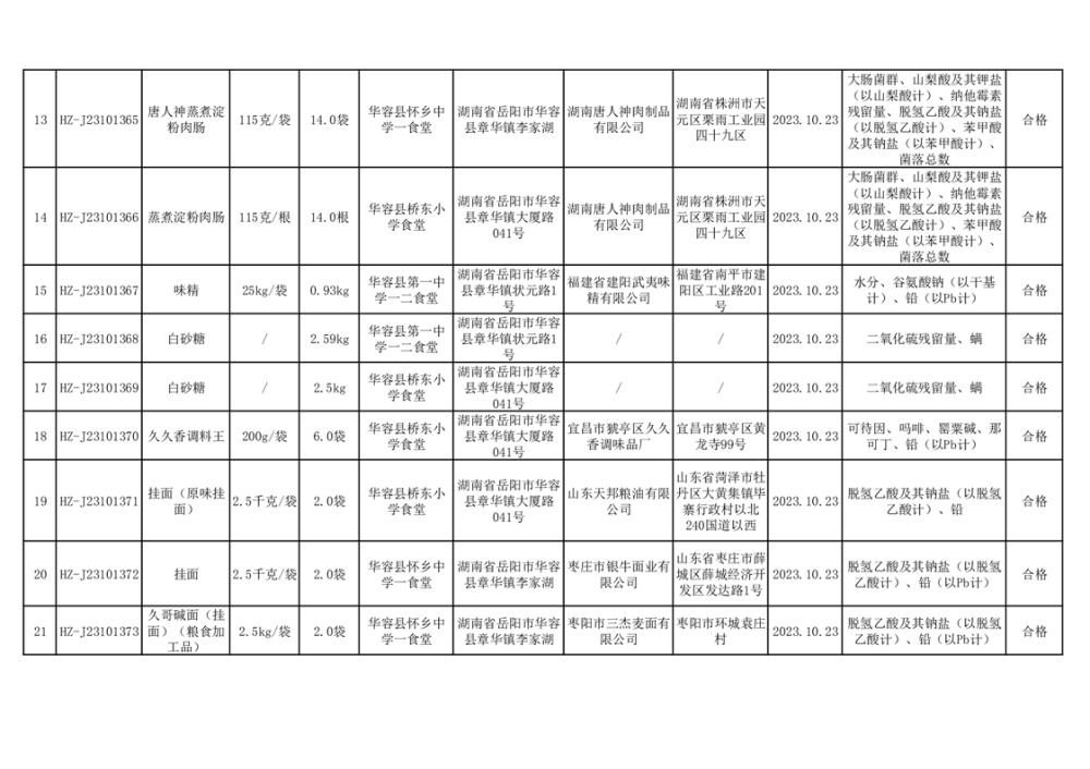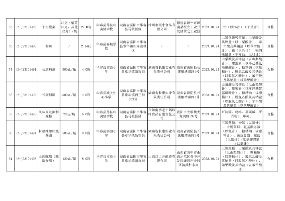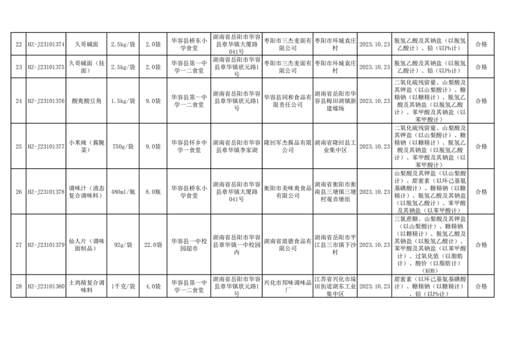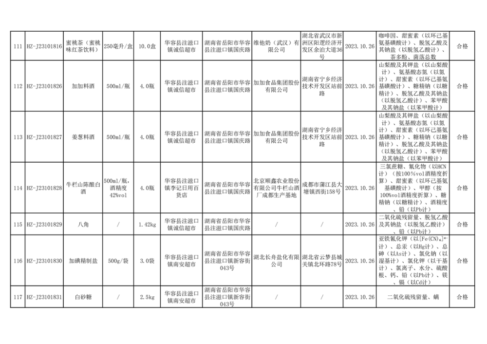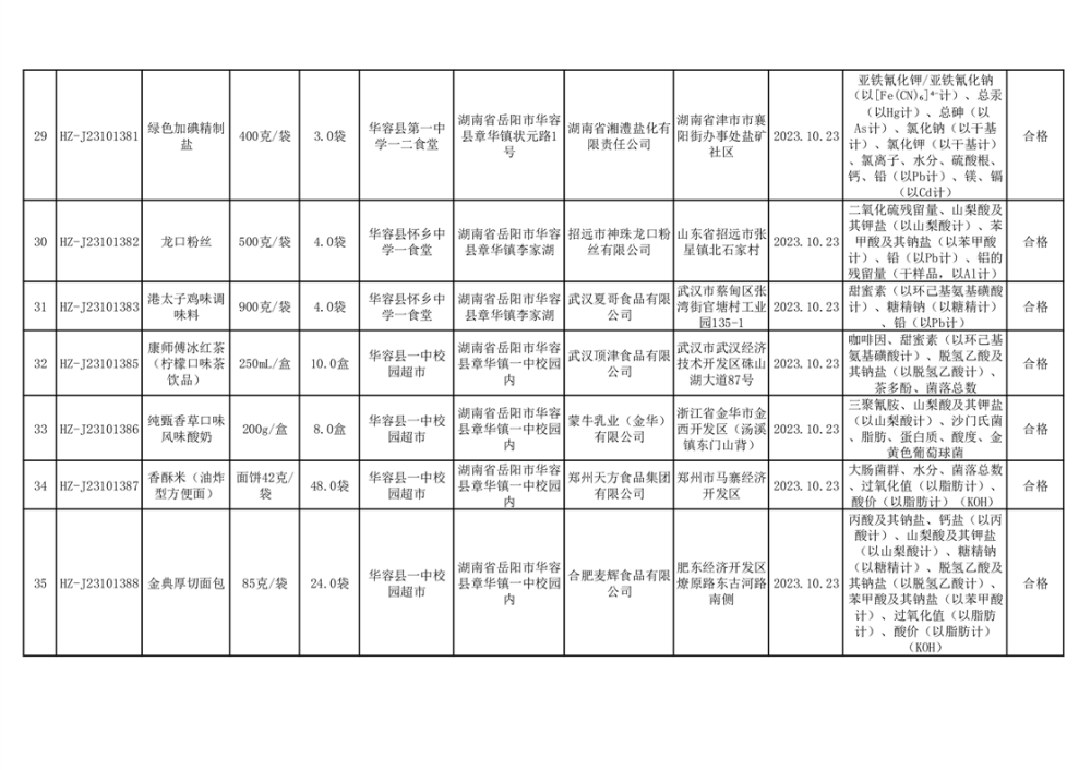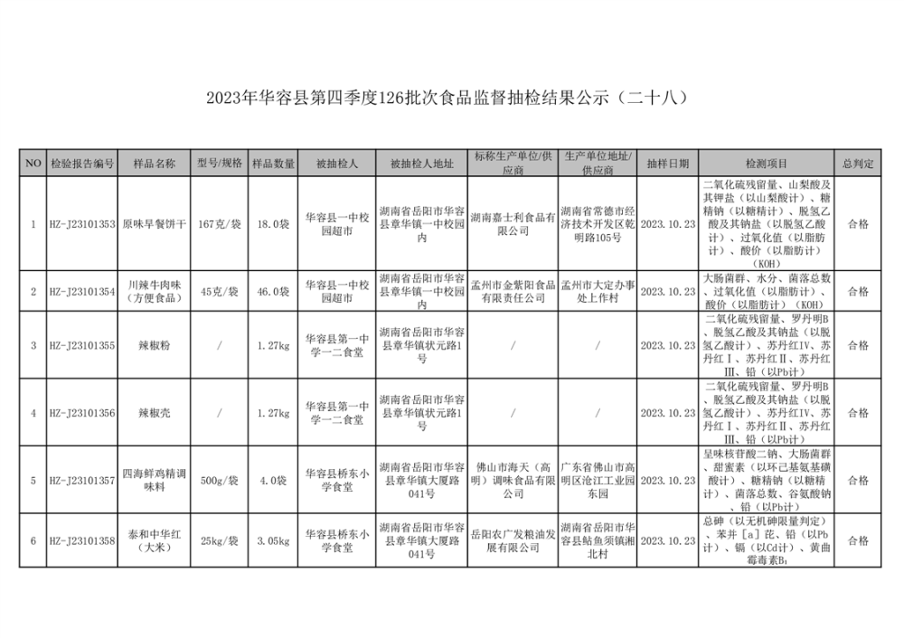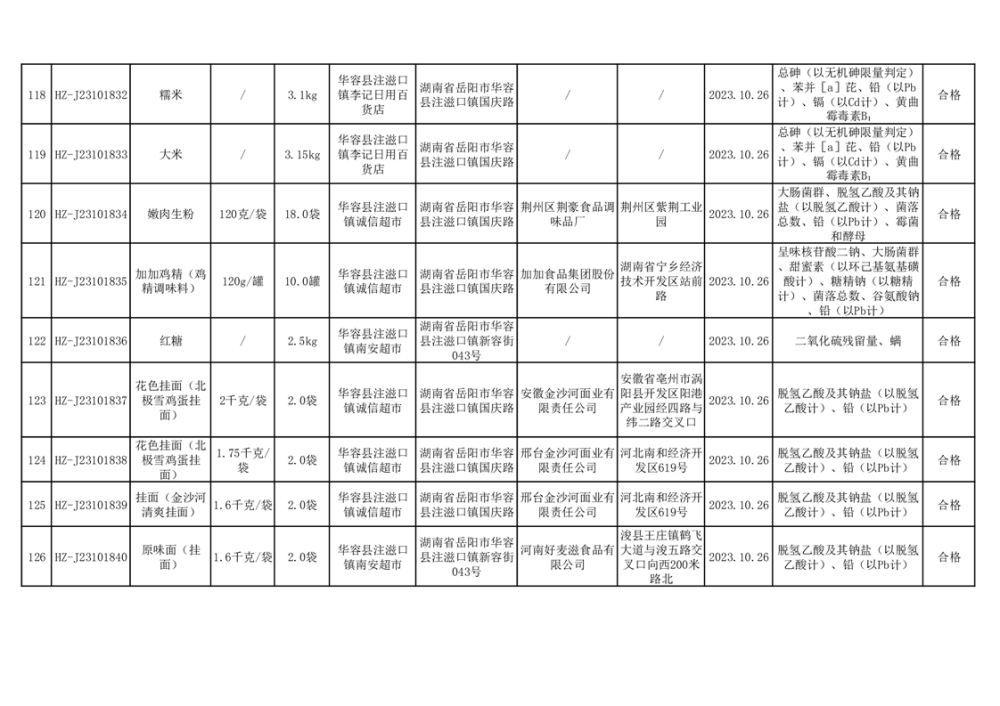 2023年华容县第四季度126批次食品监督抽检结果公示(二十八)