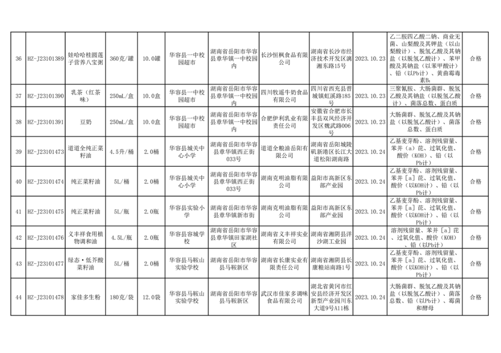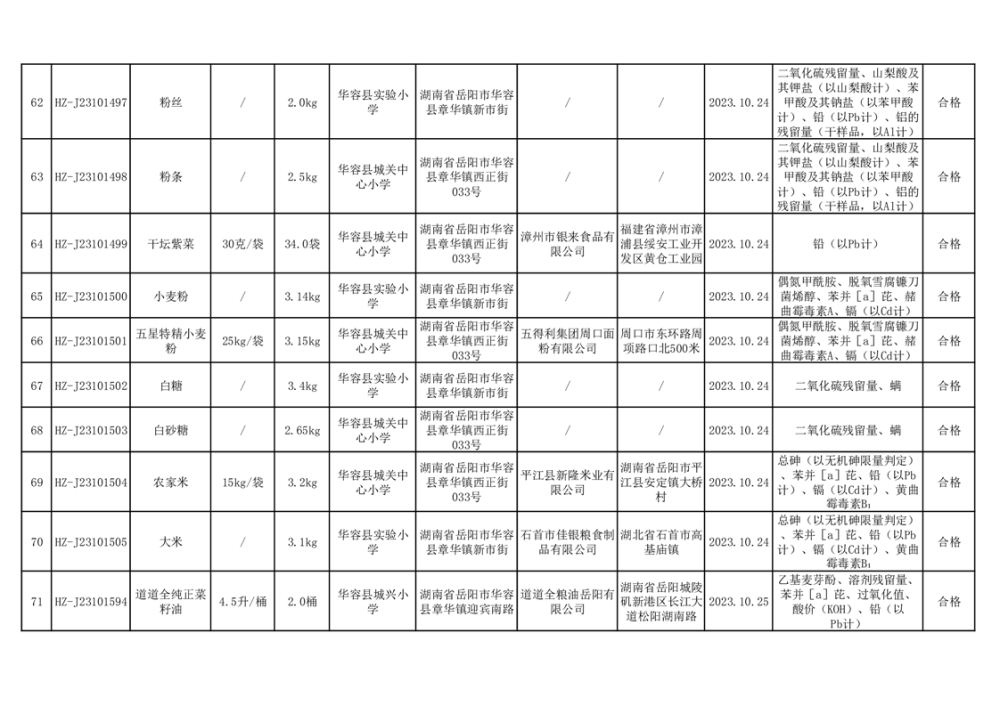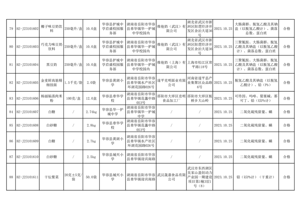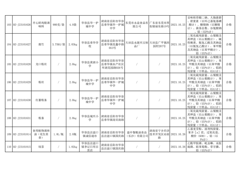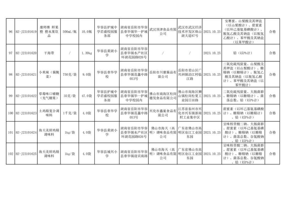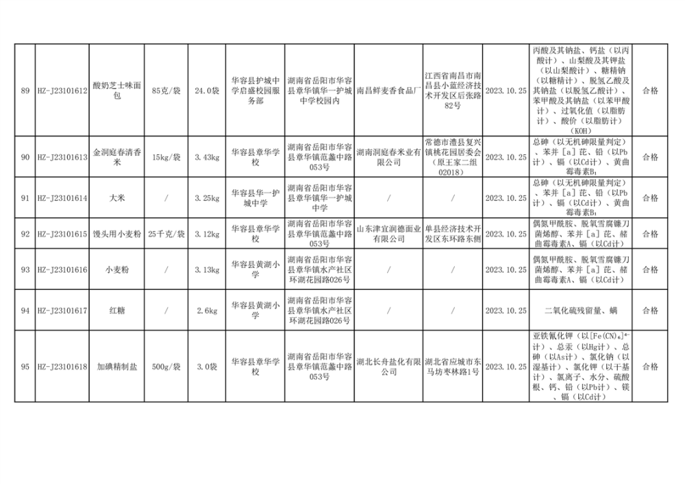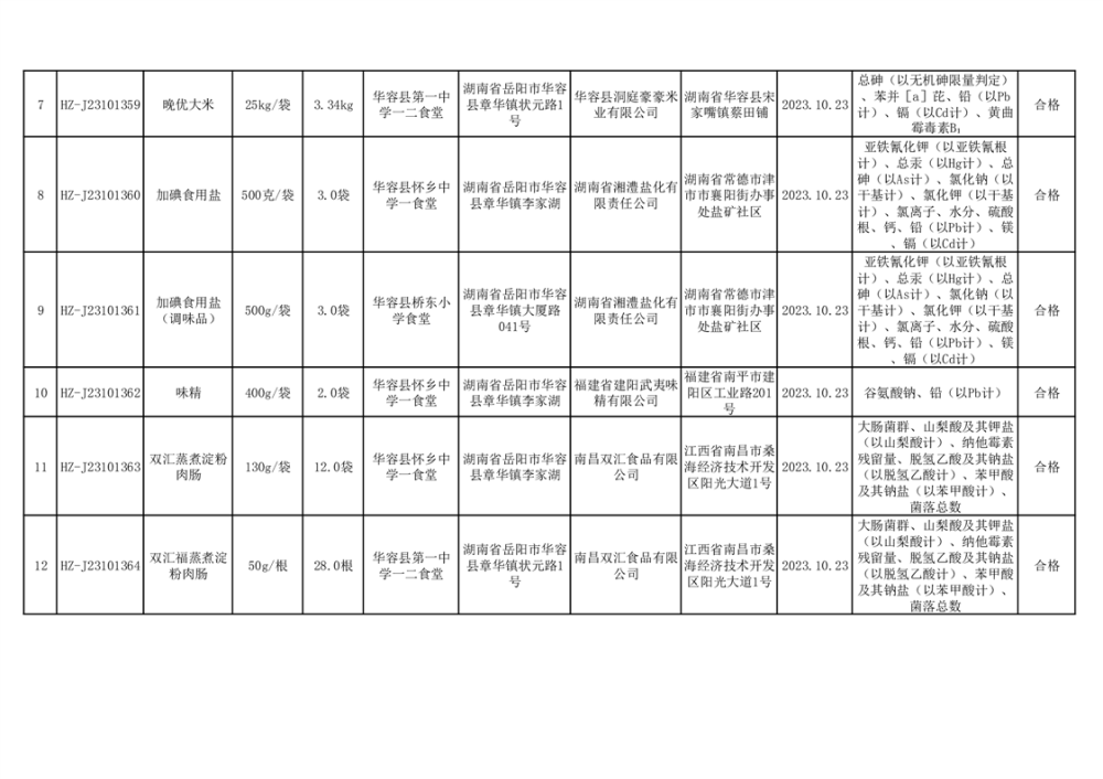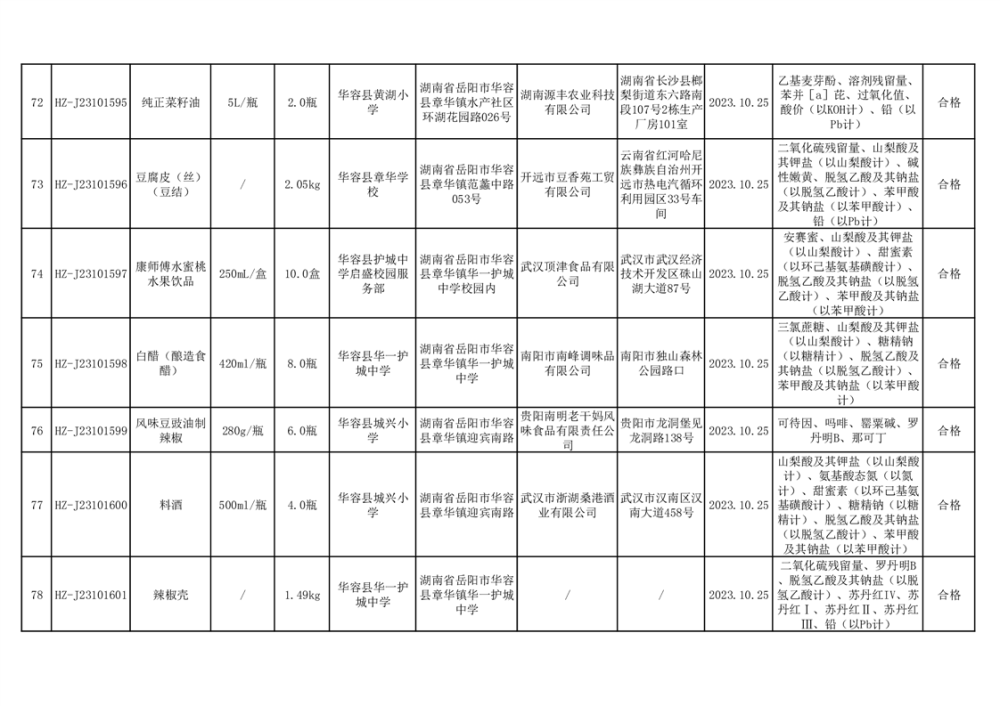 2023年华容县第四季度126批次食品监督抽检结果公示(二十八)