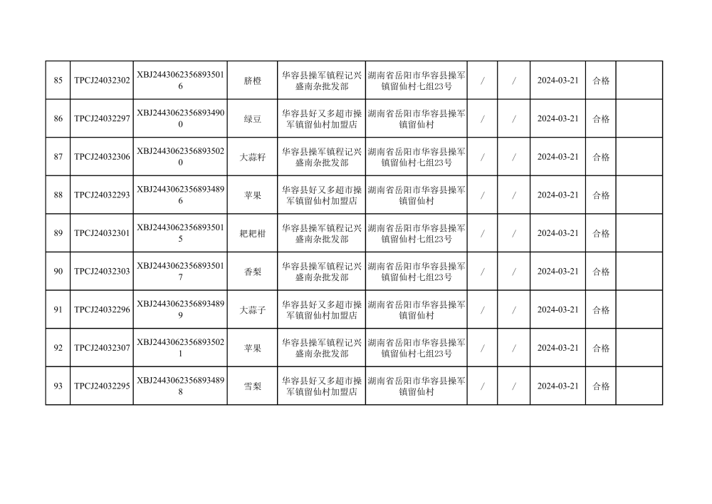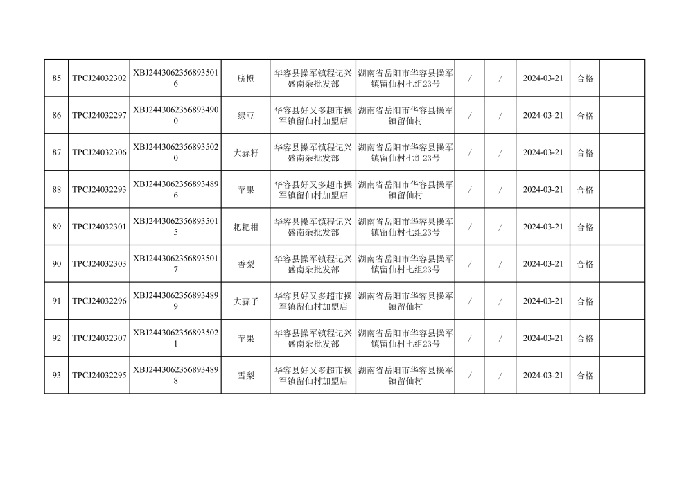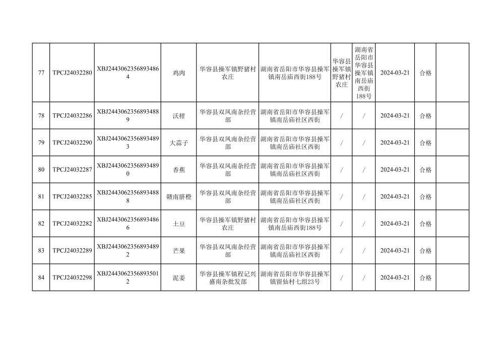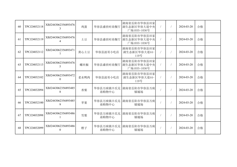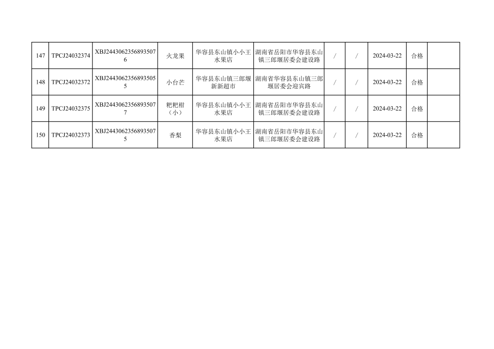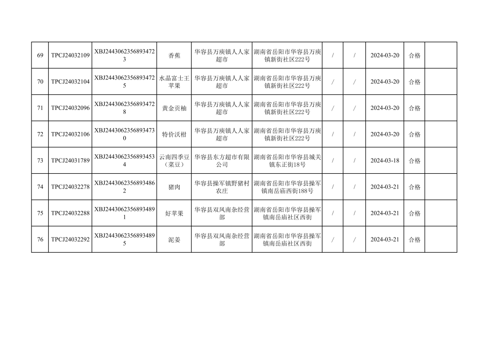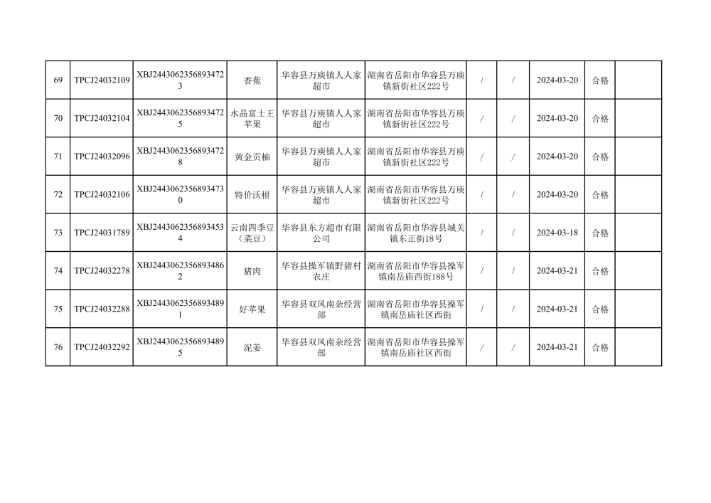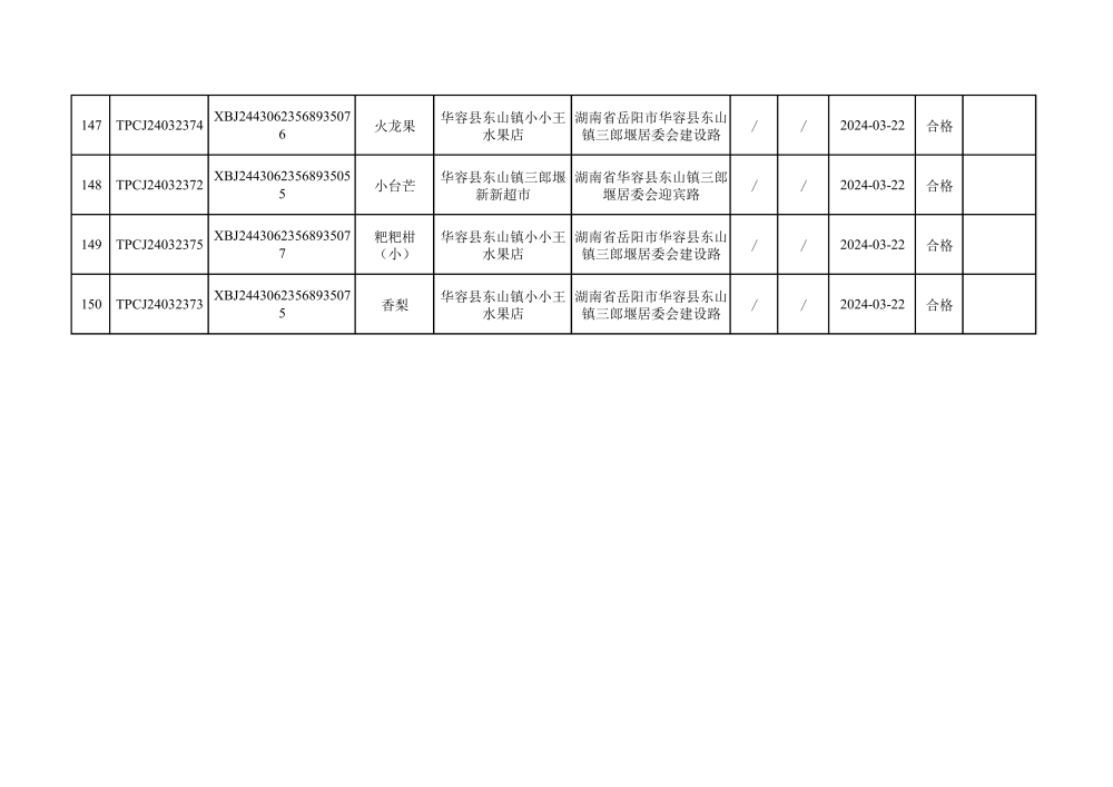 华容县市场监督管理局2024年第一季度农产品专项抽检结果汇总(共150批次)