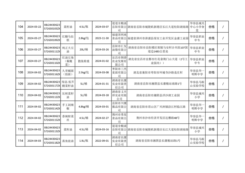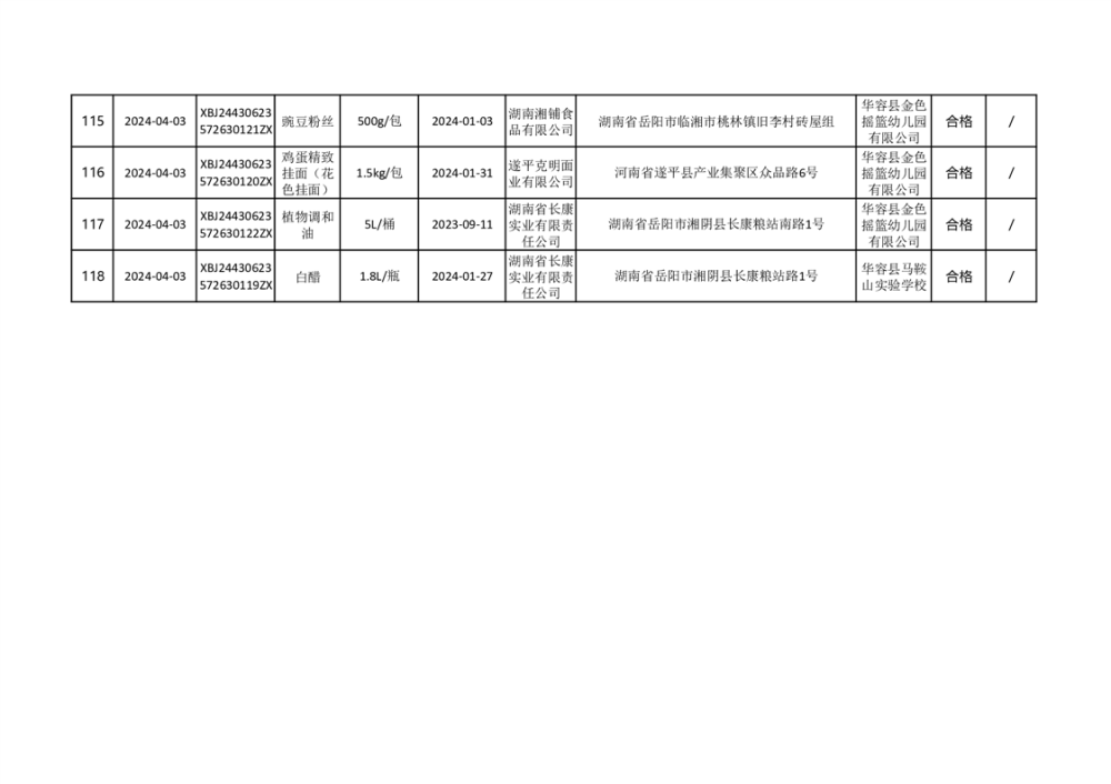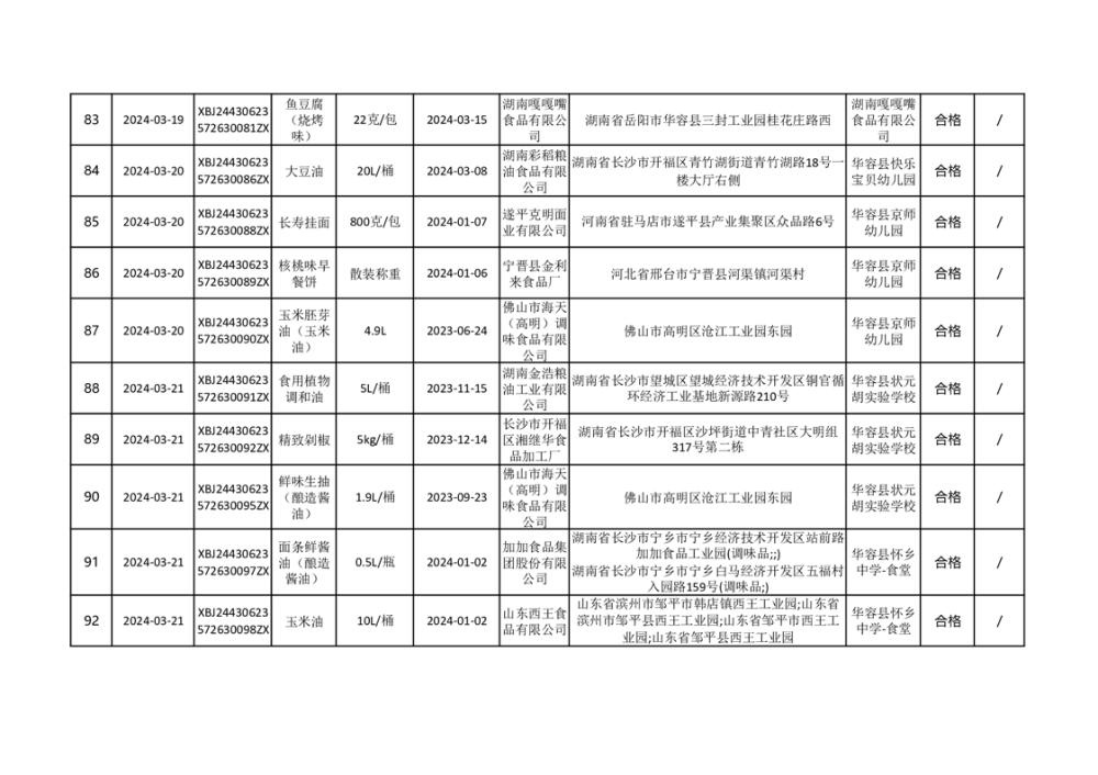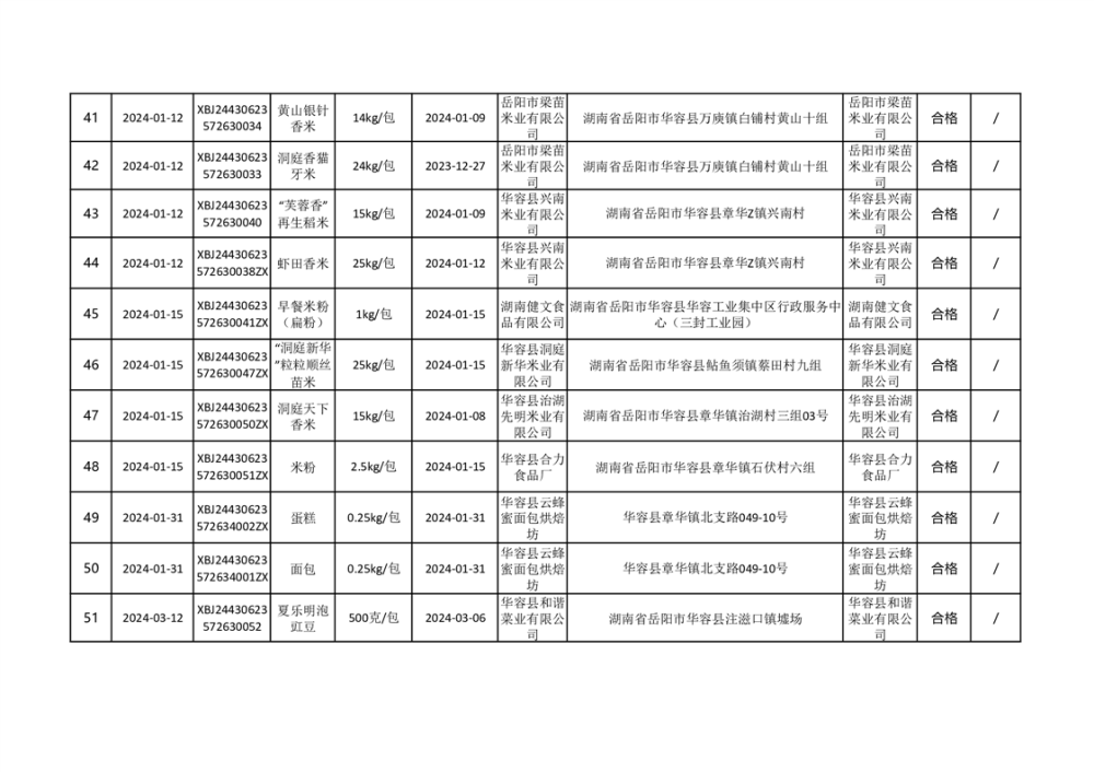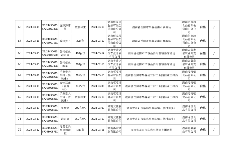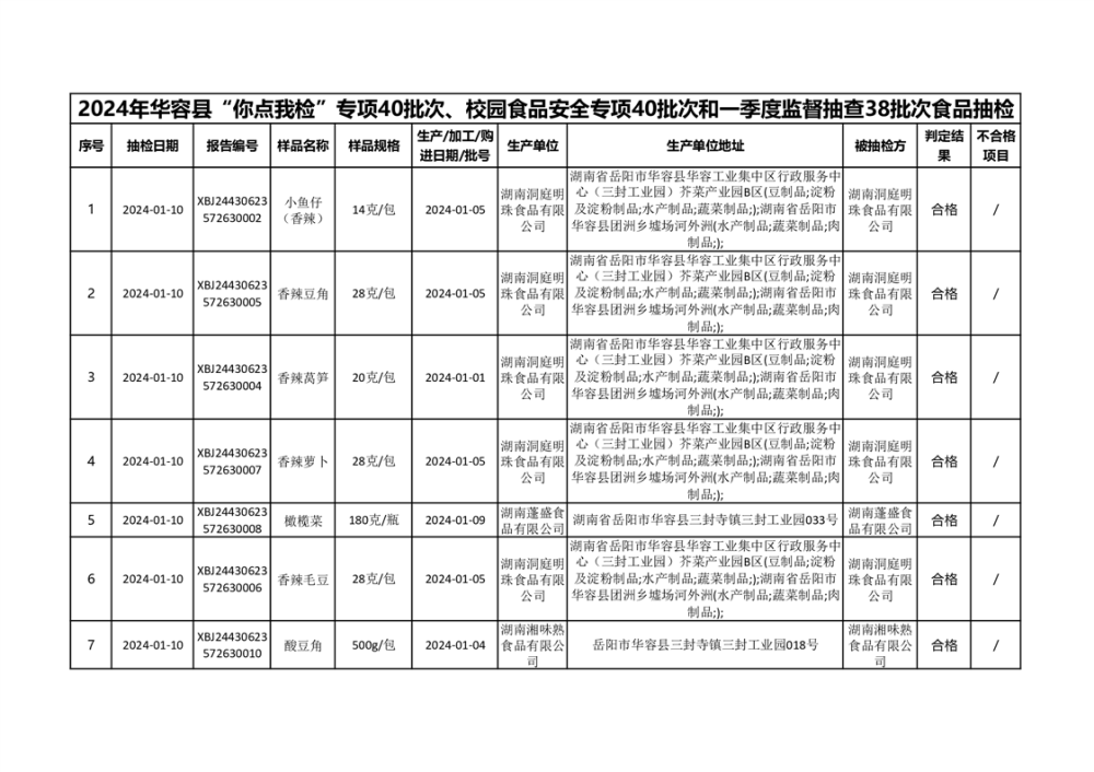 华容县“你点我检”专项40批次、校园食品安全专项40批次和一季度监督抽查38批次食品抽检结果公示(三))