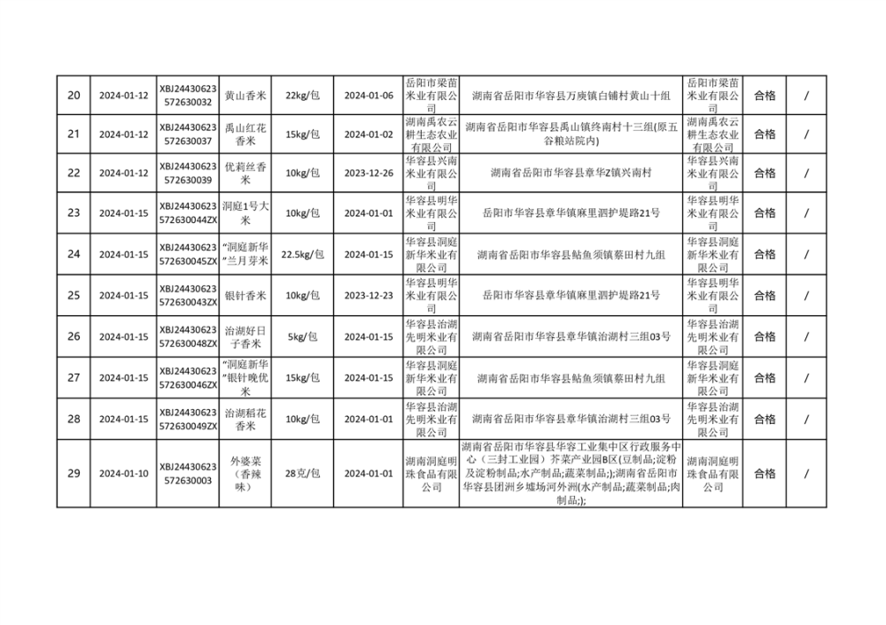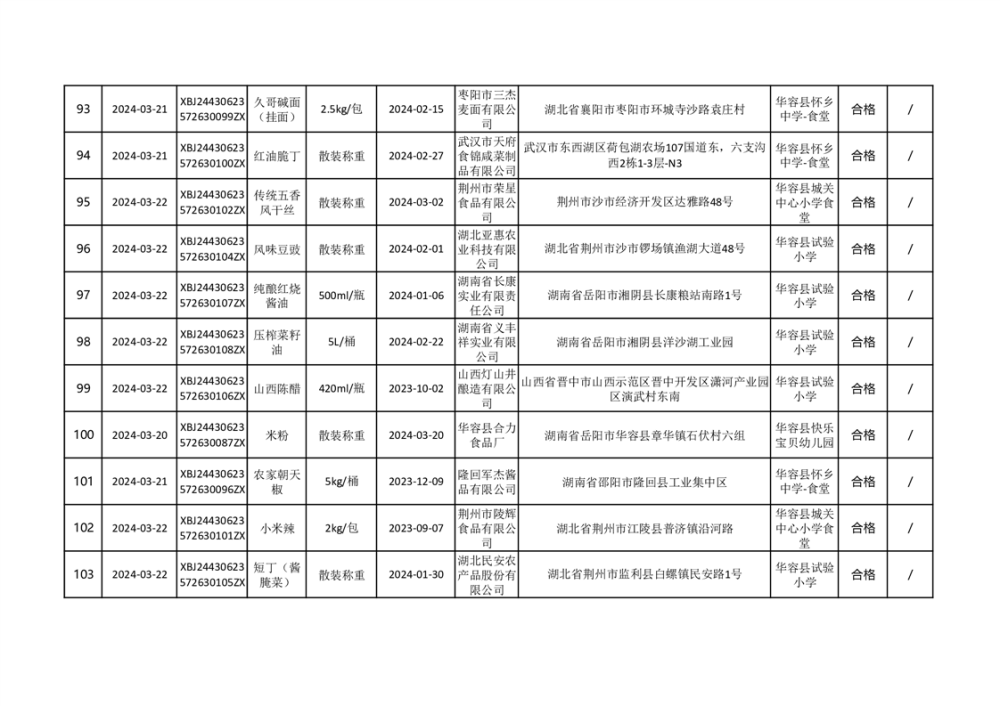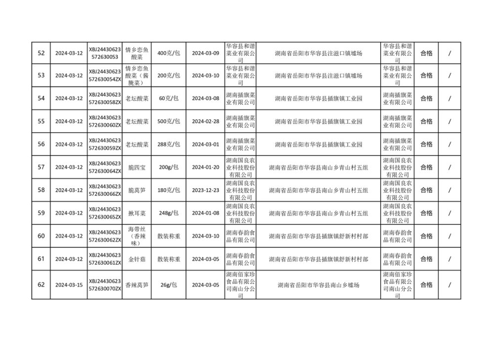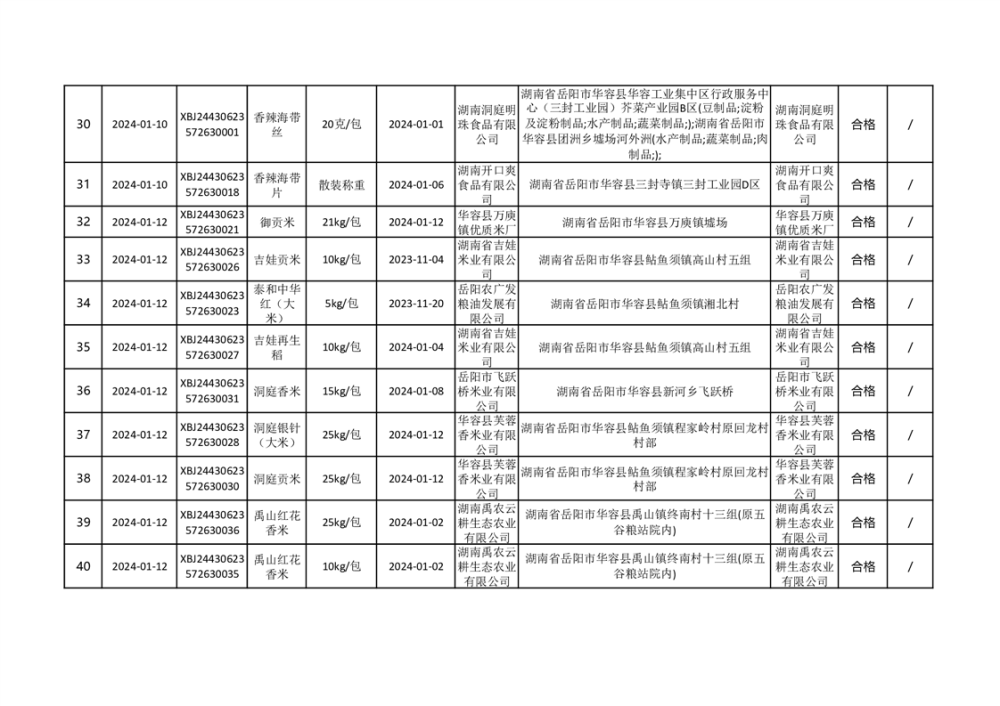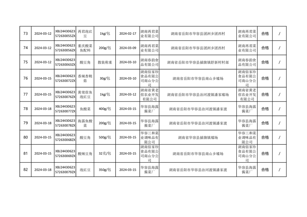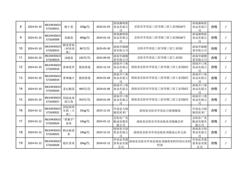 华容县“你点我检”专项40批次、校园食品安全专项40批次和一季度监督抽查38批次食品抽检结果公示(三))