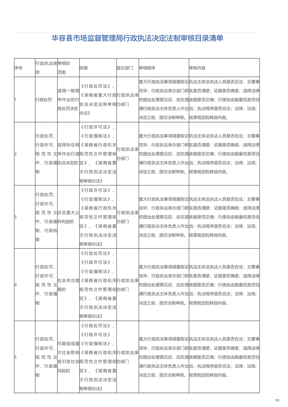 华容县市场监督管理局行政执法决定法制审核目录清单