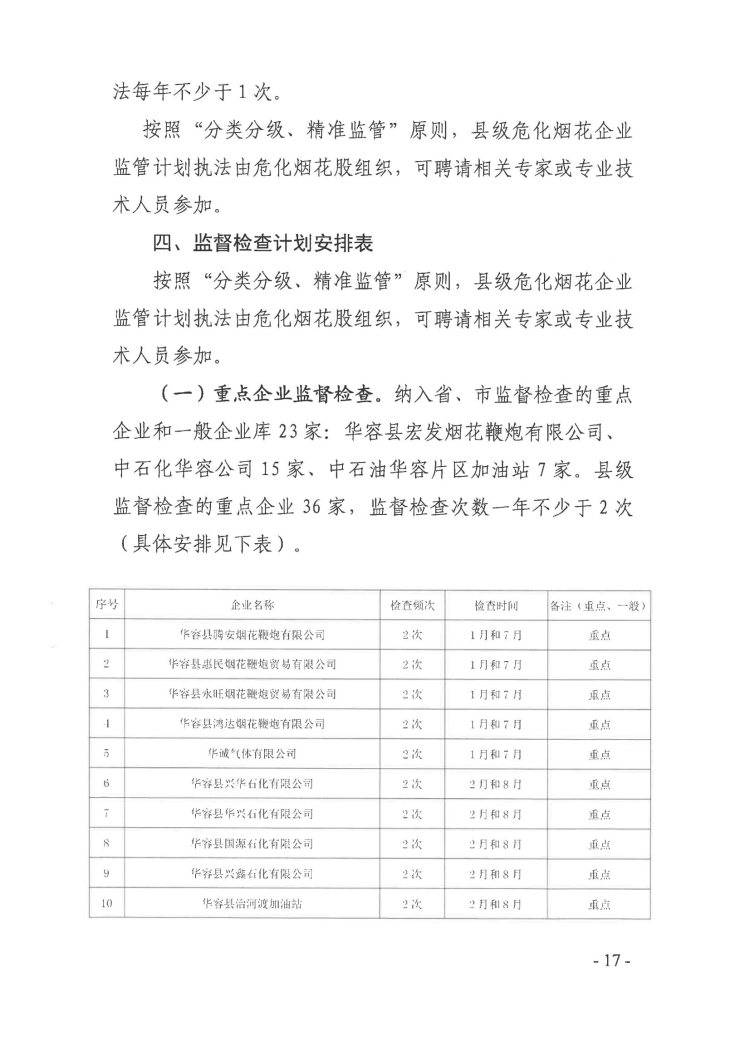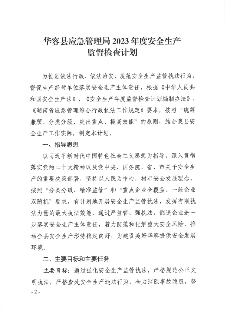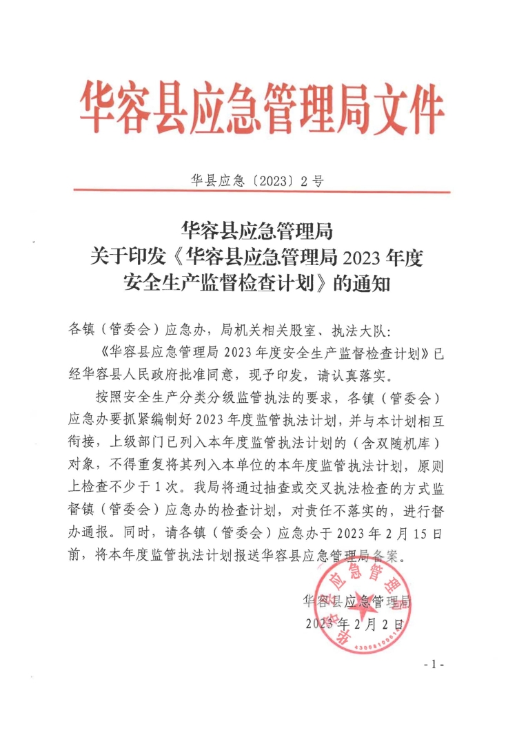 关于印发《华容县应急管理局2023年度安全生产监督检查计划》的通知