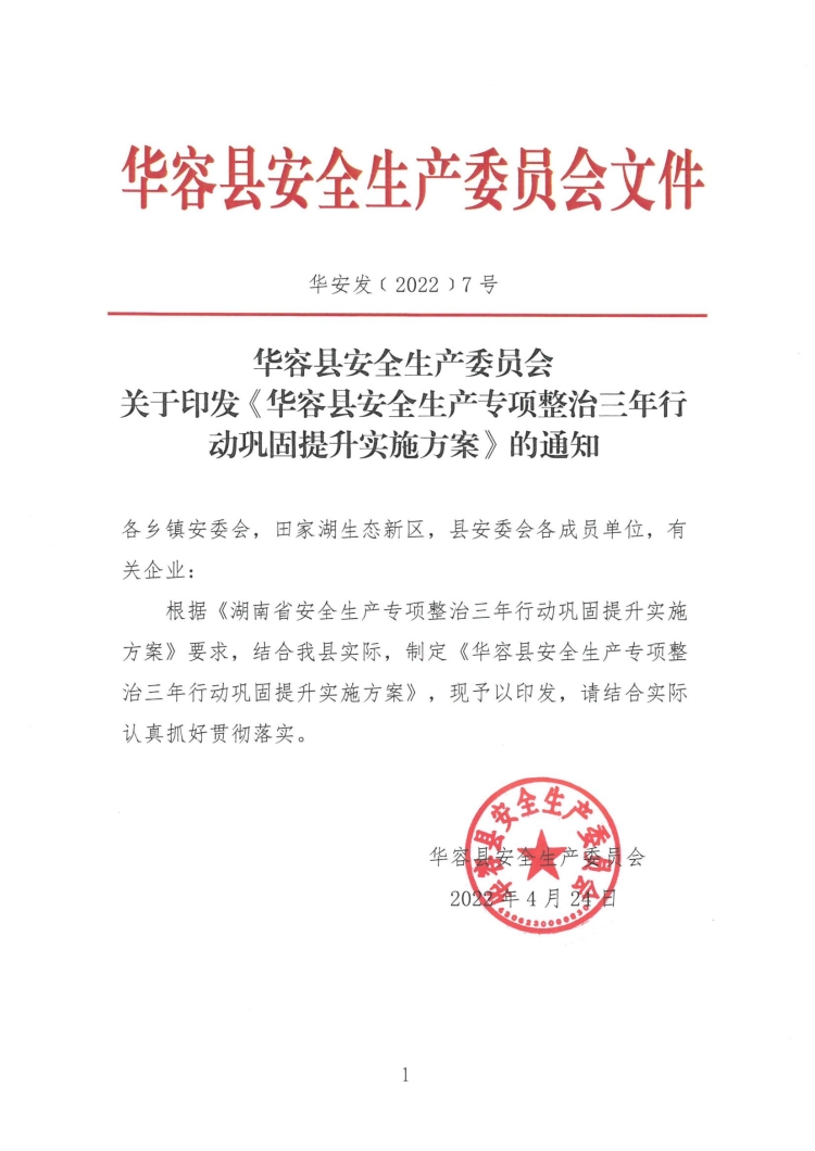 关于印发《华容县安全生产专项整治三年行动巩固提升实施方案》的通知 (2)