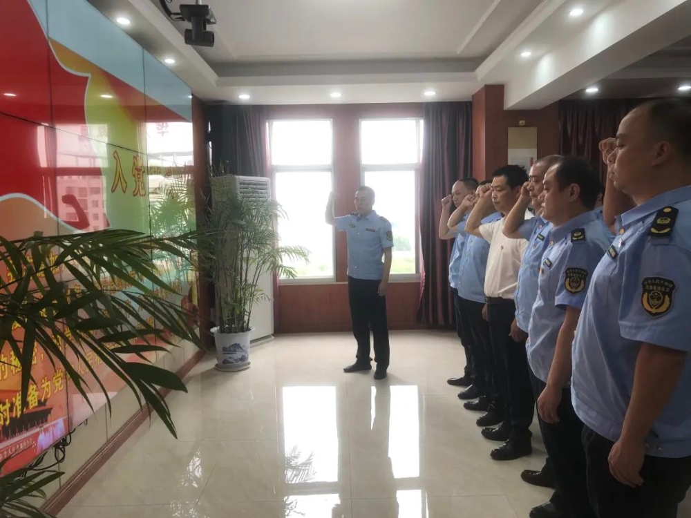 会议在庄严的国歌声中拉开序幕。会上,局党委委员、政工室主任白桦宣读表彰通报,主席台领导向每位党员发放“政治生日贺卡”,并向6名优秀共产党员和1名优秀党务工作者发放荣誉证书,随后,在白桦的领誓下,全体党员重温入党誓词。