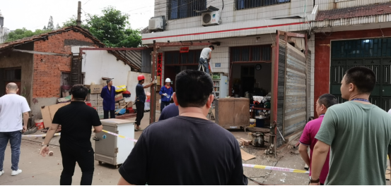 为了切实消除马路市场安全隐患,6月14日,华容县禁违办组织章华镇人民政府、县自然资源行政执法大队及相关单位,对城区状元街菜市场内存量马路市场违章建筑进行集中整治,成功化解由私拉乱建带来的安全风险。