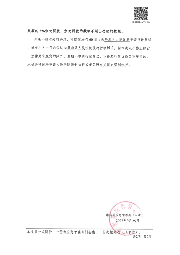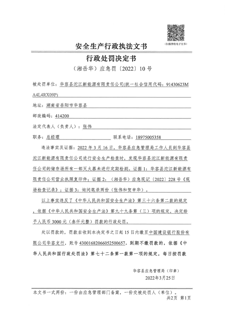华容县沱江新能源有限责任公司行政处罚决定书
