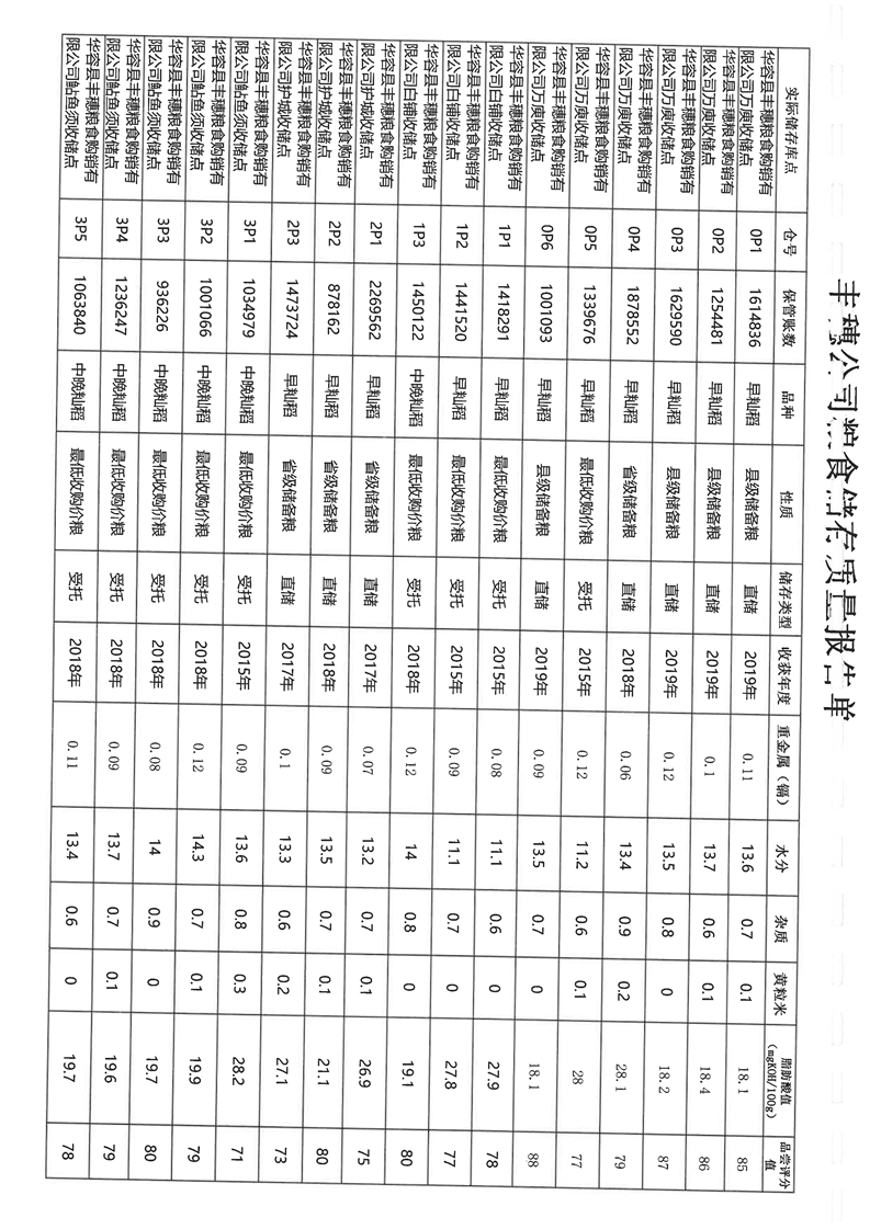 丰穗公司粮食质量报告单