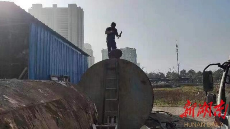 湖南日报·新湖南客户端11月27日讯(通讯员 黎执龙 李勇)11月25,华容县商务粮食局牵头,组织县市监局、住建局、交通局等县成品油整治领导小组成员单位的执法人员,以蹲守方式,在田家湖生态新区某建筑工地,现场截获一台非法改装的加油车辆,并顺藤摸瓜,在附近某村查获一非法储油罐。