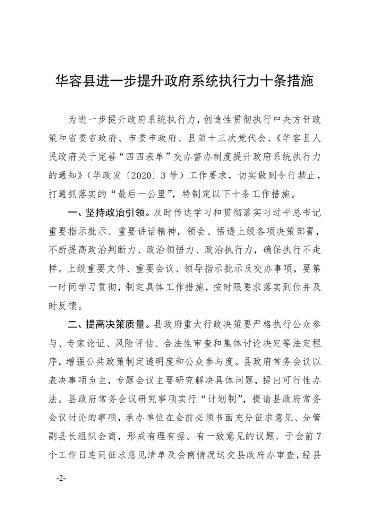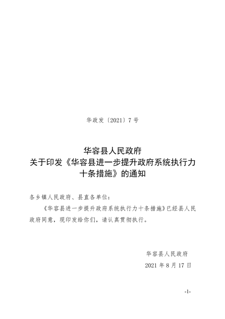关于印发《华容县进一步提升政府系统执行力十条措施》的通知