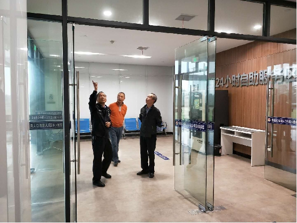 在教导员杜百超同志的陪同下,岳阳县一行参观了我局人口与出入境接待大厅,实地察看了接待窗口建设、警力配备、场地布置、业务受理等方面工作,并仔细查看了自助设备的使用情况。