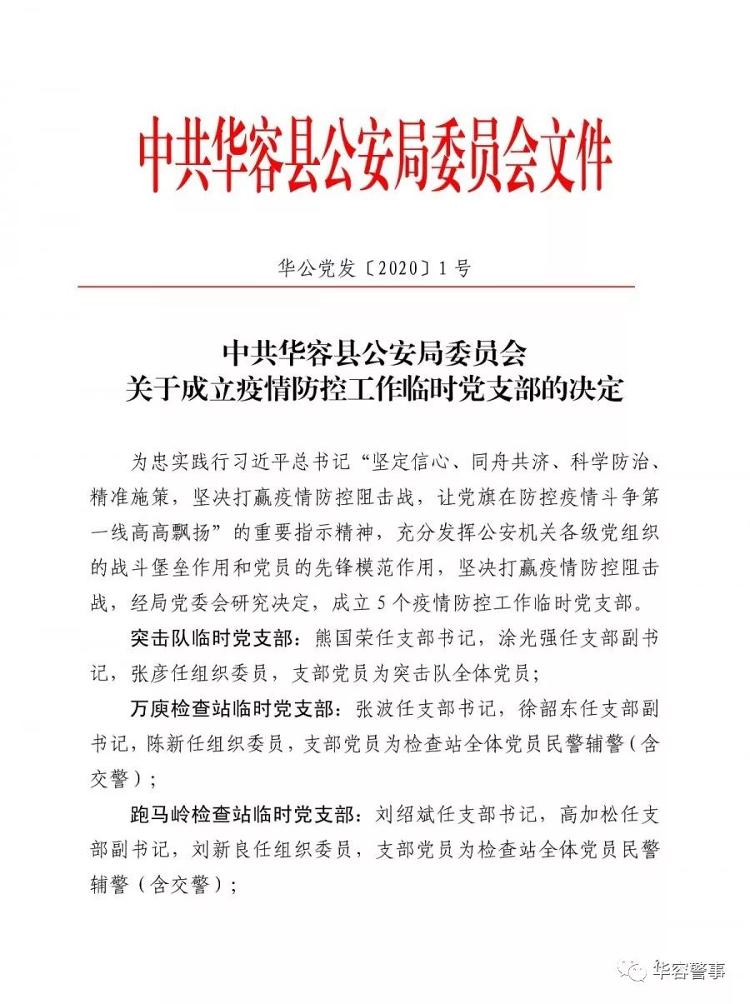 1月31日,县人民政府副县长、公安局党委书记、局长金辉同志主持召开局党委战时政治建警专题会议,学习习近平总书记对新型冠状病毒感染的肺炎疫情作出重要指示精神和《中共湖南省公安厅委员会关于开展战时政治建警的倡议书》,研究部署有关疫情防控工作。会后,印发《关于成立疫情防控工作临时党支部的决定》。