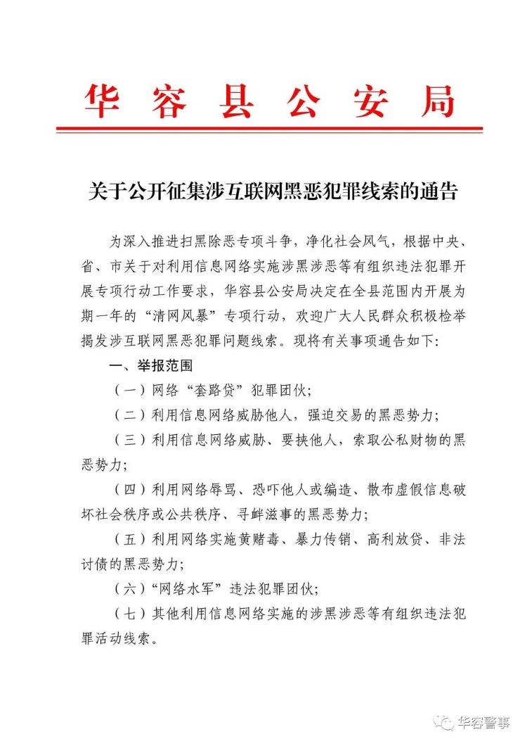 关于公开征集涉互联网黑恶犯罪线索的通告