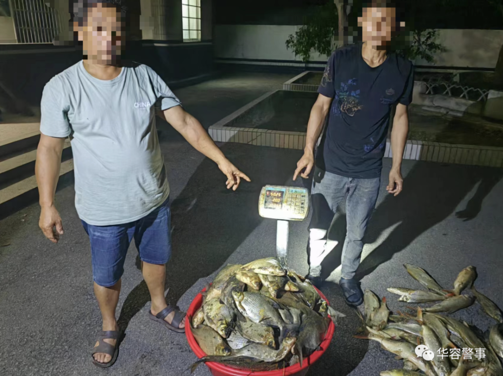 8月17日,华容县公安局森林警察大队与渔政执法大队进行夜晚水面联合巡查执法时,当场抓获两名非法捕捞水产品嫌疑人。