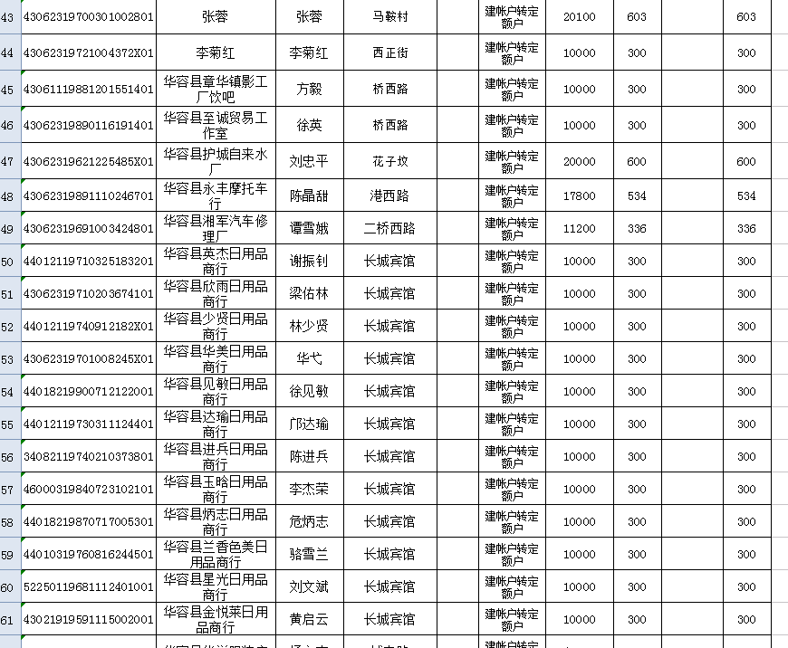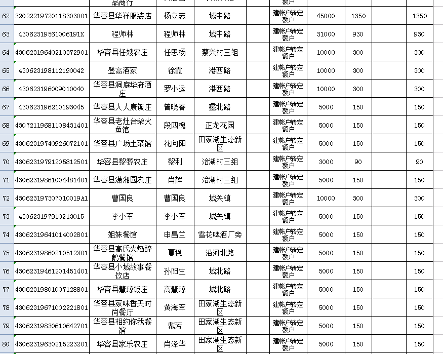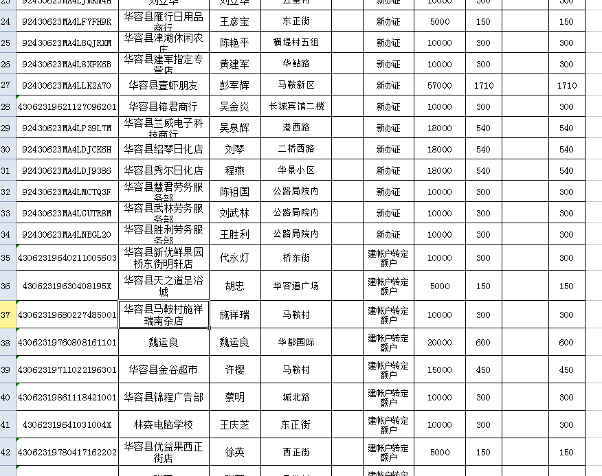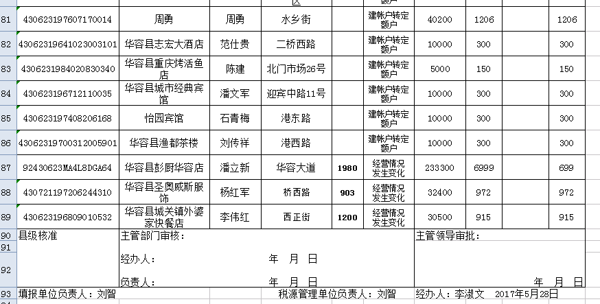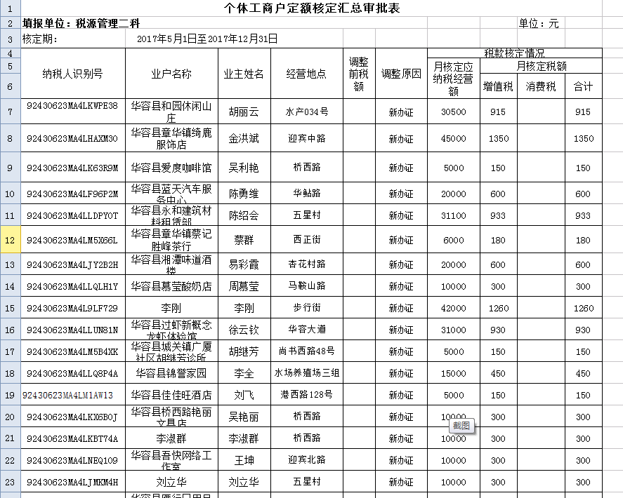 华容县国家税务局税源管理二科2017年5月个体工商户定额汇总公告