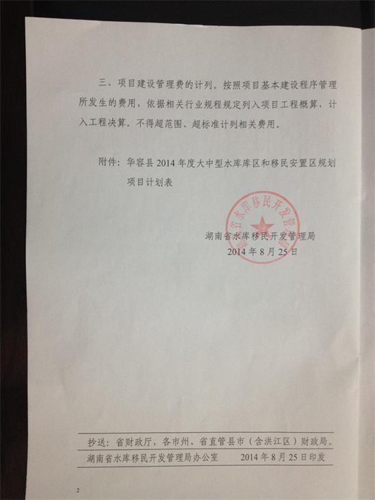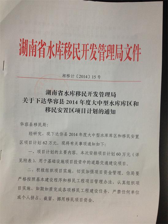 华容县2014年度大中型水库库区和移民安置区规划项目计划