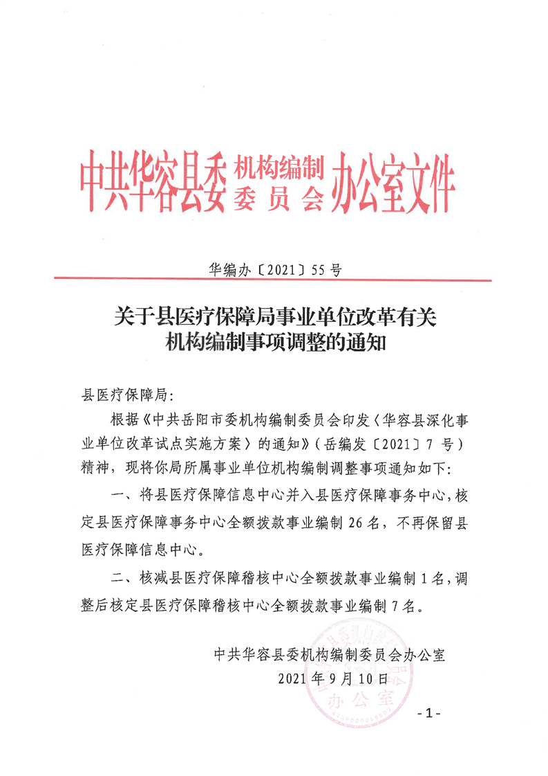 关于县医疗保障局事业单位改革有关机构编制事项调整的通知