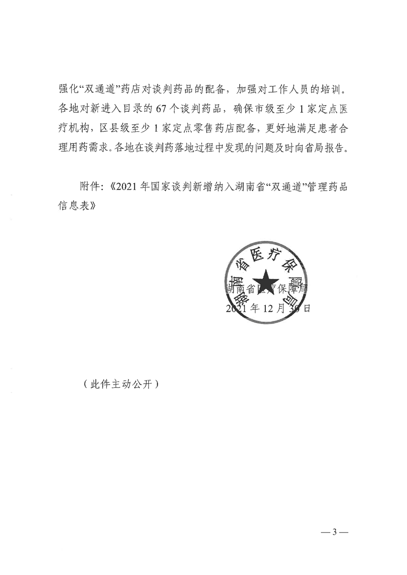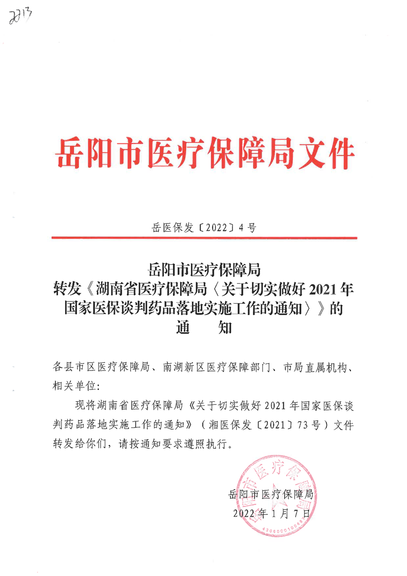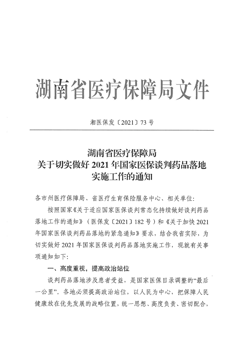 转发《湖南省医疗保障局〈关于切实做好2021年国家医保谈判药品落地实施工作的通知〉》的通知