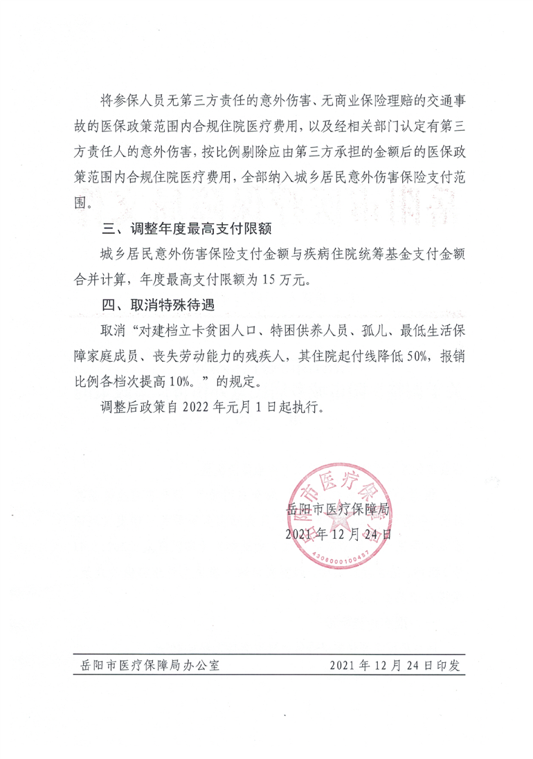 关于调整岳阳市城乡居民意外伤害保险政策的通知