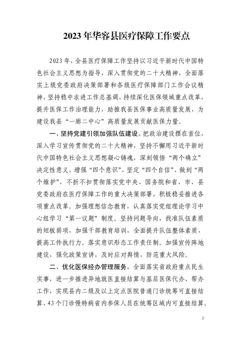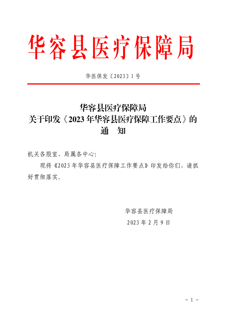 关于印发《2023年华容县医疗保障工作要点》的通知