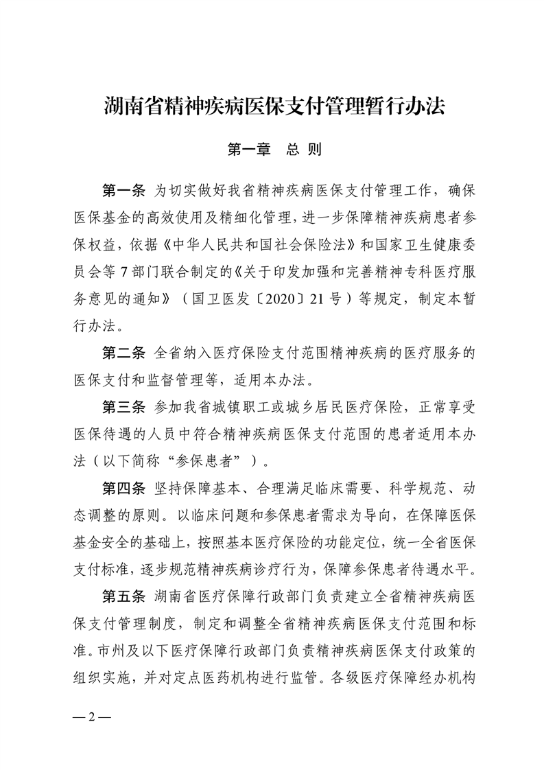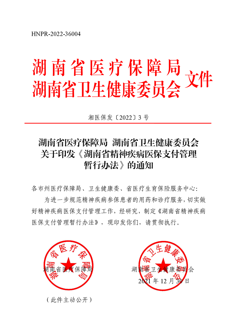 关于印发《湖南省精神疾病医保支付管理暂行办法》的通知