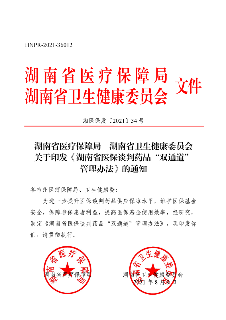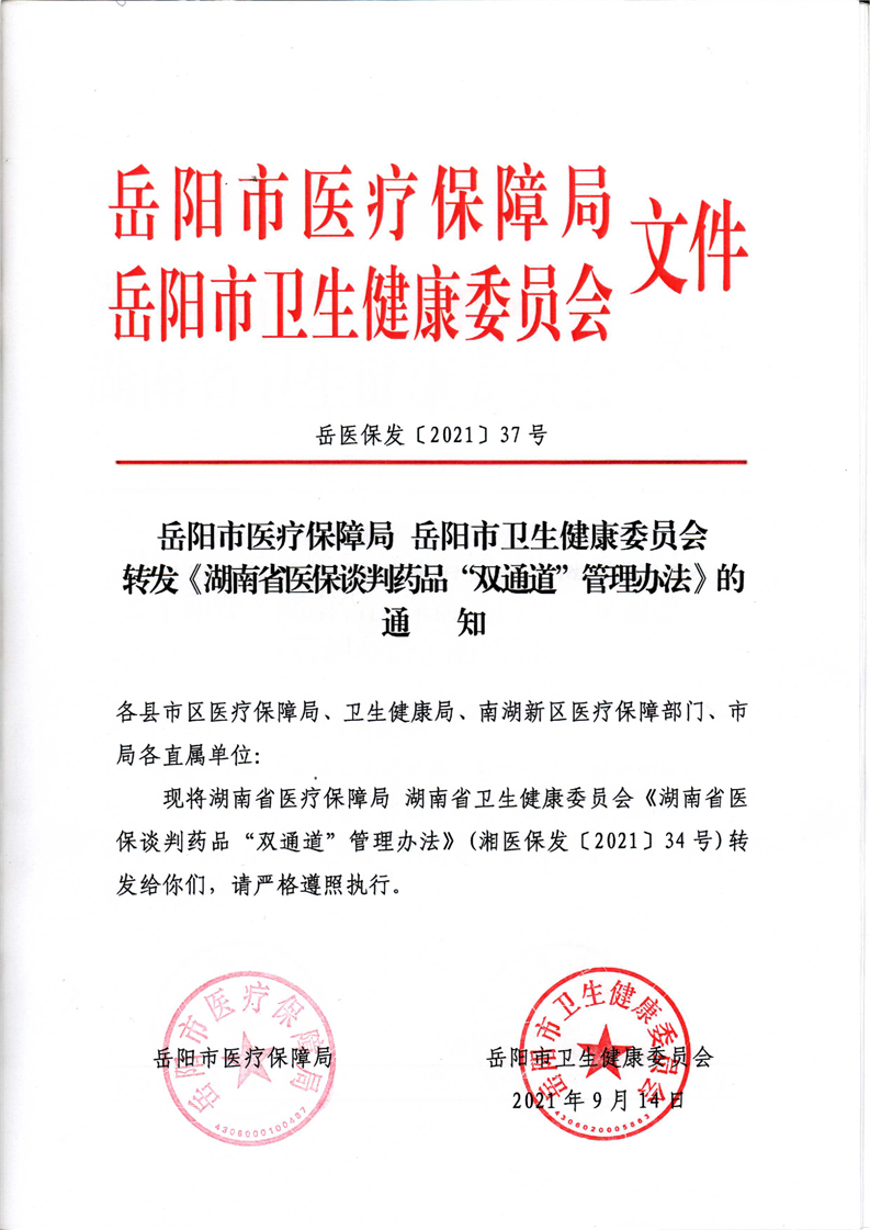 转发《湖南省医保谈判药品“双通道”管理办法》的通知