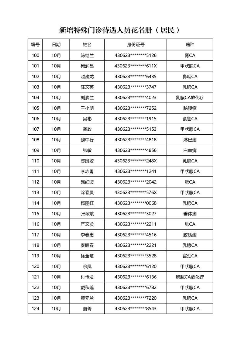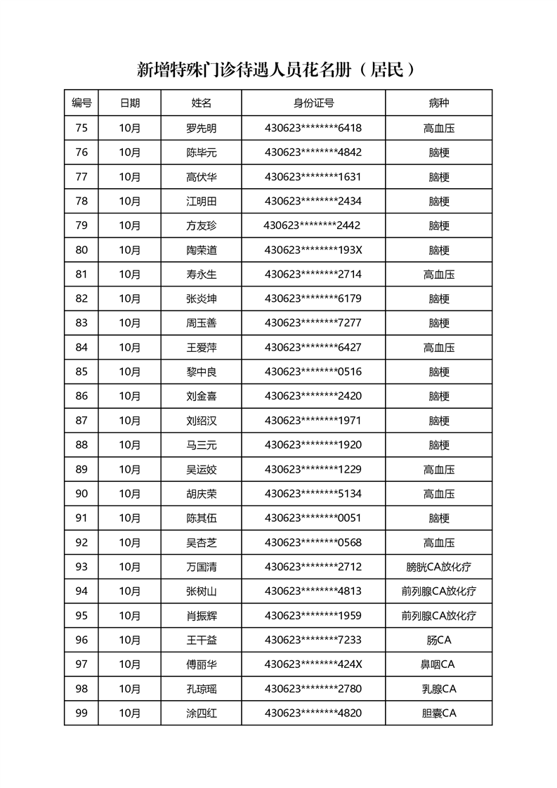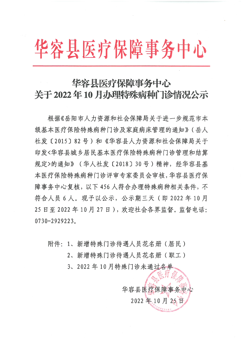 关于2022年10月办理特殊病种门诊情况公示