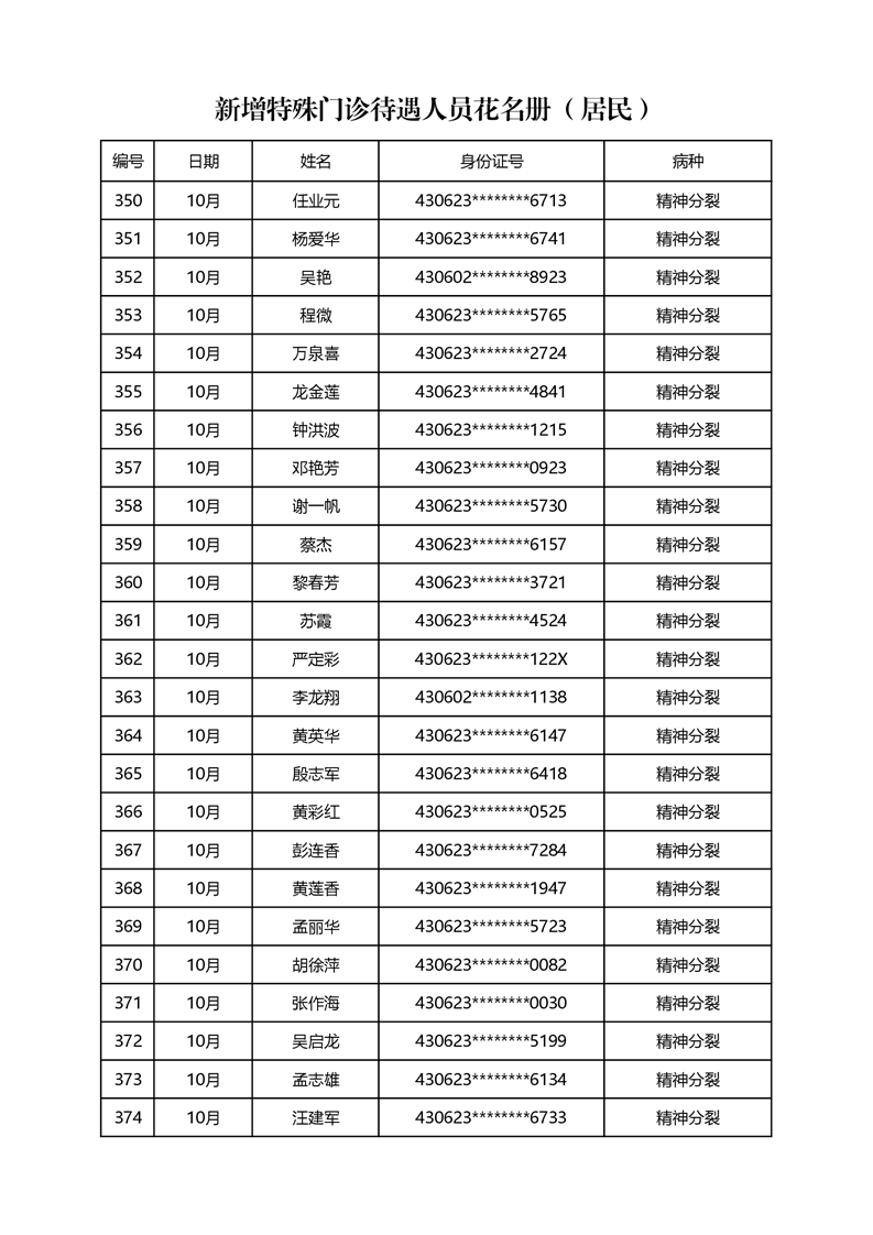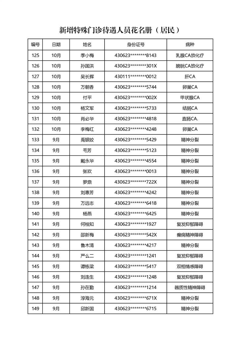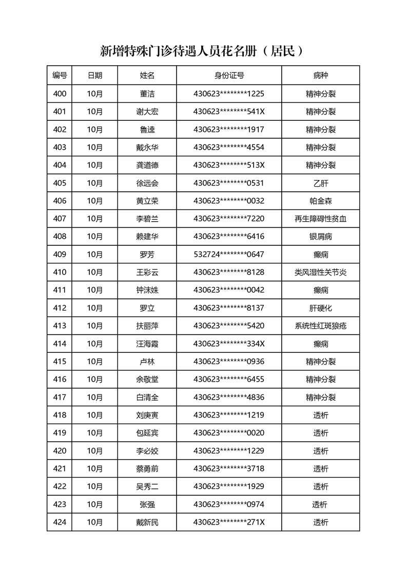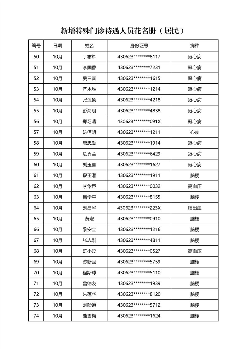 关于2022年10月办理特殊病种门诊情况公示