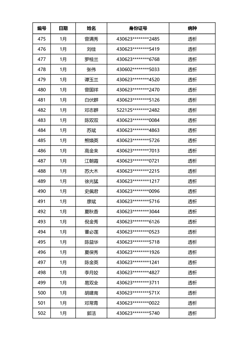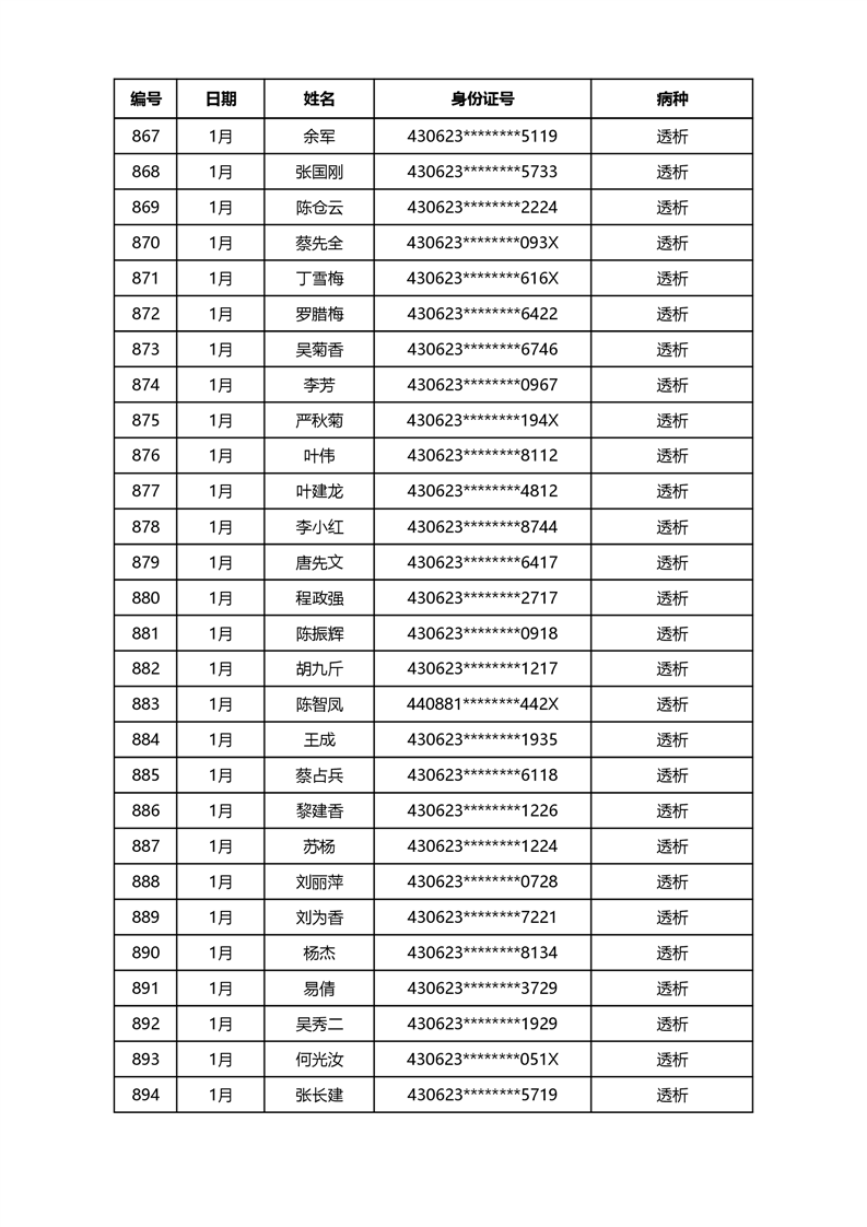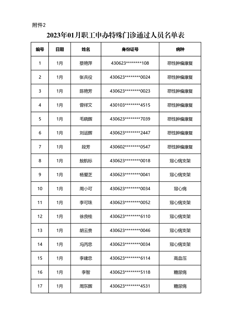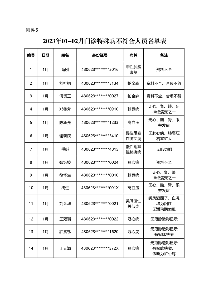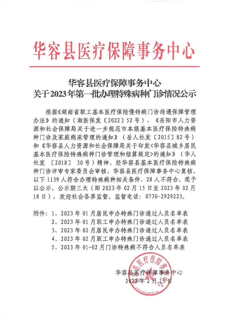 华容县医疗保障事务中心2023年第一批办理特殊病种门诊人员名单公示