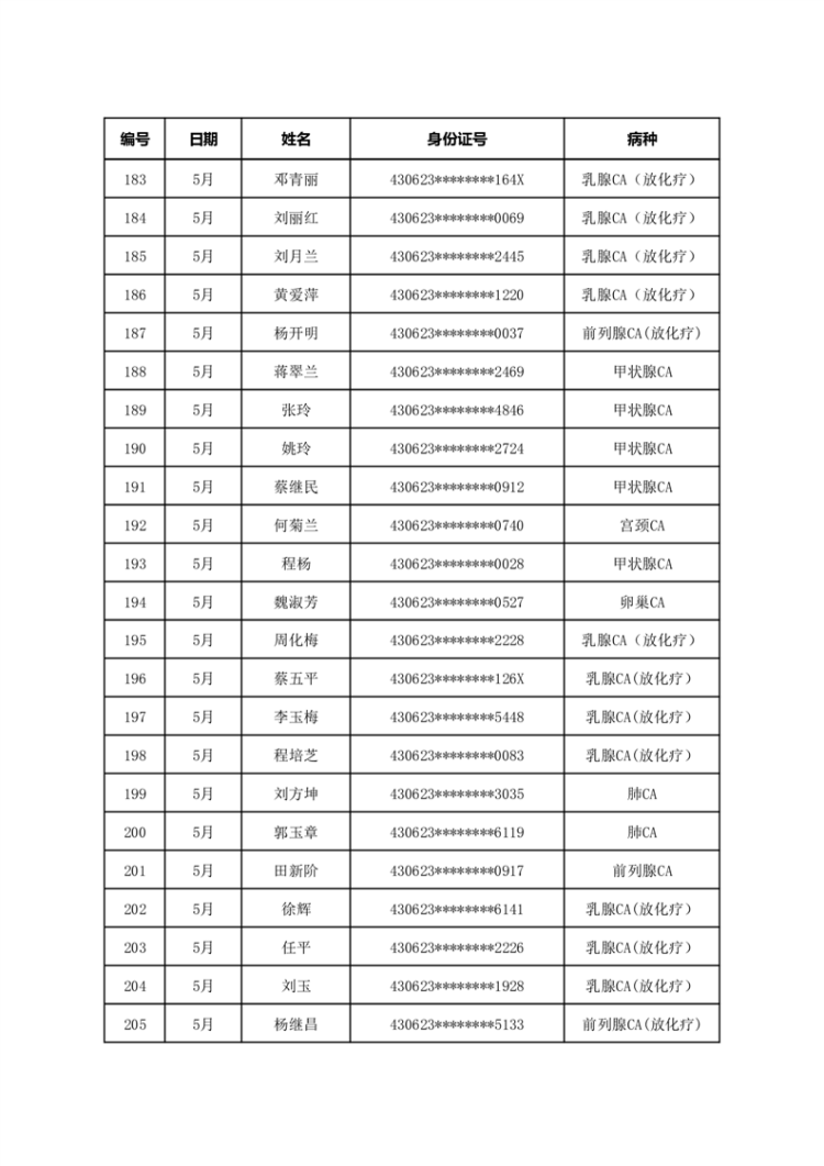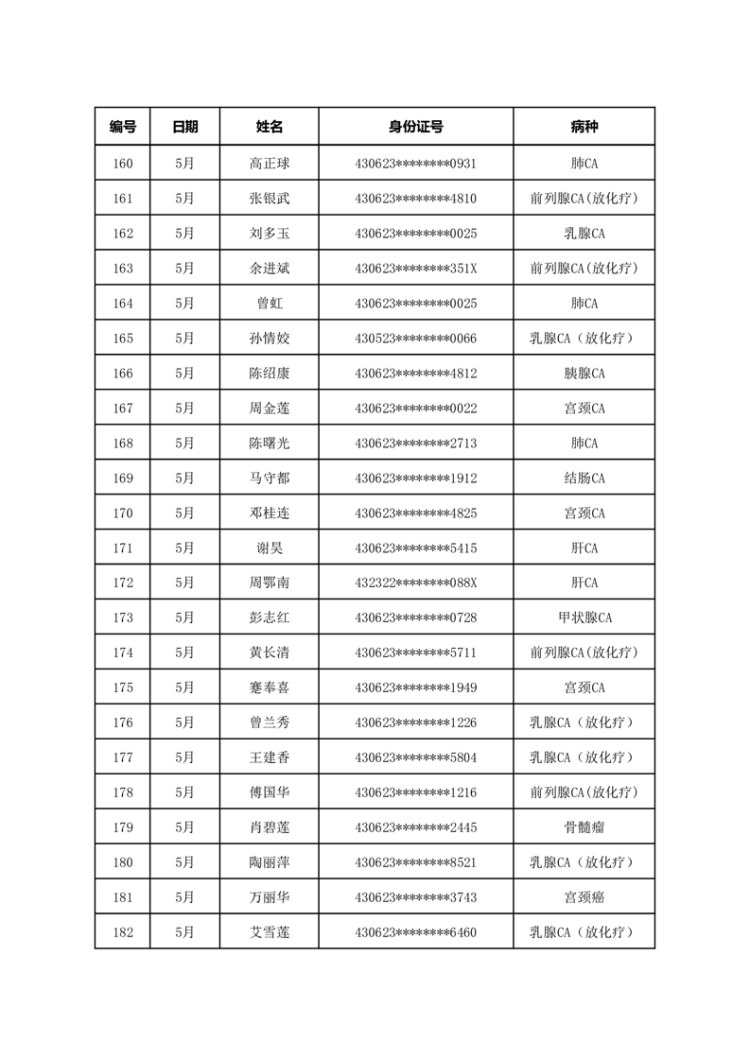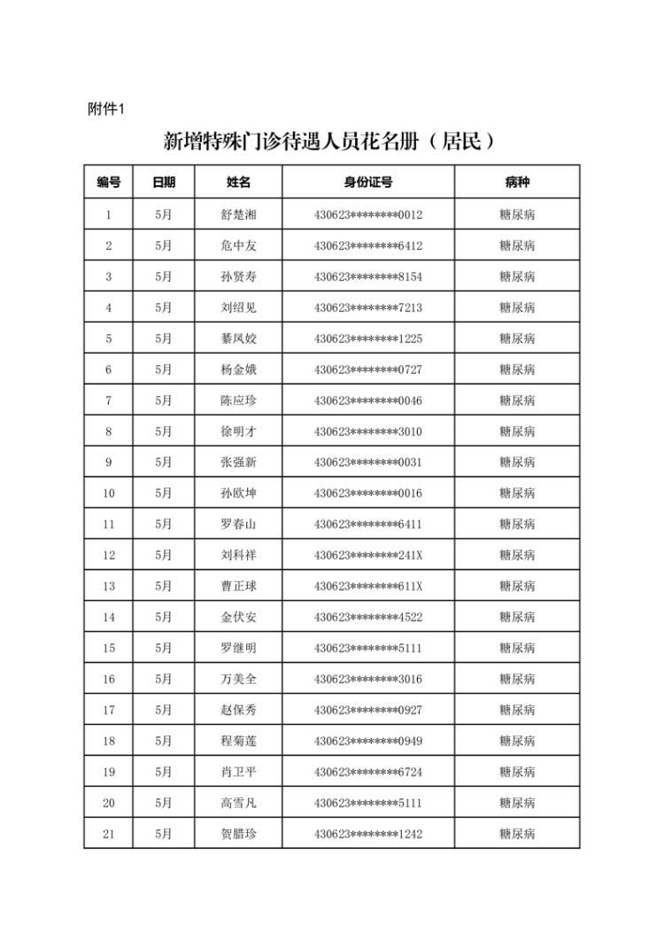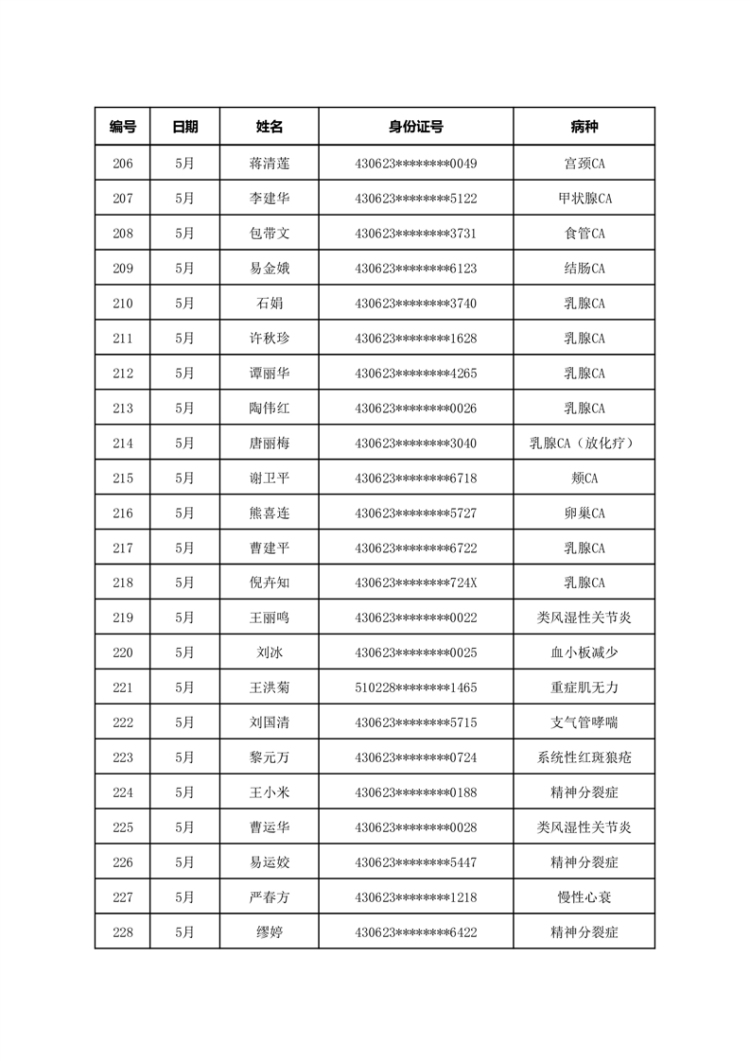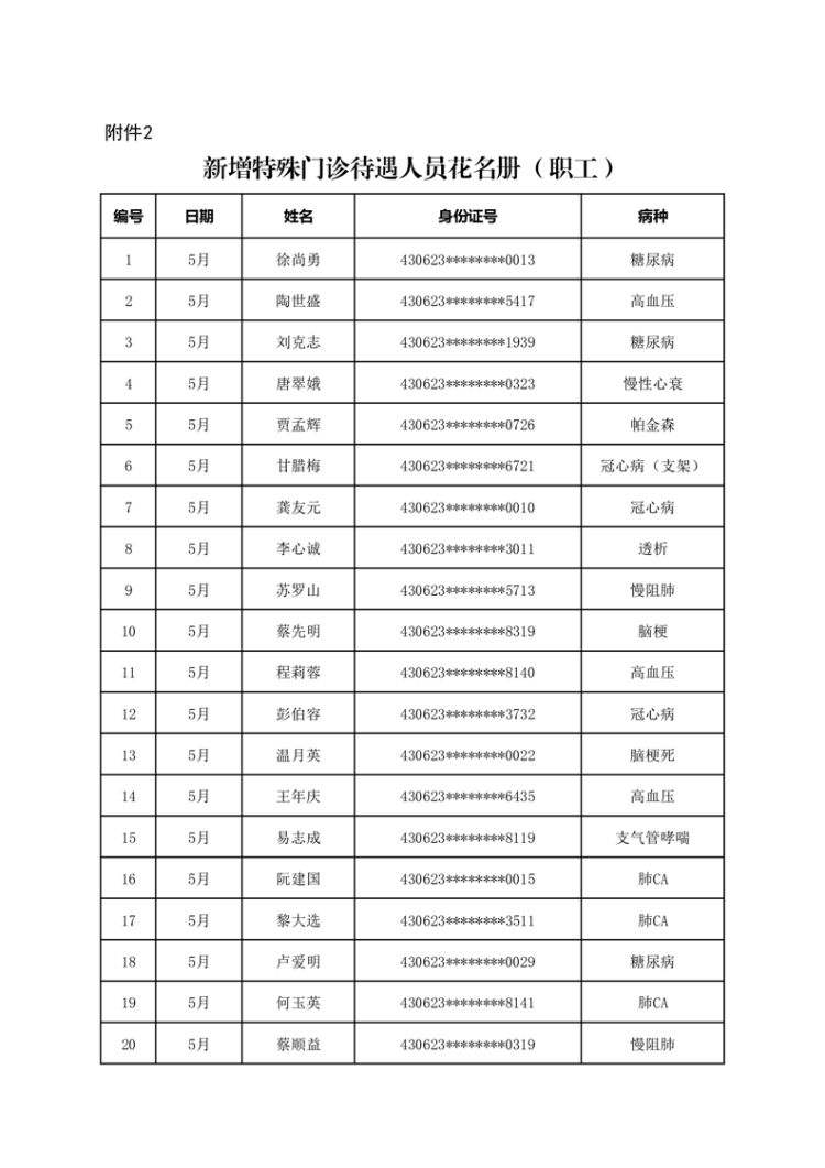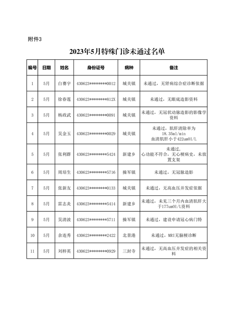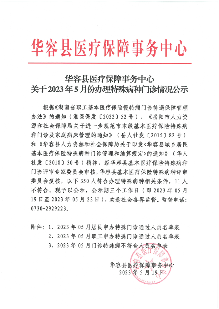 华容县医疗保障事务中心2023年5月份办理特殊病种门诊人员名单公示