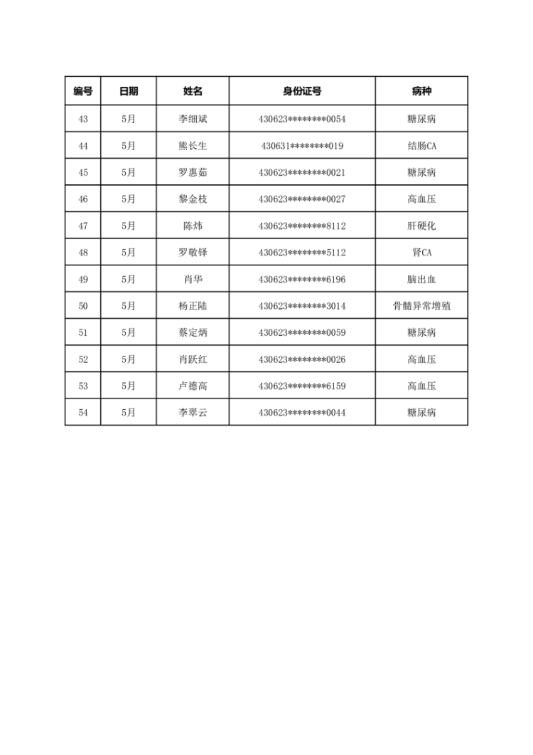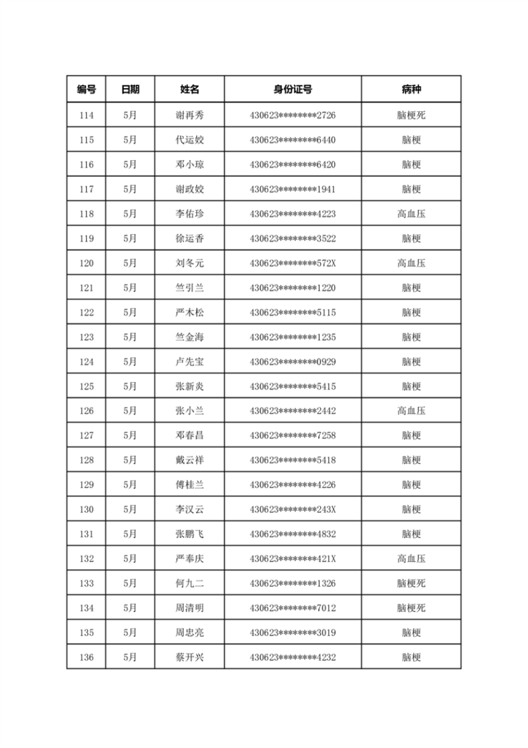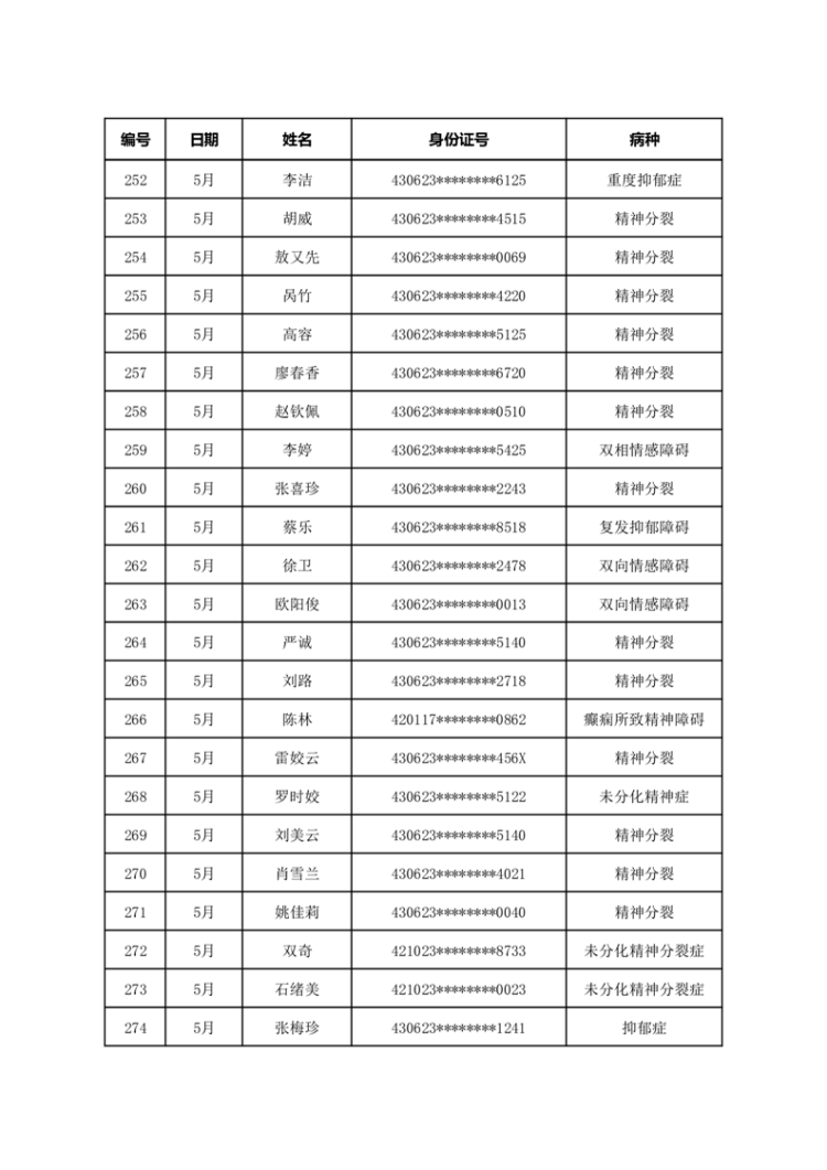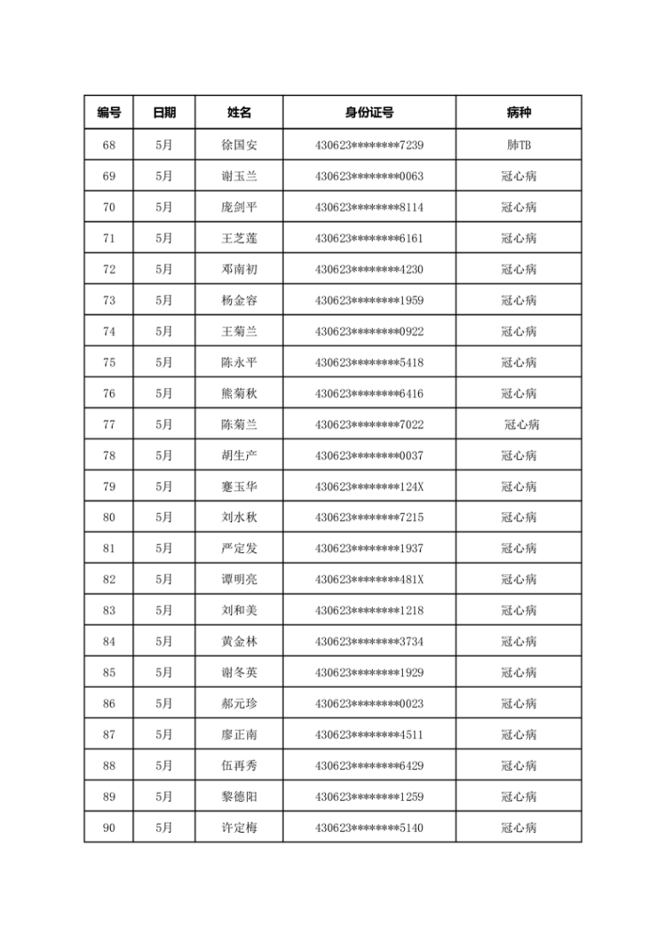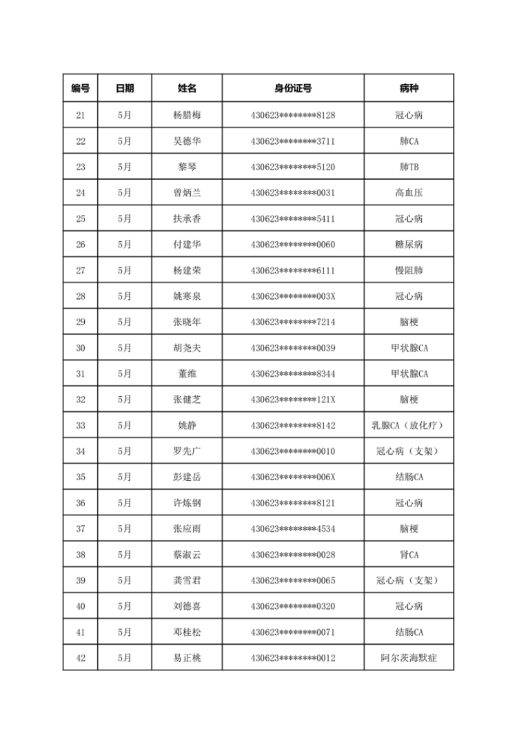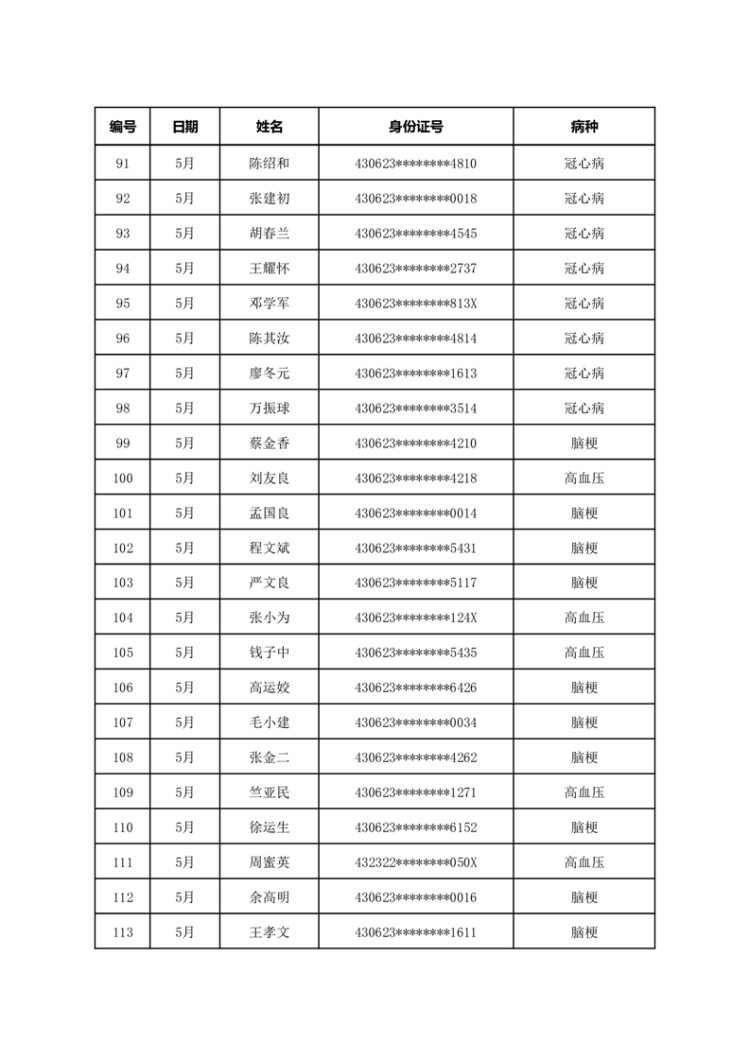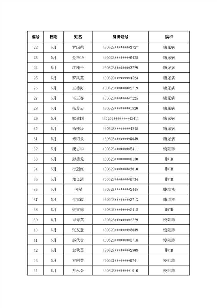 华容县医疗保障事务中心2023年5月份办理特殊病种门诊人员名单公示