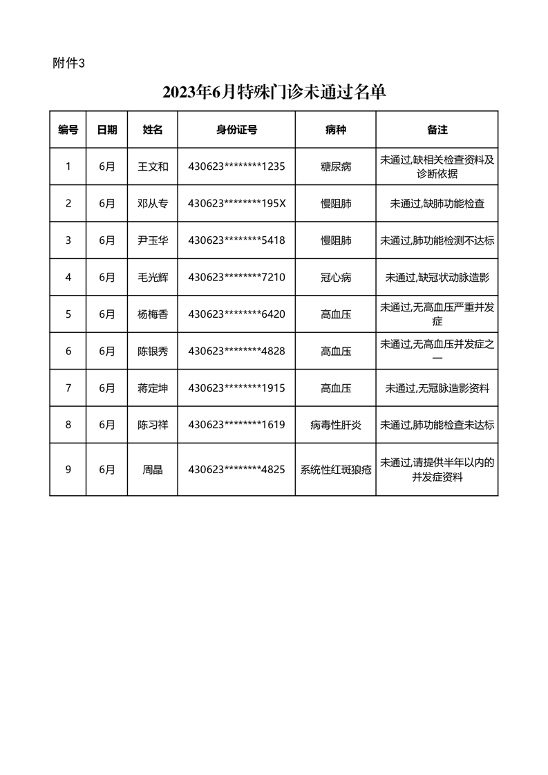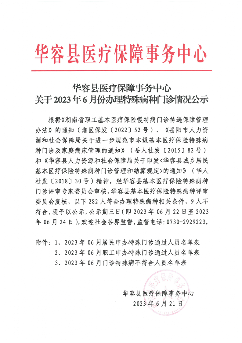 华容县医疗保障事务中心关于2023年6月份办理特殊病种门诊情况公示