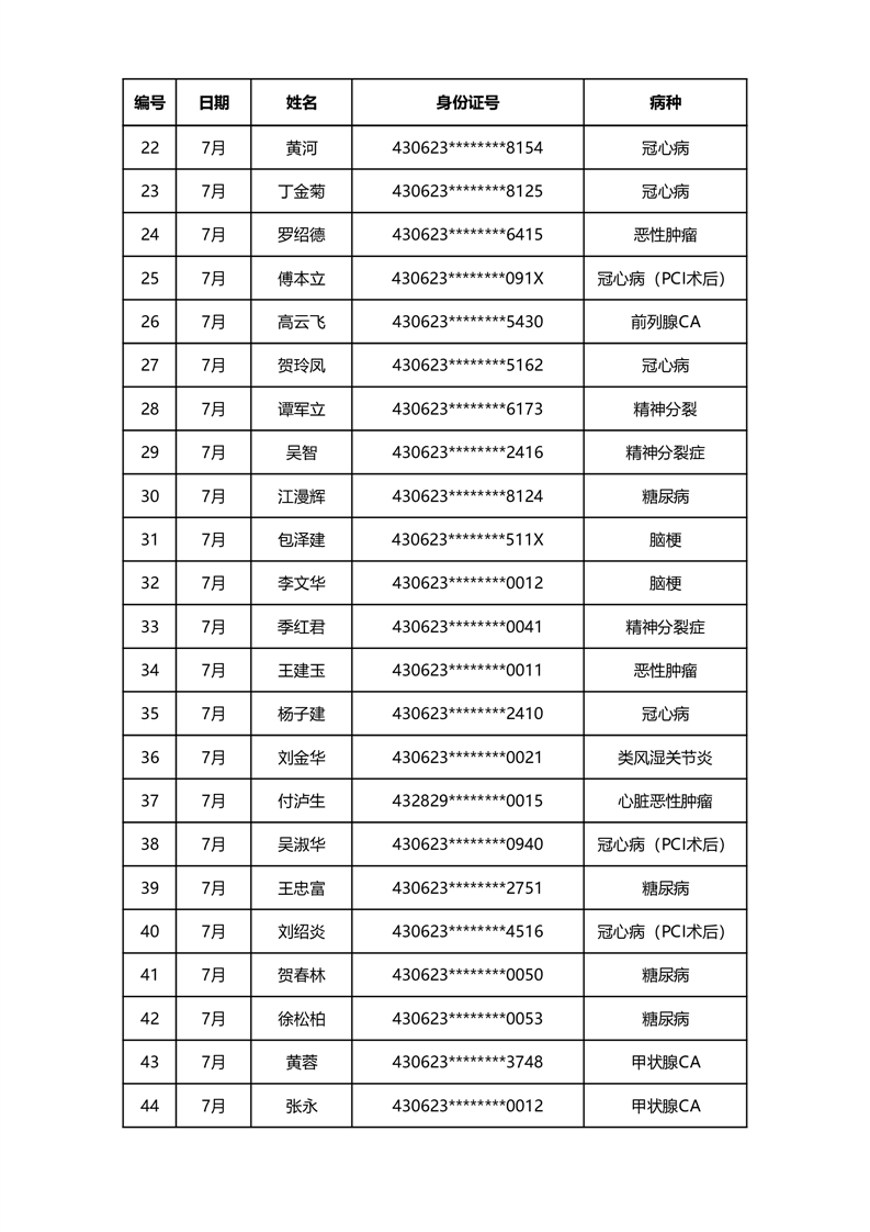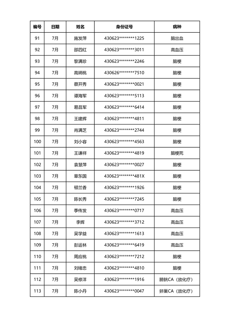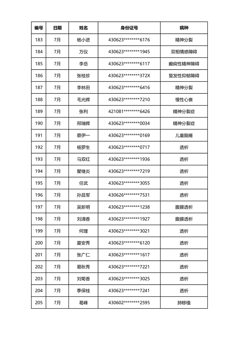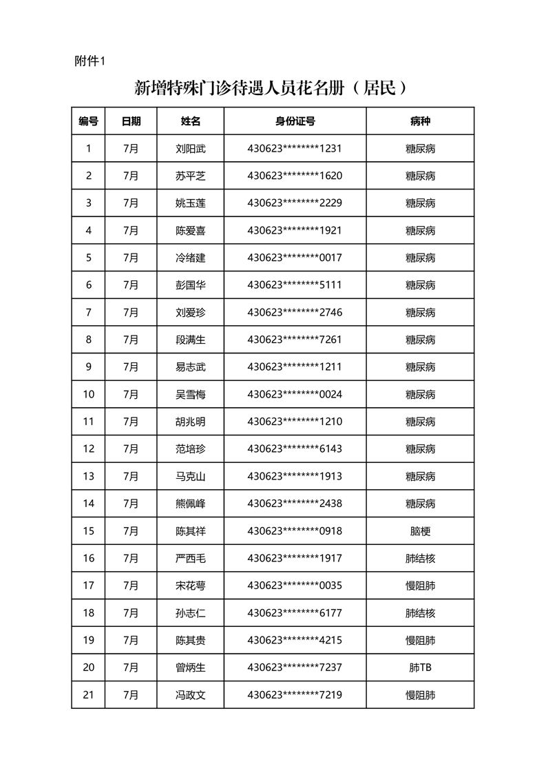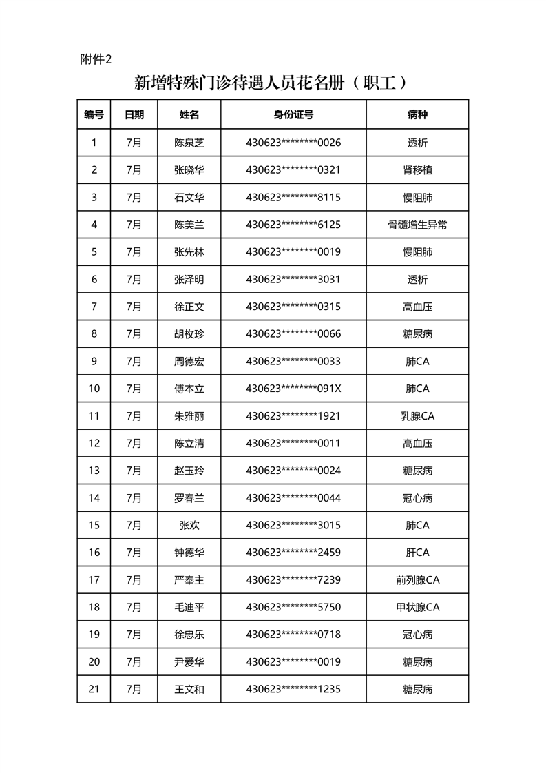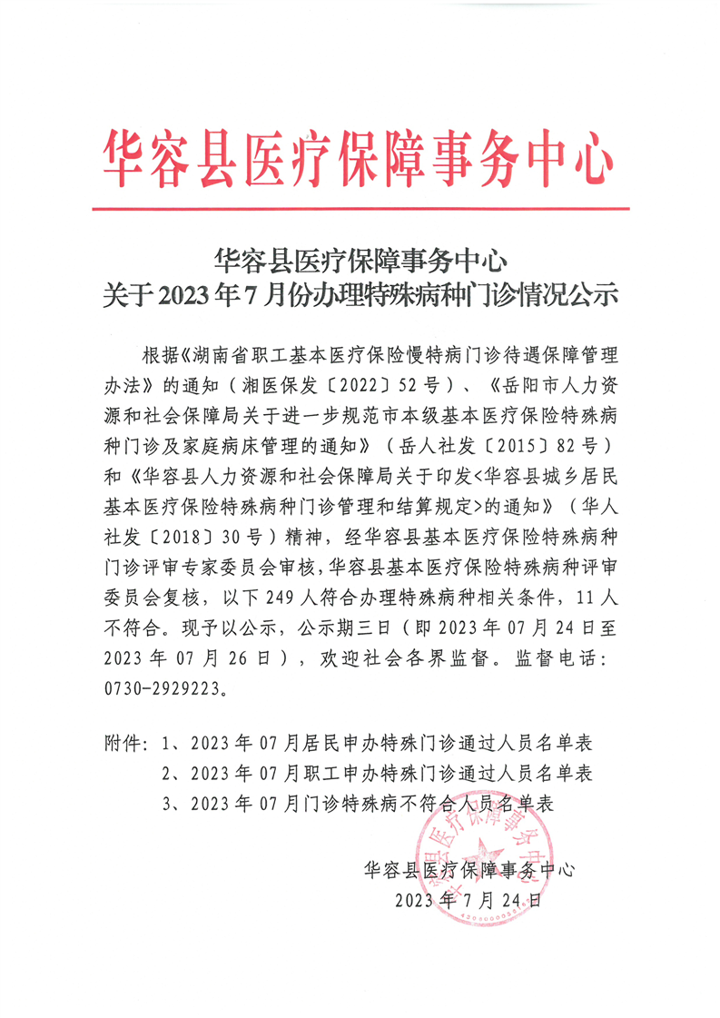 华容县医疗保障事务中心2023年7月份办理特殊病种门诊人员名单公示
