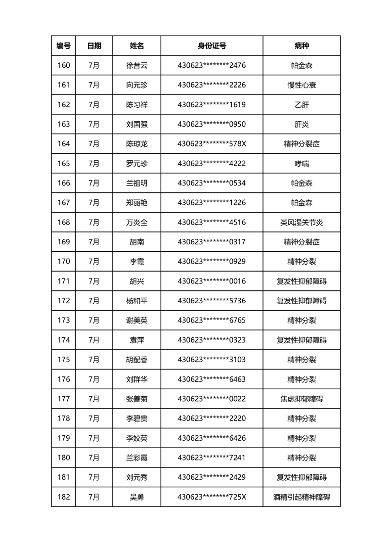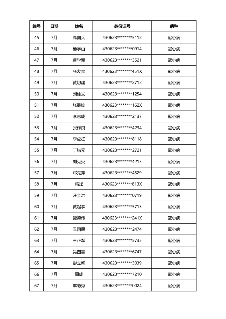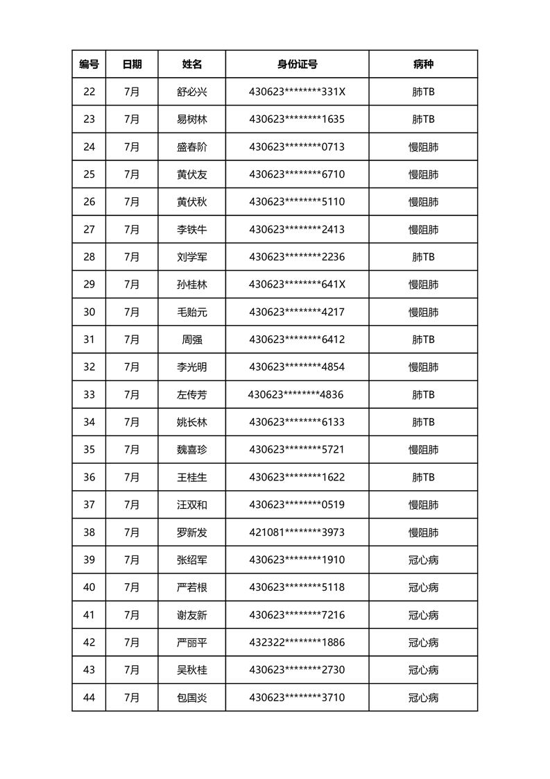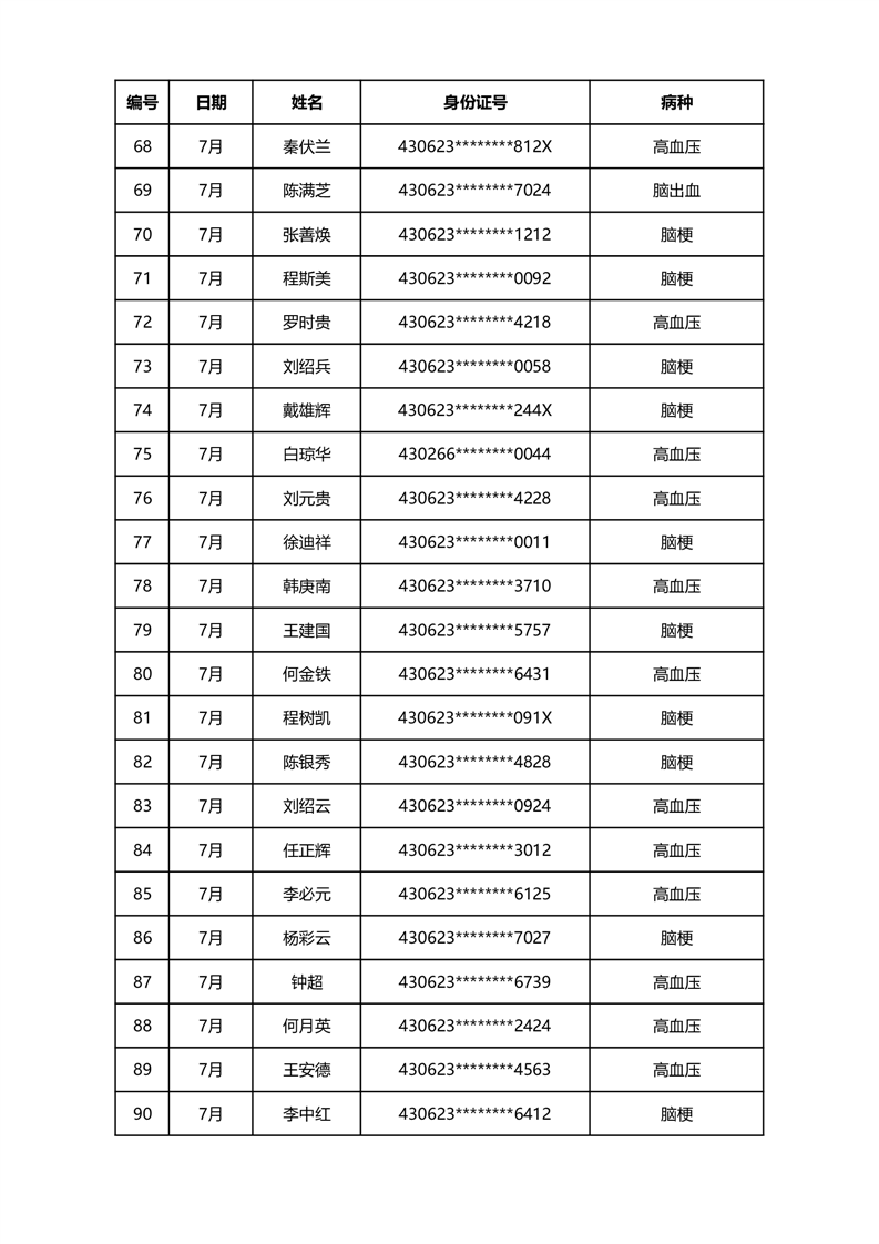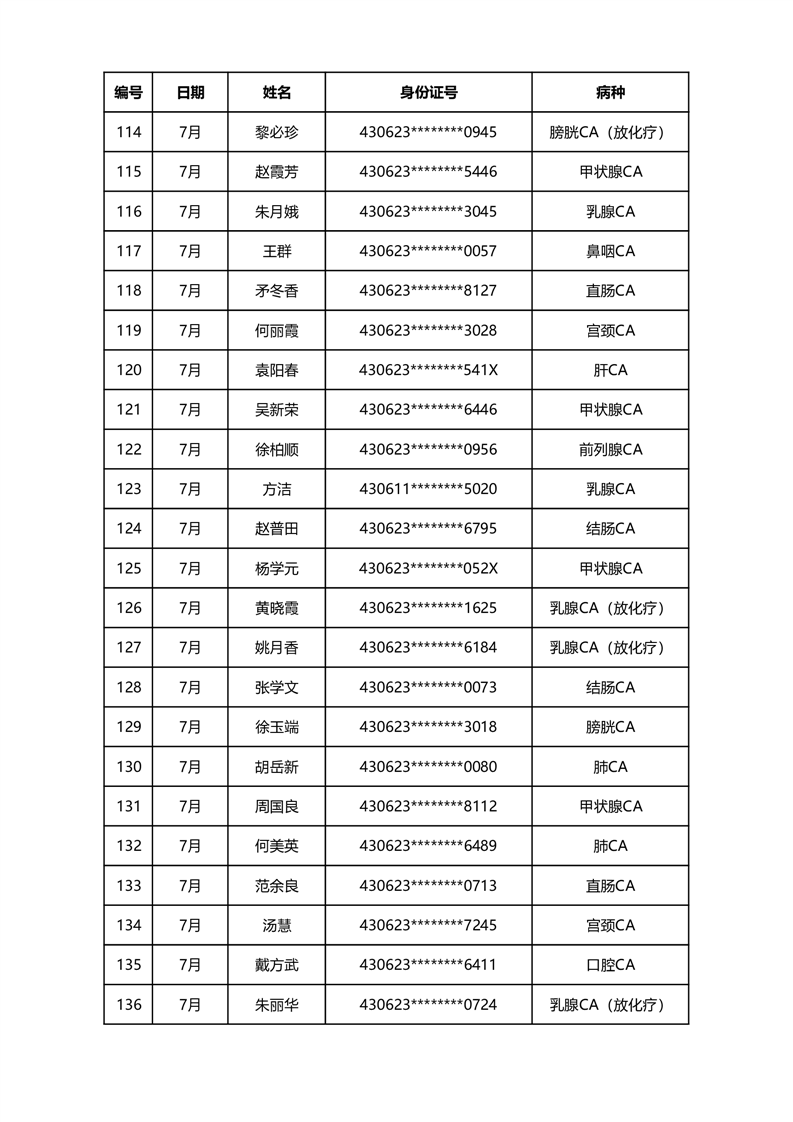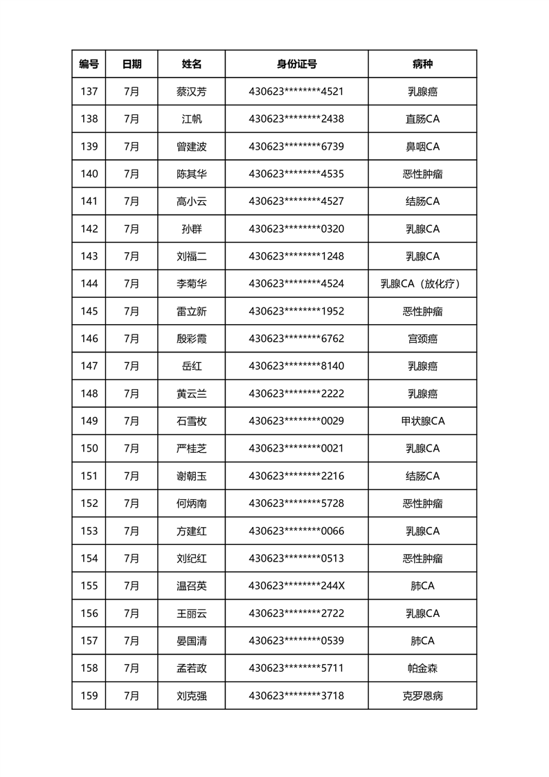 华容县医疗保障事务中心2023年7月份办理特殊病种门诊人员名单公示