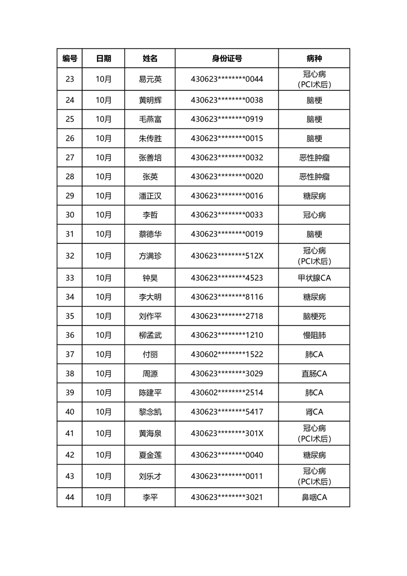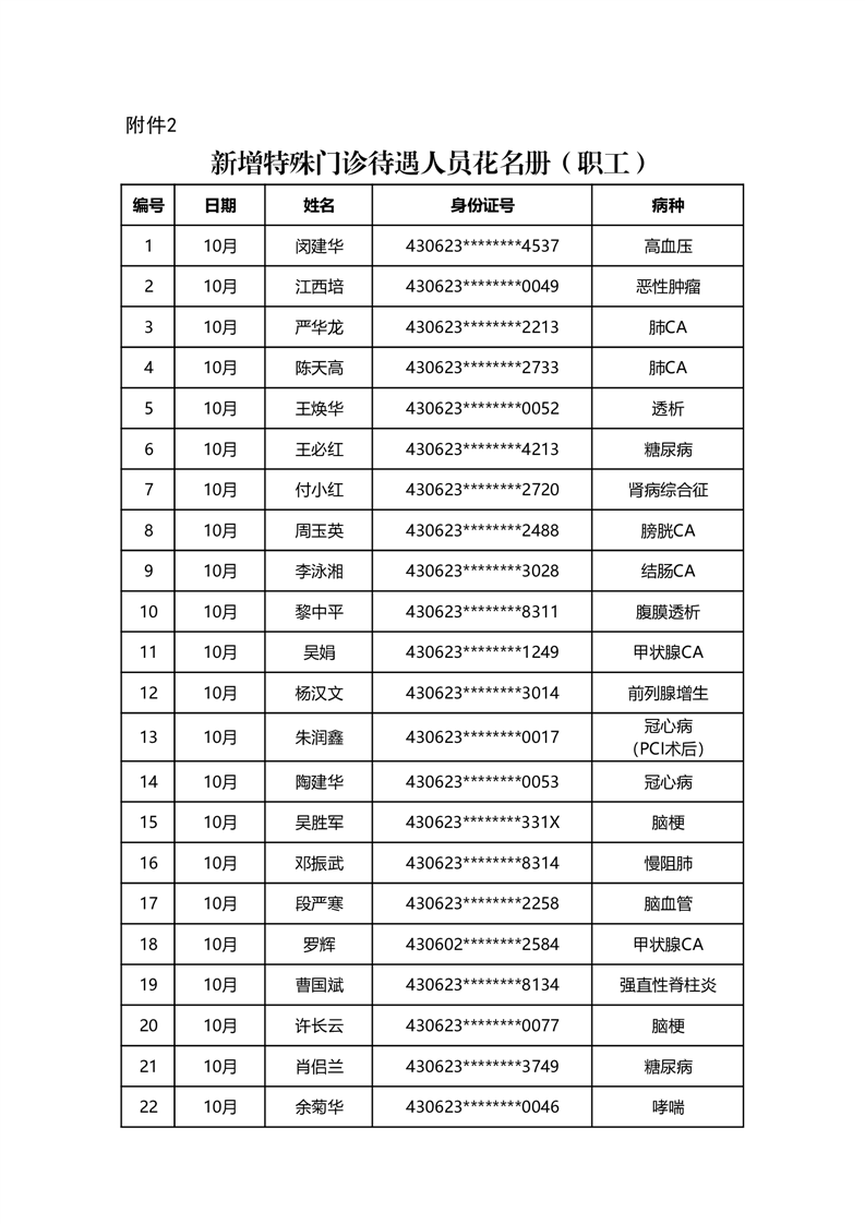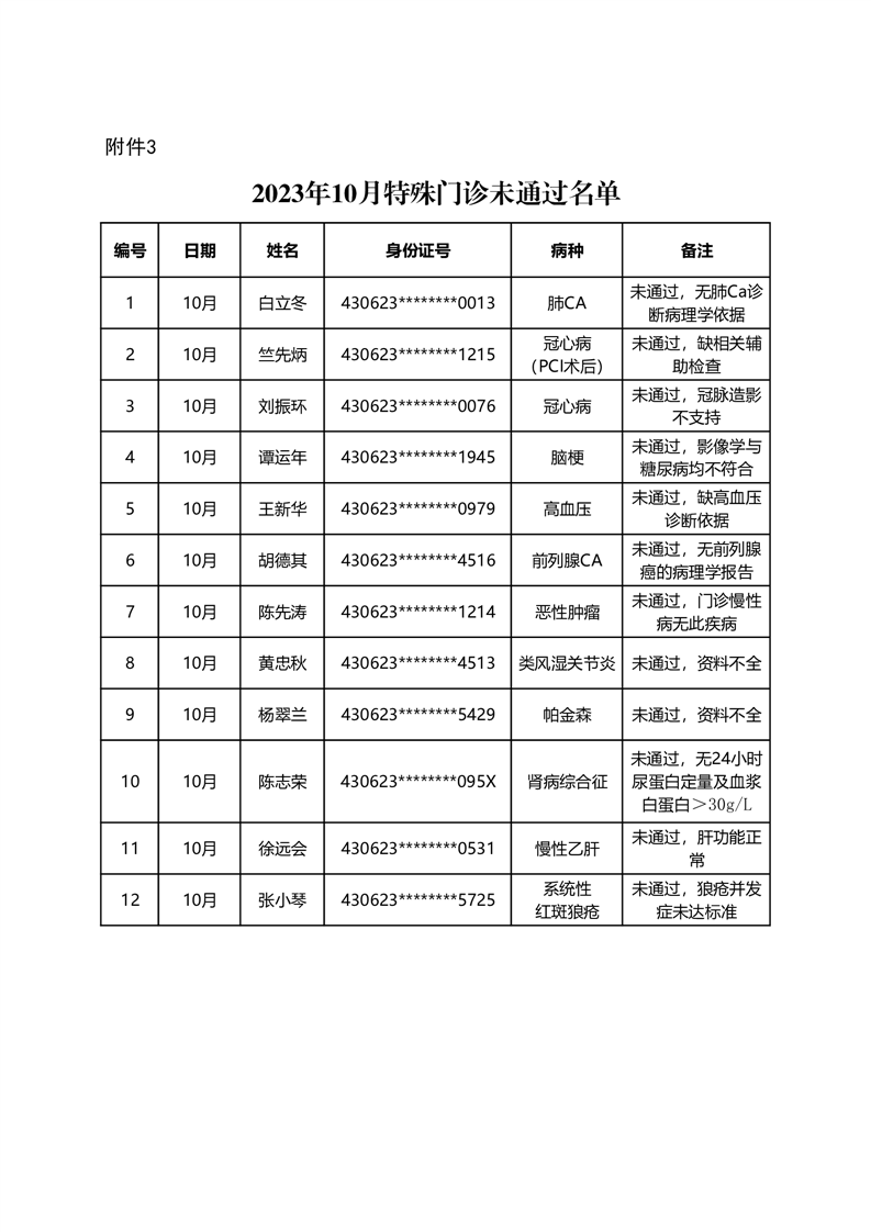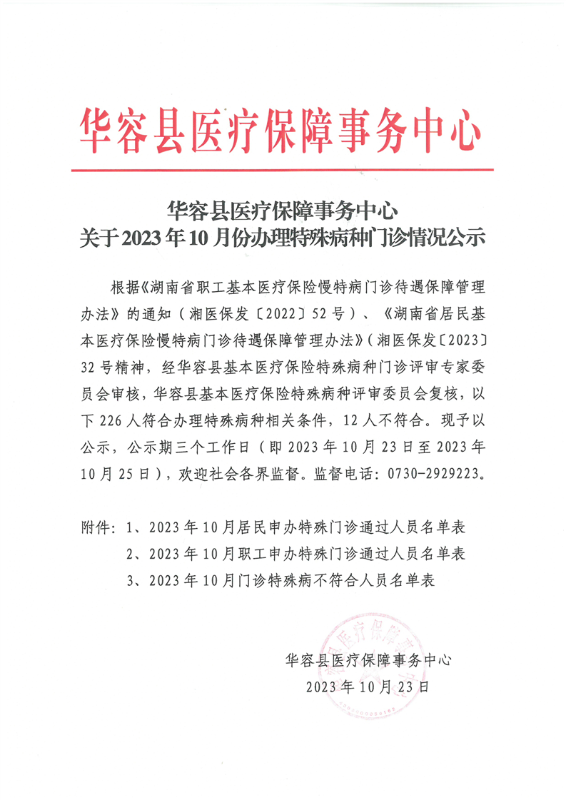 华容县医疗保障事务中心2023年10月份办理特殊病种门诊人员名单公示